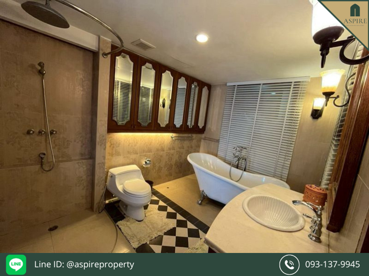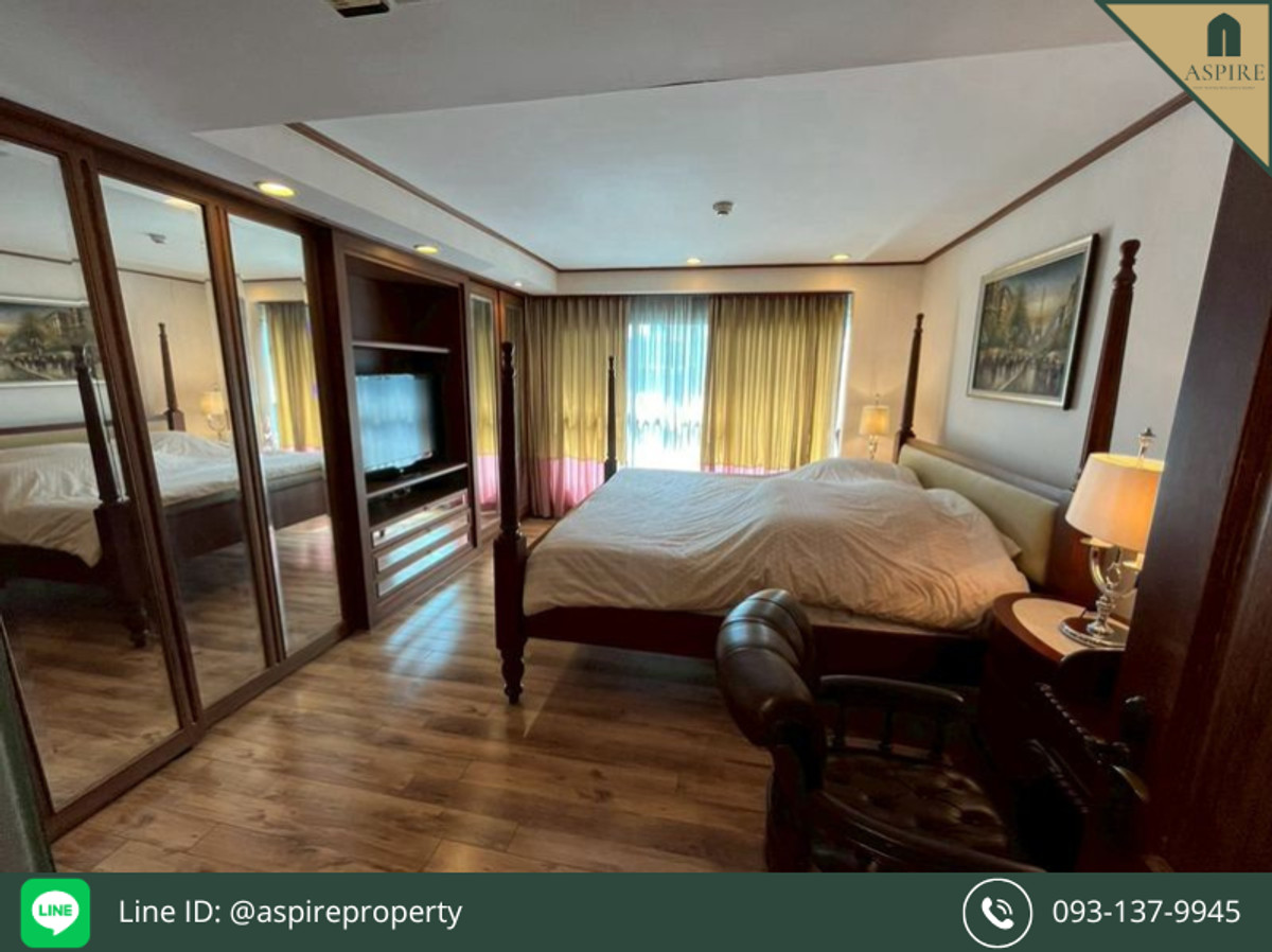 [For Sale] Penthouse Navin Court Condo, Lumphini Property Code: TPC26012021 Lowrise • Size 419.1 sq.m. • 7 BR, 8 BA with balcony • 8th Floor, west • Parking for 5 cars • Fully Furnished • Facilities include: Infinity Swimming Pool, Fitness Center, 24/7 Security • 780 meters to BTS Phloen Chit Selling Price 46.101 MB (Transfer Fees 50/50) For viewing, contact Tel. : Contact number WhatsApp : Contact number Line ID : @aspireproperty Email : Contact email Aspirethailand.com