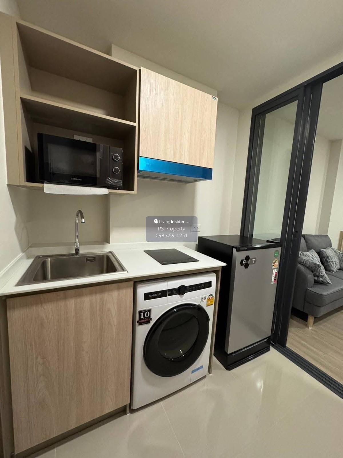 Price: 9,500 baht / month Size: 26 sqm. Floor: 5 Building: A Room type: ONE BEDROOM Facilities: Convenience store, CCTV, key card Access, Swimming pool, Fitness Center, laundry room, 24hrs security guard, Furniture: TV, Sofa, Storage, Shelves, Air conditioners, Cabinets, Built-in Wardrobes, Microwave, Refrigerator, Washing Machine. Fully Built-in, fully furnished! Near BTS, near the expressway, ready to move in! Interested please contact: 📞Call center: Contact number 📱Hotline: Contact number 📲Whatsapp: Contact number 🖱️Line: @psproperty https://lin.ee/d8bpOBs Website: https://www.ps-property.co.th/