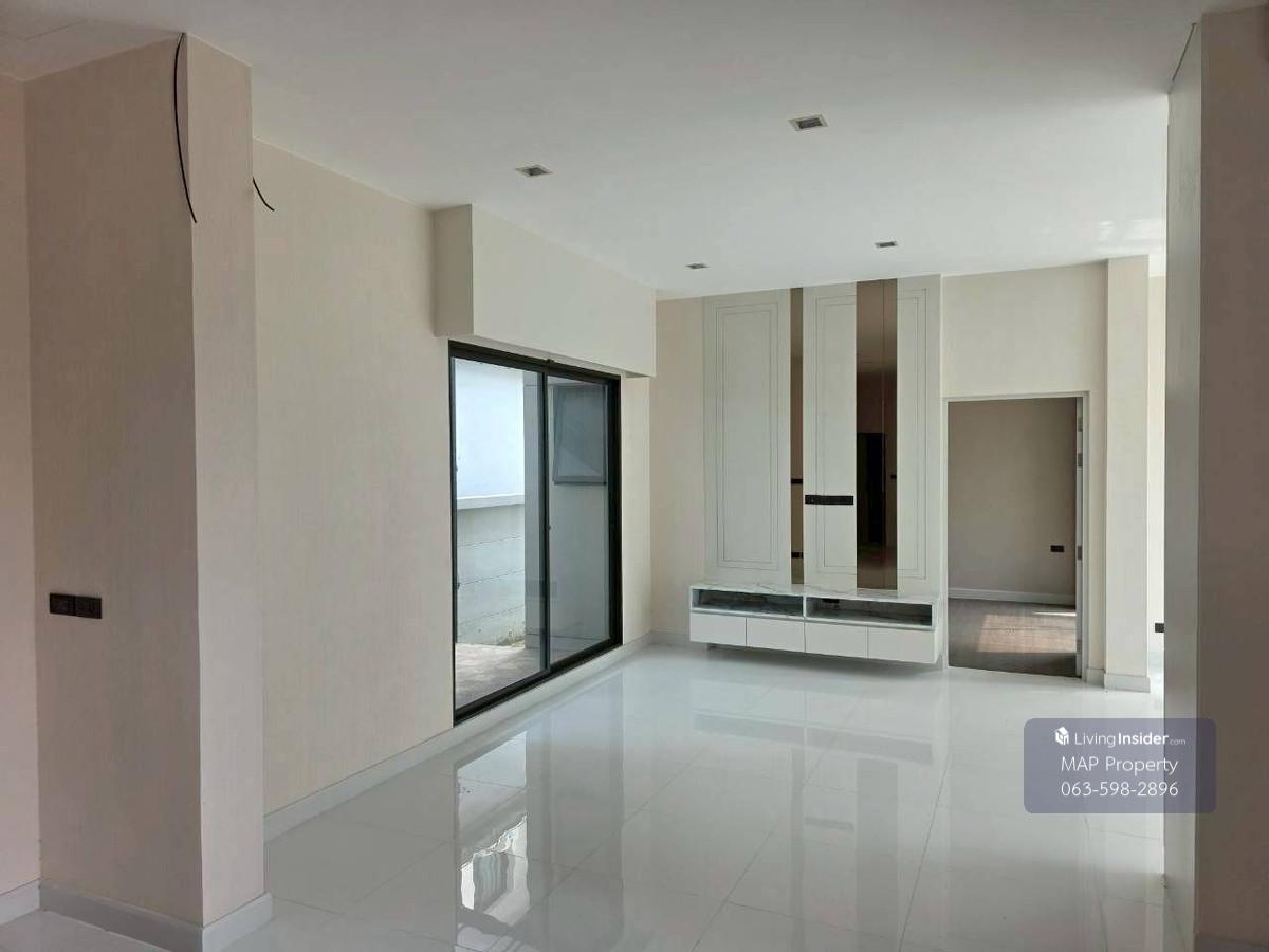Location: Bangkok Boulevard Rama 5, a luxury detached house in a prime location. Mahasawat Subdistrict, Bang Kruai District, Nonthaburi 11130 Property Code: M41N002 Price: 13,500,000 Baht Type: Detached House Height: 2 stories Land Area: 101.80 square wa Usable Area: 319 square meters Bedrooms: 5 Bathrooms: 5 Direction: Southwest Kitchen extension on the existing structure, 9 sq.m. •Concrete kitchen counter with granite top •Aluminum cabinets and cabinet doors (white powder coated, rust-free) •OSAMA high-suction range hood •6 electrical outlets with a separate 32A breaker Laundry area extension, 14 sq.m. •Micropile foundation (23 m deep) with FlatSlab floor, allowing for a single-story structure. Extension completed 1.5 years ago with no subsidence. Built-in furniture on the ground floor, partially using MHR material with laminate finish: •Indoor kitchen counter •Display cabinet •TV stand •Storage cabinet •Indoor kitchen counter •Air conditioners: -2 units on the ground floor, condenser units on the roof of the kitchen extension (no drilling, no roof leaks) -1 unit upstairs •1 water heater -Last house in a lane with 6 houses in total. Adjacent to neighbors on the left and back. -The back fence has been completed with lattice work. Transportation: -From MRT Purple Line, Bang Rak Yai Station - 10 km. -From MRT Blue Line Extension (Bang Sue-Tha Phra), Bang Khun Non Station - 12 km. -From Si Ratch-Outer Ring Road Expressway - 4.3 km. -From Kanchanaphisek Road - 2 km. -From Ratchaphruek Road - 3.3 km. -From Bang Kruai-Sai Noi Road - 4.9 km. -From Borommaratchachonnani Road - 5.4 km. Project Amenities: • Indoor swimming pool • Fitness center • Public park with green space • 24-hour security guard Educational Institutions • Wararat Suksa School, Nonthaburi - 1.6 km • Thepsirin Nonthaburi School - 1.6 km • Rajapruk University - 6.3 km Shopping Malls • 7-Eleven - 800 m • Rama 5 Market - 1.9 km • Lotus's Bang Yai - 4.3 km • Central Westgate - 10.6 km • Ikea Bang Yai - 10.6 km Medical Facilities • Hospital Medical facilities in Nonthaburi - 3.8 km •Thonburi 2 Hospital - 6.6 km •Eye, Ear, Nose, and Throat Hospital - 12.8 km •Yanhee Hospital - 14.7 km ---------------------------------- Contact for inquiries or to schedule a viewing: -Sunisa (Su) 087.038.6366 Line: suni178 ------------------------