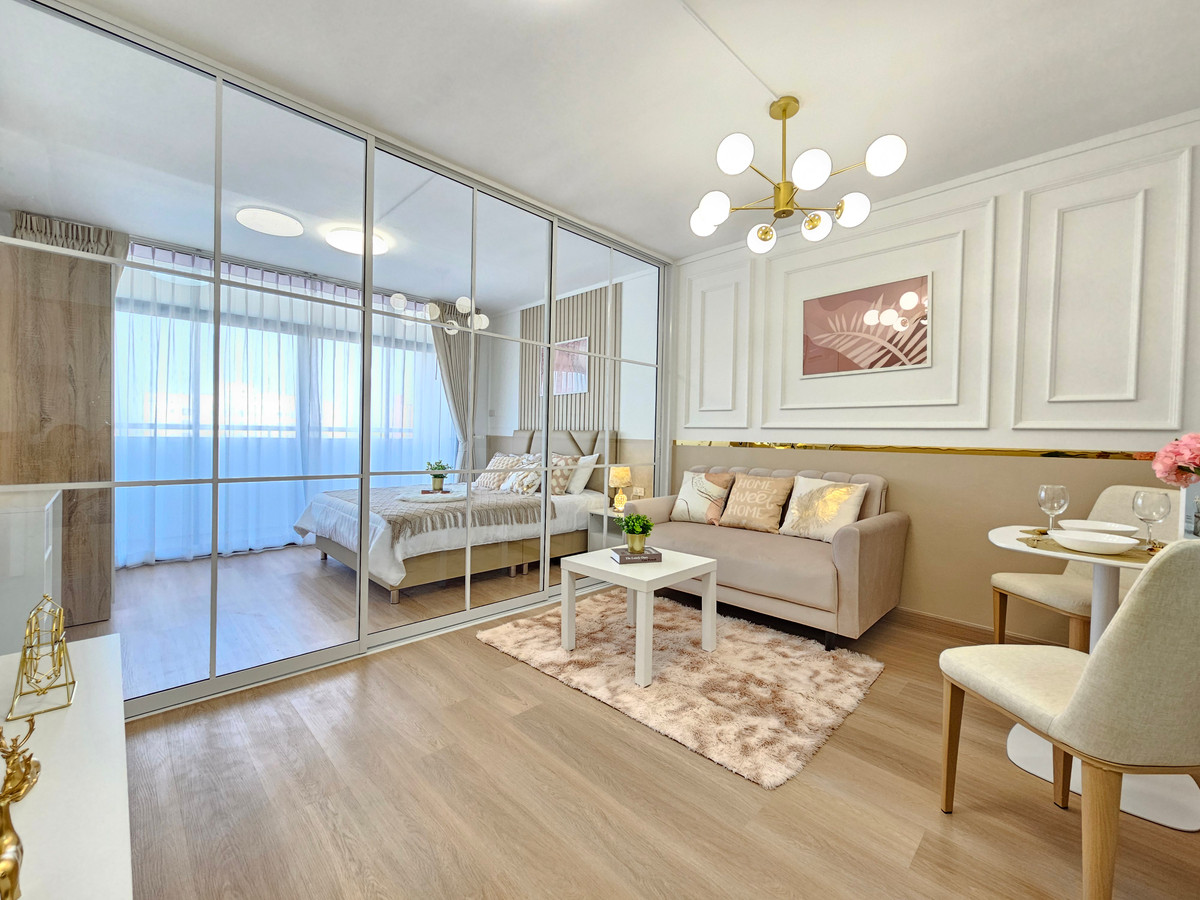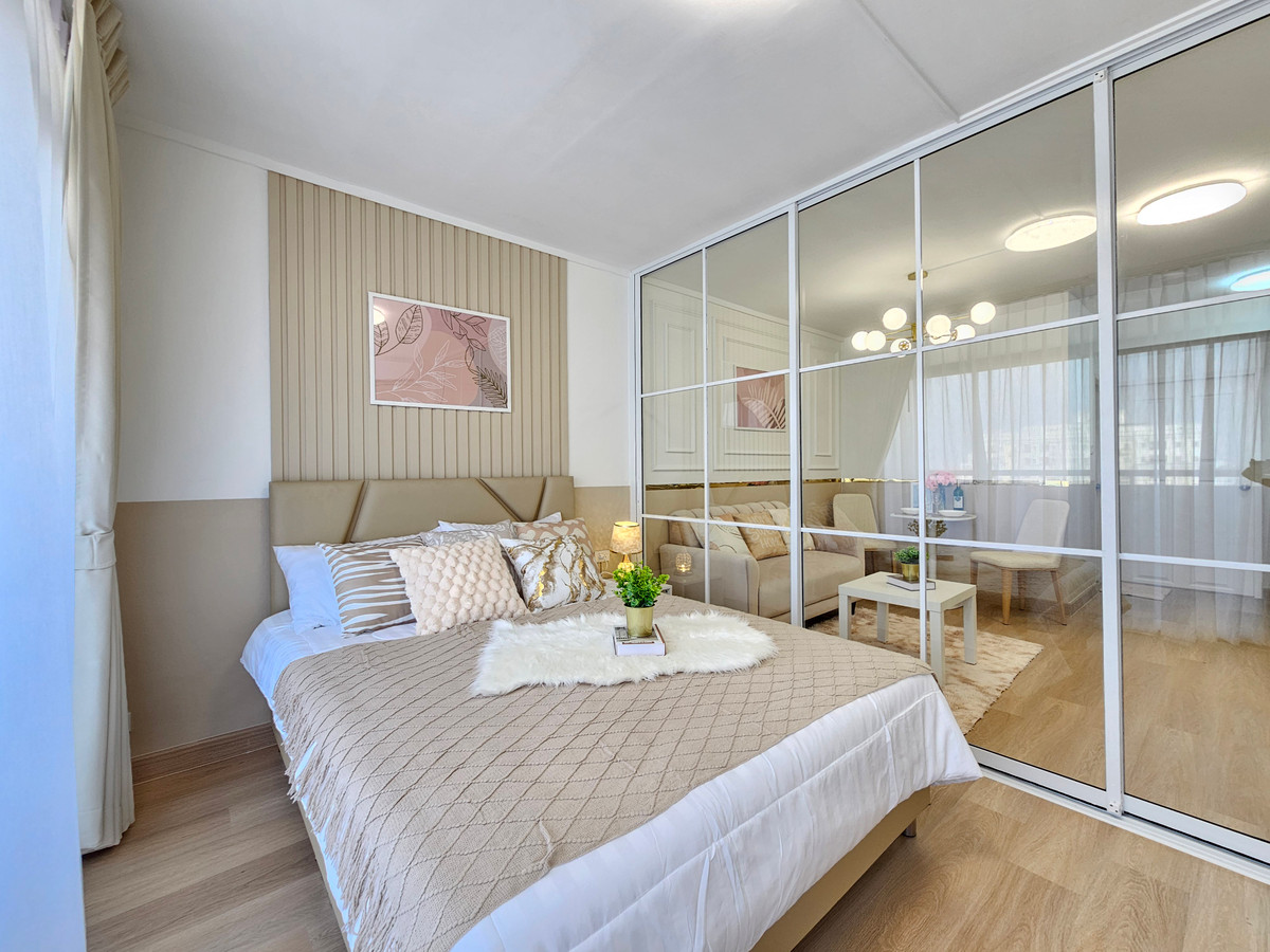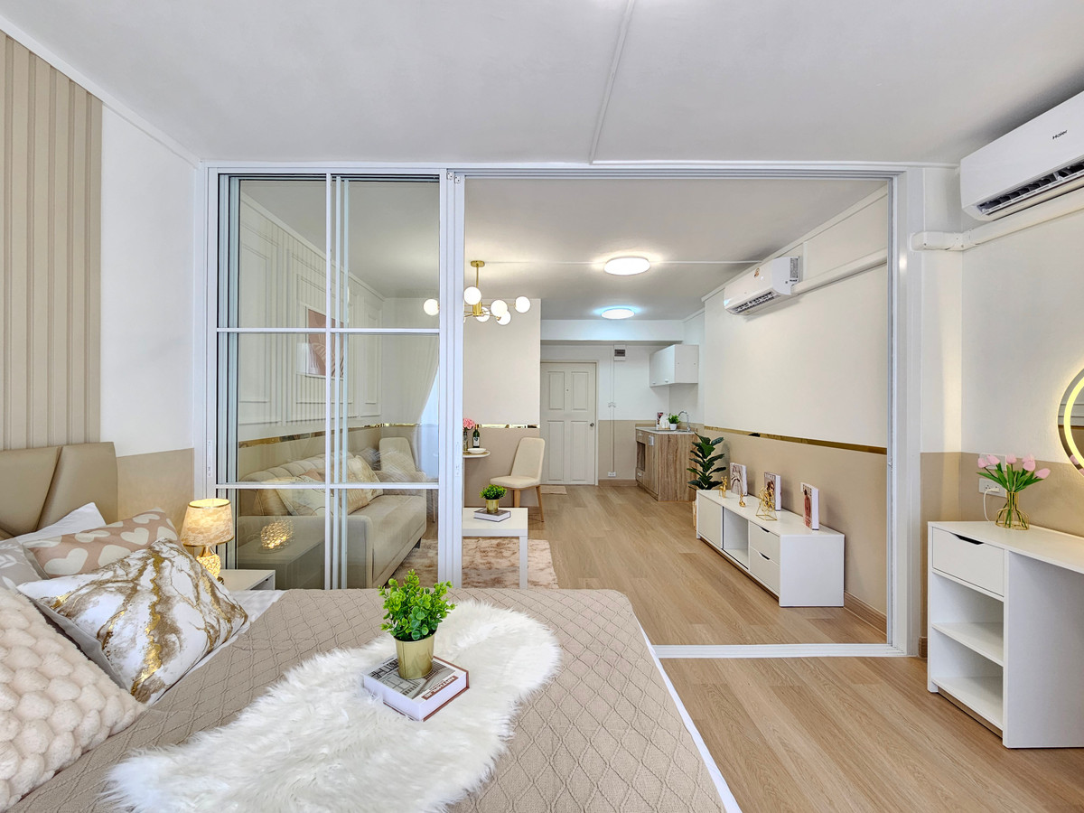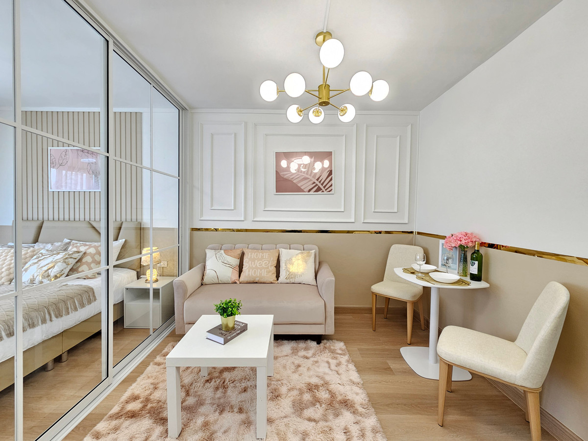 Sapkaew Tower Soi Pracha Uthit 6, Huai Khwang Subdistrict, Huai Khwang District, Bangkok :: Room details :: ✅ Size 34.76 sq m. ✅12th floor from a total of 25 floors ✅Bedroom partitions separated into