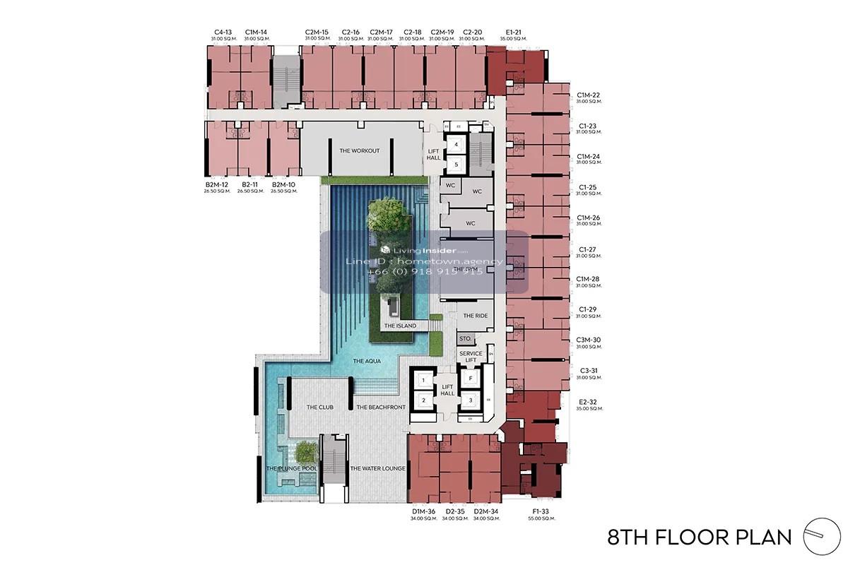 The common area is more than 5,000 sq m. , standards of AP , the leading real estate development company. Swimming pool / fitness / Co-working Space / Sky Lounge with 24/7 Security System and guards.