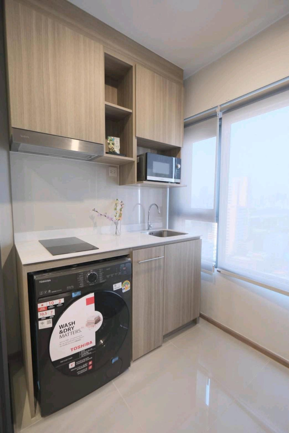 Life Rama 4 - Asoke High floor, size 32 sq m. View of Benjakitti Park 1 bedroom, 1 bathroom 1 living room with built-in kitchen Complete with furniture and electrical appliances. Near MRT Queen Siriki