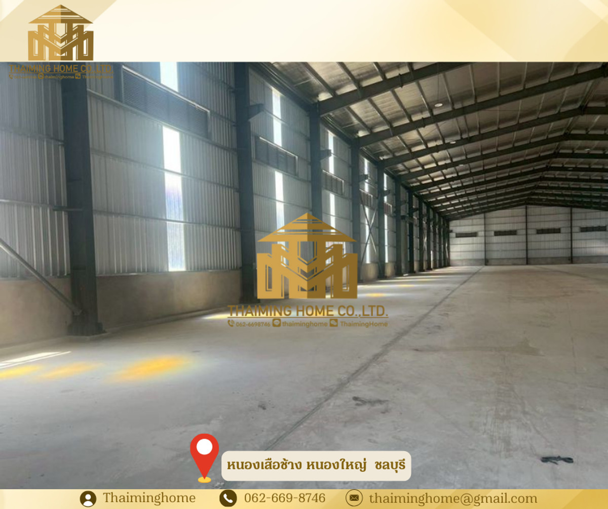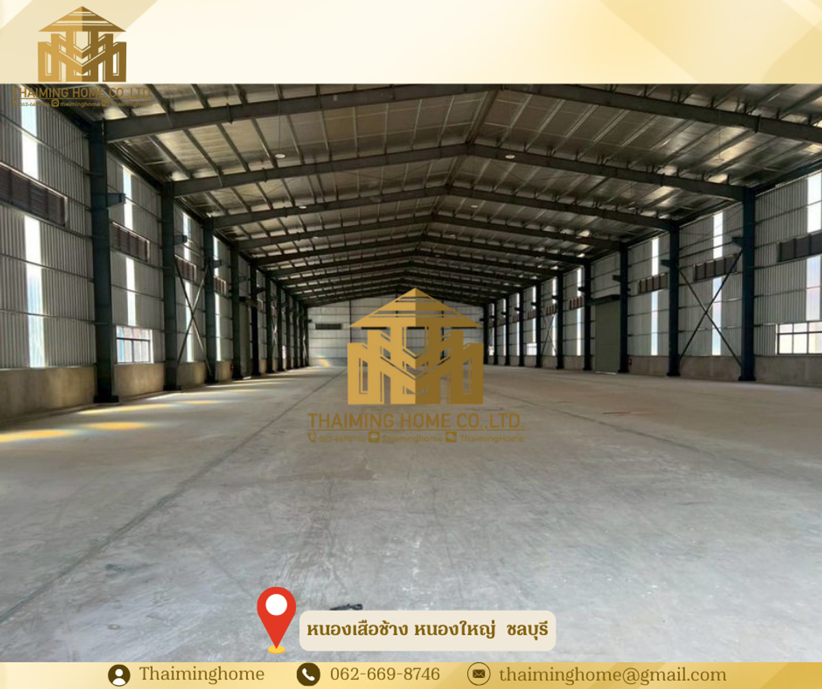 Newly built factory for rent, 3,200 sq m, Chonburi, near WHA Industrial Estate, Nong Suea Chang, Nong Yai (TW06-0626) Property Details - 3,200 sq m (30 x 120 x 10 m) - Yellow floor plan, Factory License 4 available - Factory bathrooms (2 female, 2 male) - Free!!! 80 sq m house, 2 bedrooms, 2 bathrooms, 1 kitchen, 1 living room - Crane available - Floor capacity 3 mt/sq m - Tap water - Electricity 250 KVA (payable to the government) - Office outside the warehouse Nearby Locations - Near WHA Industrial Estate, Nong Suea Chang, Nong Yai, Chonburi Conditions - 165 baht/sq m - 3-month security deposit, 1 month advance payment - 3-year contract -------------------------- บริษัท ไทยหมิง โฮม จำกัด Thaiming Home Co.,Ltd. 泰明房园 房产公司 _________________________ Contact ติดต่อ : Contact number Contact : Contact number คุณหมิง Line ID: thaiminghome Line ID: @thaiminghome https://lin.ee/PkkHwYv Wechat : ThaimingHome E-mail : Contact email _________________________
