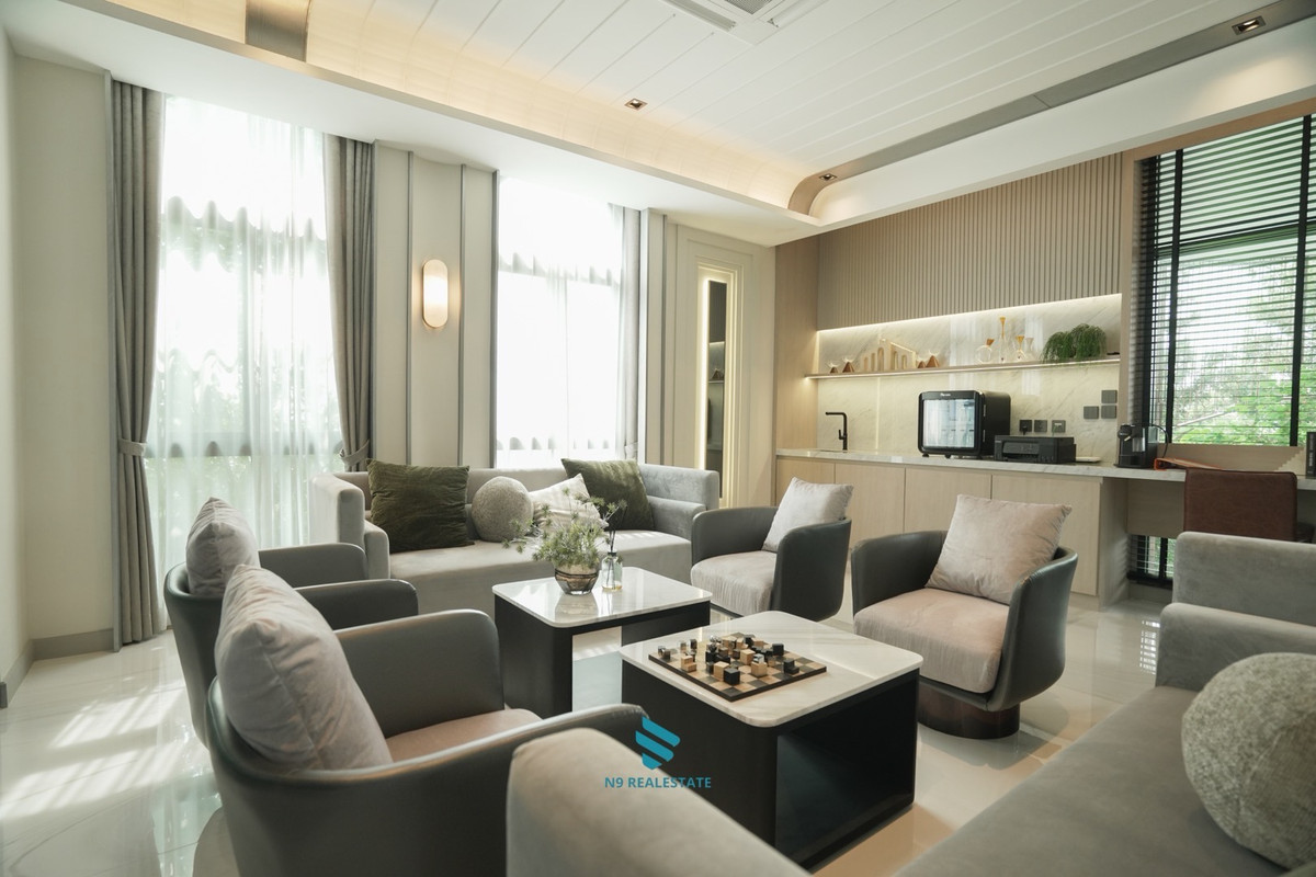 [RARE ITEM] Luxurious mansion "garden front" The best location in the project! ✨ Grand Bangkok Boulevard Bangna Km.15 Large detached house Greek palace design (Mediterranean Refinement) Ultimate privacy for only 73 families 🚀 The potential location is "The best" Convenience: • 📍 Next to the main road: Bangna-Trad, easy to enter and exit, no need to enter the alley • ✈️ Near the airport: Suvarnabhumi, just a few minutes. Answering the needs of people who travel frequently • 🏫 Near international schools: ASB Green Valley, Verso, Concordian (pick-up and drop off children very convenient) • 🛍️ Near famous department stores: Central Village, Mega Bangna, Market Village 💎 Highlight: Plot in front of the garden (Prime Position) Wake up to see a panoramic green space. Private and receive the best breeze in the project! 🏡 CELESTIAL house style | usable area 508 sq m., land 112 sq m. • 4 bedrooms | 5 bathrooms | 3 parking spaces • Complete functions: Buddha room, maids room, laundry room, luxury foyer • Double Living Room both upstairs and downstairs 🔥 Special price only 37.9 million baht 📌 Interested in making an appointment to view the house in the most beautiful location before anyone else 𝗧𝗲𝗹 : Contact number (Suwattana) or click here𝗹𝗶𝗻𝗸 Send a message via Line https://lin.ee/K3I70Ad #GrandBangkokBoulevard #Bangnakm15 #LuxuryhouseBangna #House near the airport #RareItem #SCAsset #Luxury mansion