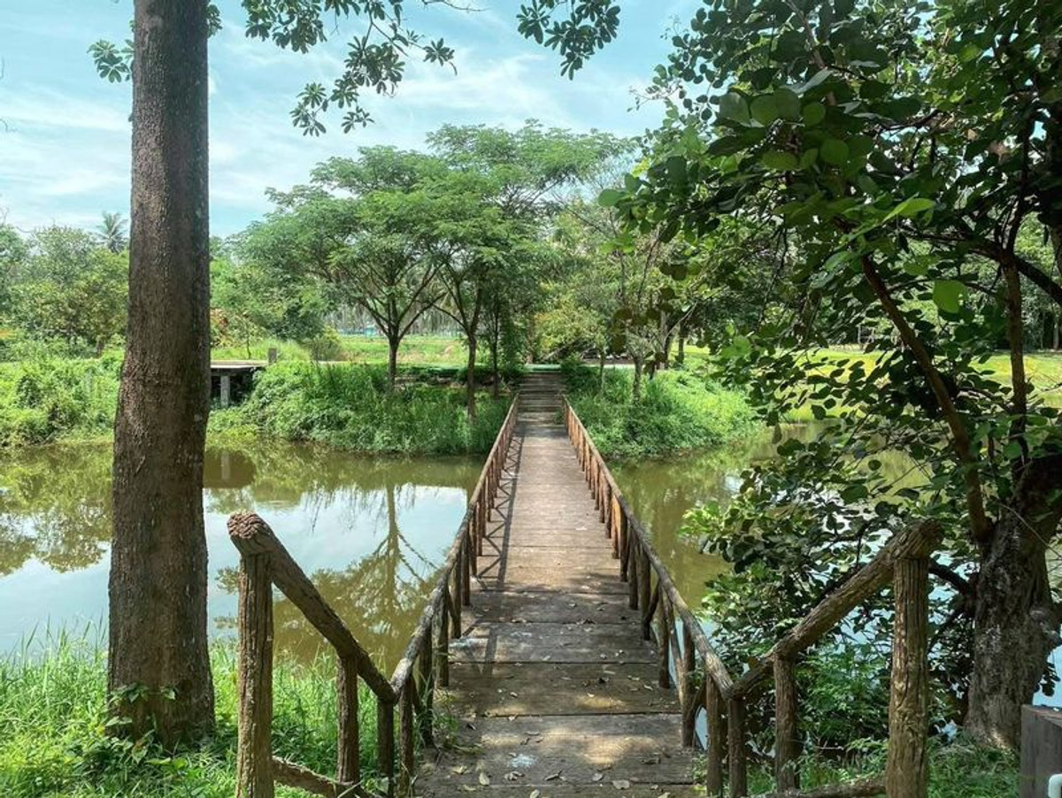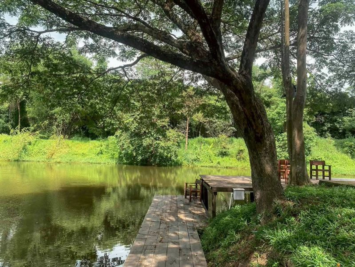 Waterfront land in Bang Phra - Si Racha, 5 rai (with an additional 4 rai of free extra land!) Prime location for your dream Cafe & Resort. Adjacent to a stream and lake, million-dollar atmosphere! Special price: 4.5 million baht per rai (Total 23,891,625 baht) Transfer fees split equally. Highlight Spacious area: 5 rai 123.7 sq.wa land title + almost 4 rai of extra land (totaling almost 10 rai!) Ready to use: Modern Loft building + warehouse + fully air-conditioned rooms (32 bathrooms total) Lush greenery: Plenty of large trees. Spacious lawn, ideal for camping or events. Excellent location: only 100 meters from the motorway / 15 minutes to Bang Saen / near 7-11. The property includes a modern loft building, a warehouse, 4 guest rooms with 9 air conditioners, and 2 separate male and female restrooms. Total of 32 rooms, each with a water heater. There is also a playground and a large lawn. All utilities are complete and ready for immediate business operation. If you enjoy a peaceful natural environment combined with convenient living, this plot of land will definitely meet all your needs. T : A8