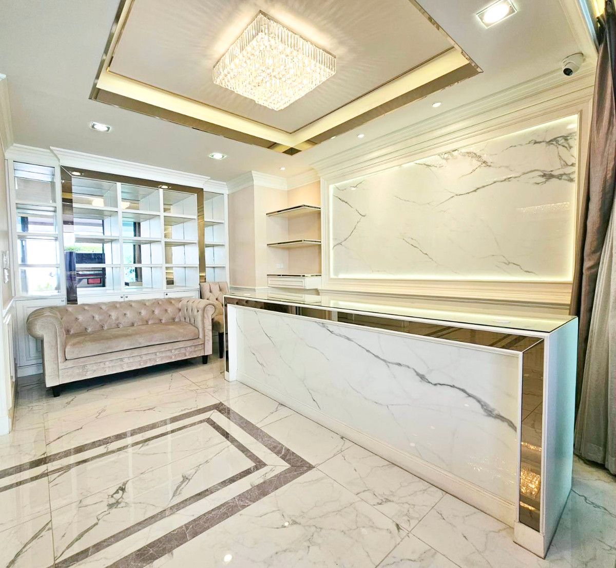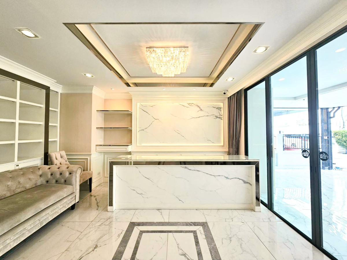 Home office is ready to move in. Built-ins on every floor, fully decorated, very good price. Anyone who lives along the road and needs an office, would recommend. Very new condition 99.99% in front of the District project. Ekkamai-Ramintra (DISTRICT EKKAMAI-RAMINTRA) 📍Usable area 510 sq m Area size 52.70 sq m 4-story twin building, width 14 meters, depth 12 meters 📍Decoration: 4-story twin building, decorated, ready to move in. Complete with furniture set, lighting system, air conditioning system, LAN system (internet installed and ready to use), there is Wi-Fi inside the building and there are CCTV cameras that can be viewed through mobile phones. Built-in on every floor. Additions include parking, staff rooms, small lab rooms, 4 conference rooms, every piece of furniture made to order. Lights ordered from abroad Imported marble Specially designed interior, 4th floor can be used as a residence as well. Because when I bought this place, it was a Bareshell style, so I had to completely redecorate it ⭕1st floor 1 showroom, 2 work rooms, 1 Lab room, 1 kitchen, 1 storage room, 1 bathroom, 1 large 4-way air conditioner / 3 small air conditioners , parking for 3 cars in front of the building ⭕2nd floor 1 large meeting room, 2 small meeting rooms, 1 bathroom, 1 4-way air conditioner Large air conditioner / 2 small air conditioners ⭕3rd floor 1 large conference room, 1 office room, 1 bathroom, 1 storage room, 1 large 4-way air conditioner / 1 small air conditioner ⭕4th floor 1 large bedroom Ensuite bathroom, 1 small bedroom, ensuite bathroom, 2 air conditioners ⭕Nearby places : -Phayathai Nawamin Hospital 4.8 kilometers -Nawawet Hospital 3.9 kilometers -KPIS International School 3.9 kilometers -Regent International School 10 kilometers -Central Eastville 6 kilometers -Fashion Island 9.0 kilometers - The Crytal 5 kilometers -Satri Wittaya 2 School 6 kilometers ⭕Travel : -Nuanchan Road -Nawamin Road -Kaset-Nawamin Road -Ram Inthra-Ekamai Expressway -Prasert Manukit Road ⭕BTS: Pink Line (Ramintra Km. 6 Station), get off in front of Soi Ramintra 40 ⭕Facilities: -Park -CCTV -24 hour security If interested, contact Contact number