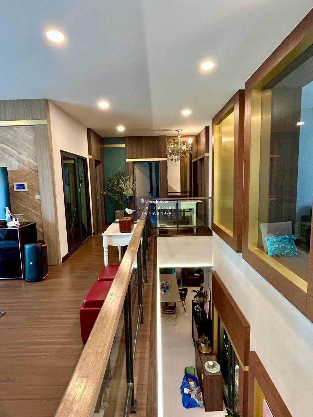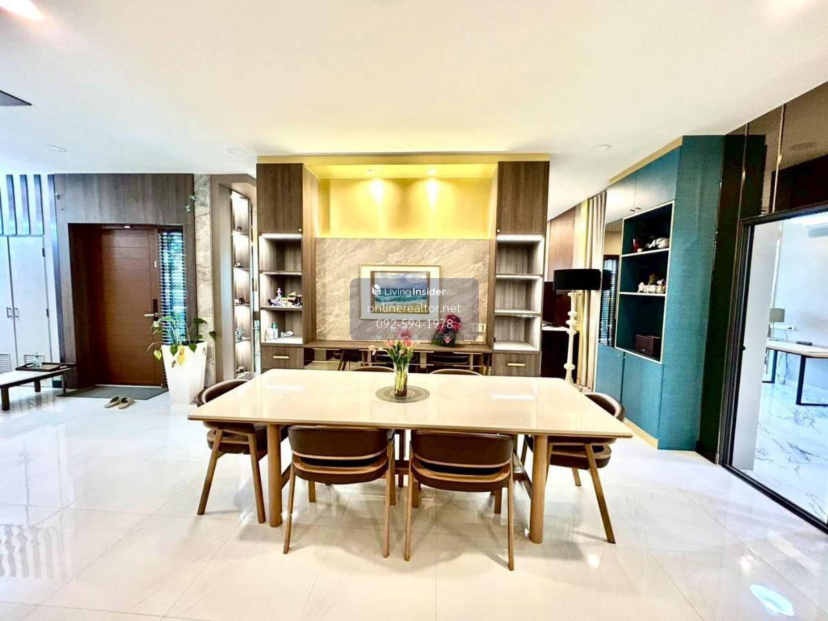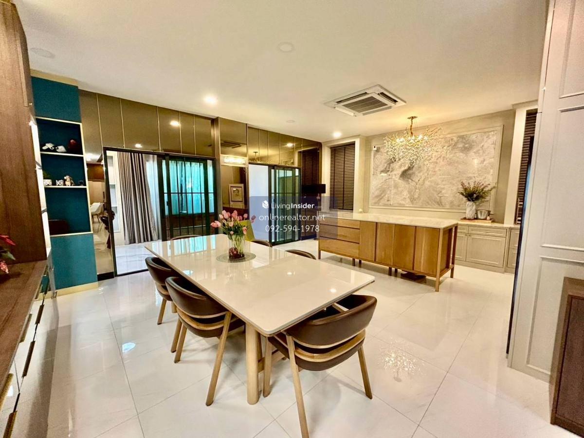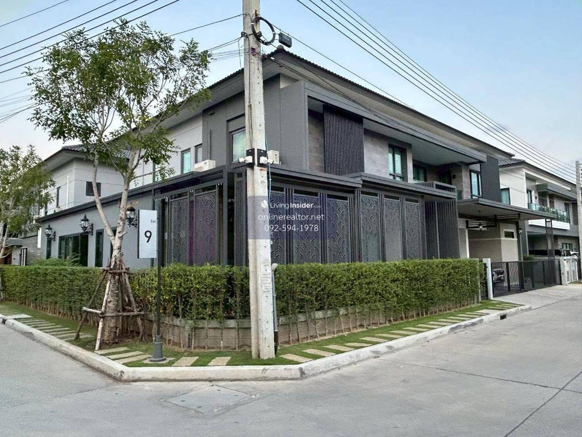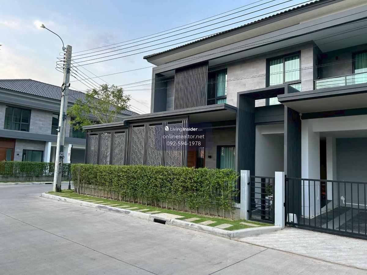 House for sale @The City Bangna - Corner unit 95 sq.wah , 487 sqm indoor space. This is a stunning property that blends modern luxury with functional elegance. The design features high-end materials like marble wall accents, sleek built-in cabinetry, and a unique laser-cut facade that offers both privacy and a beautiful play of light. This home stands out with its premium material palette and "Modern Contemporary" aesthetic. Every corner has been thoughtfully curated to provide a luxurious yet cozy atmosphere, perfect for both relaxation and entertaining. Highlight Features: Designer Interiors: Features stunning floor-to-ceiling marble accent walls and sleek built-in storage solutions throughout. Gourmet Kitchen & Bar: A high-end kitchen with dark cabinetry, integrated appliances, and a beautiful marble-backed breakfast bar with designer pendant lighting. Unique Exterior Facade: Custom laser-cut privacy screens create a striking architectural statement while allowing for natural ventilation and dappled sunlight on the spacious terrace. Lush Living Spaces: A bright, airy living room with plush velvet seating, premium curtains, and a glass-railed mezzanine overlooking the lower floor. Indoor-Outdoor Flow: Large sliding glass doors lead to a protected balcony walkway, perfect for morning coffee or evening lounging. Whatsapp/ line Contact number for viewing arrangement.