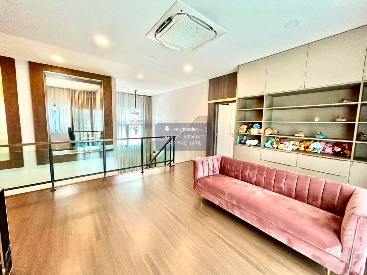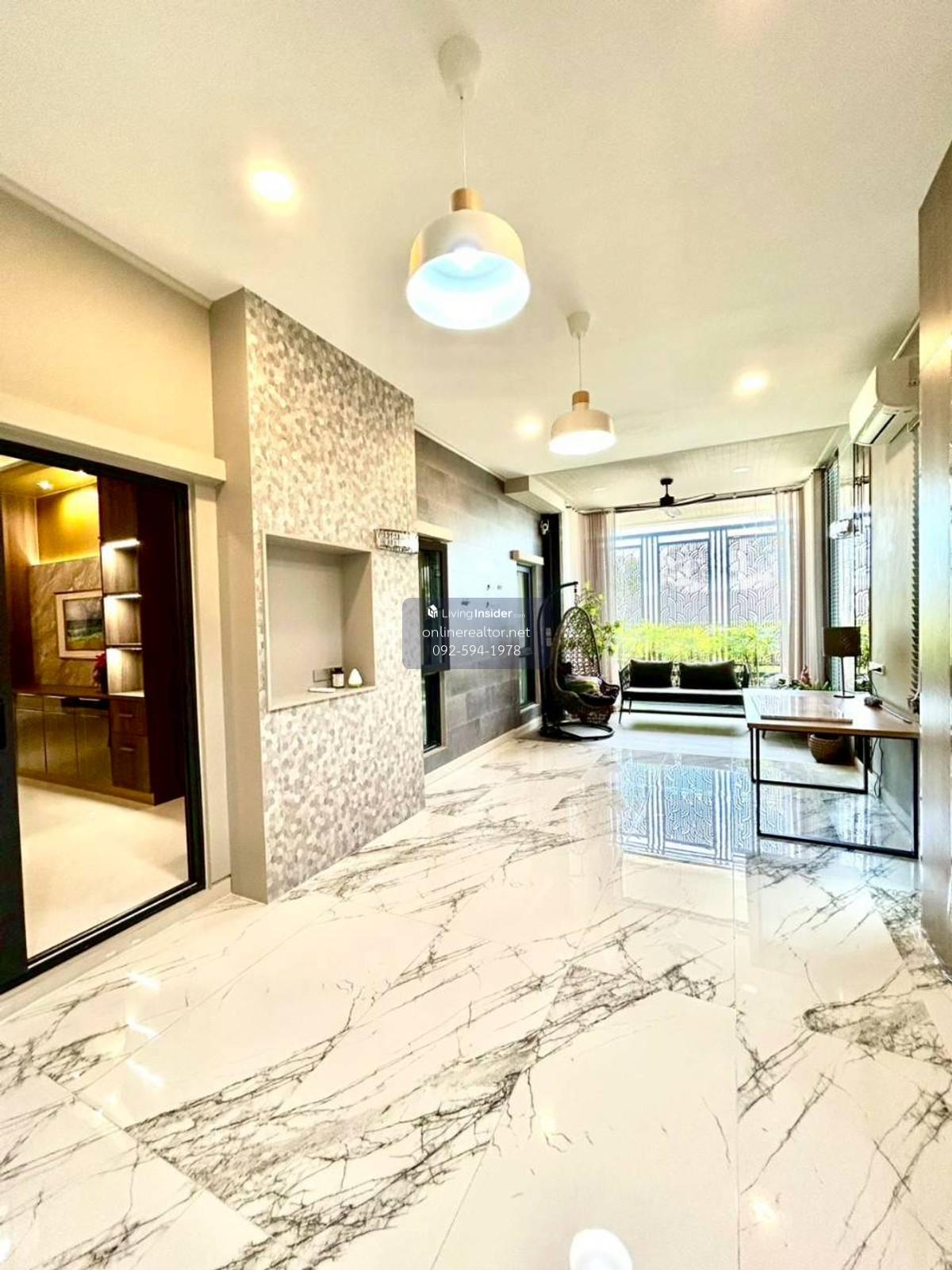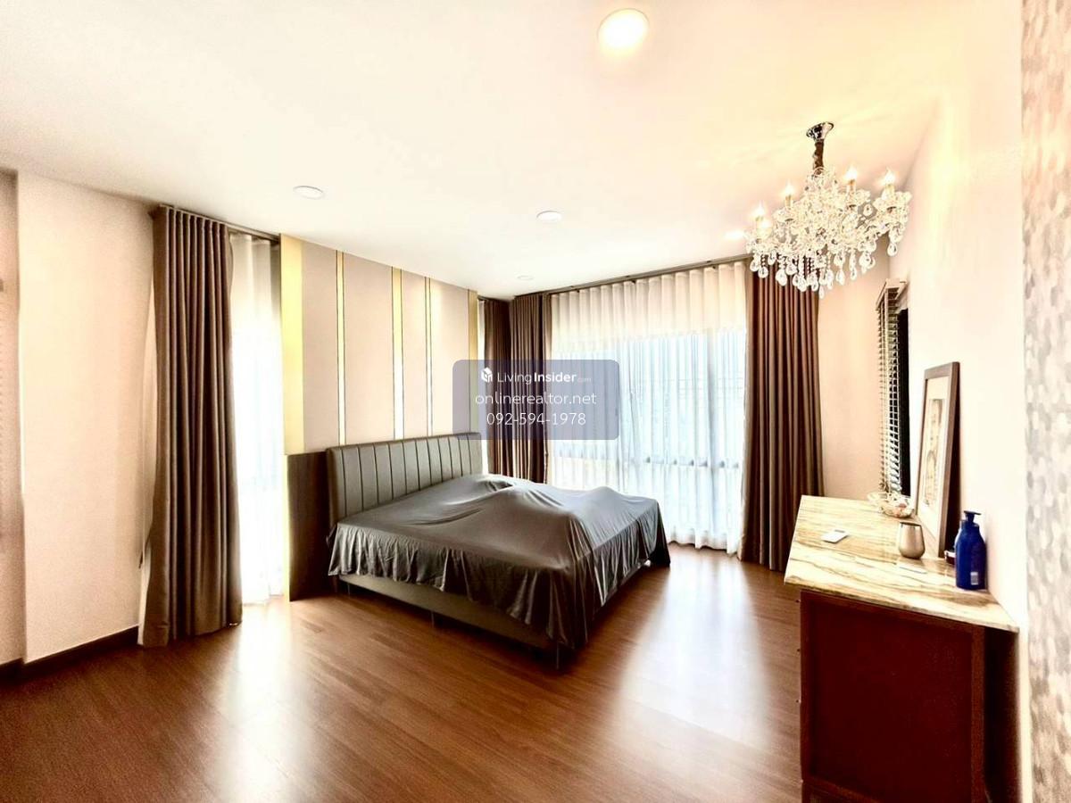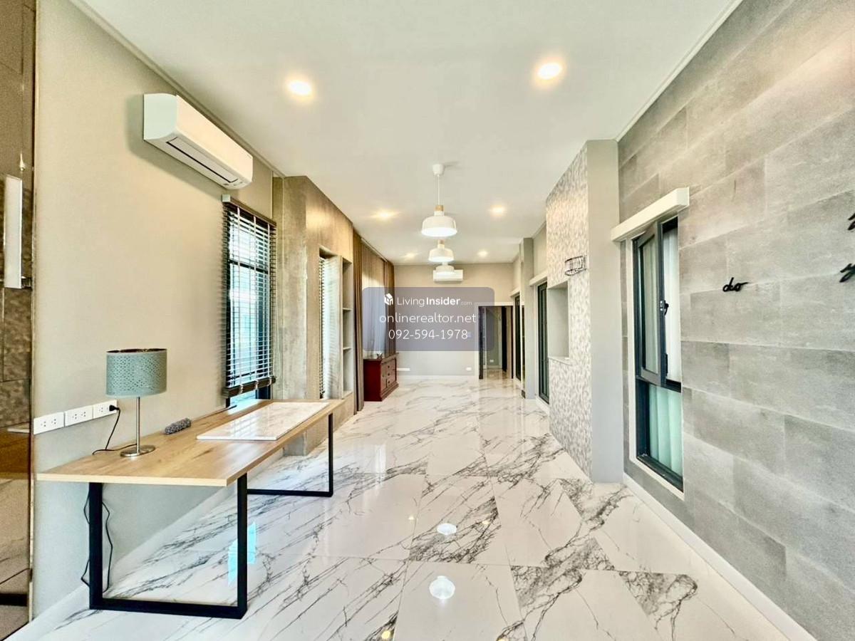 House for sale @The City Bangna - Corner unit 95 sq.wah , 487 sqm indoor space. This is a stunning property that blends modern luxury with functional elegance. The design features high-end materials like marble wall accents, sleek built-in cabinetry, and a unique laser-cut facade that offers both privacy and a beautiful play of light. This home stands out with its premium material palette and "Modern Contemporary" aesthetic. Every corner has been thoughtfully curated to provide a luxurious yet cozy atmosphere, perfect for both relaxation and entertaining. Highlight Features: Designer Interiors: Features stunning floor-to-ceiling marble accent walls and sleek built-in storage solutions throughout. Gourmet Kitchen & Bar: A high-end kitchen with dark cabinetry, integrated appliances, and a beautiful marble-backed breakfast bar with designer pendant lighting. Unique Exterior Facade: Custom laser-cut privacy screens create a striking architectural statement while allowing for natural ventilation and dappled sunlight on the spacious terrace. Lush Living Spaces: A bright, airy living room with plush velvet seating, premium curtains, and a glass-railed mezzanine overlooking the lower floor. Indoor-Outdoor Flow: Large sliding glass doors lead to a protected balcony walkway, perfect for morning coffee or evening lounging. Whatsapp/ line Contact number for viewing arrangement.