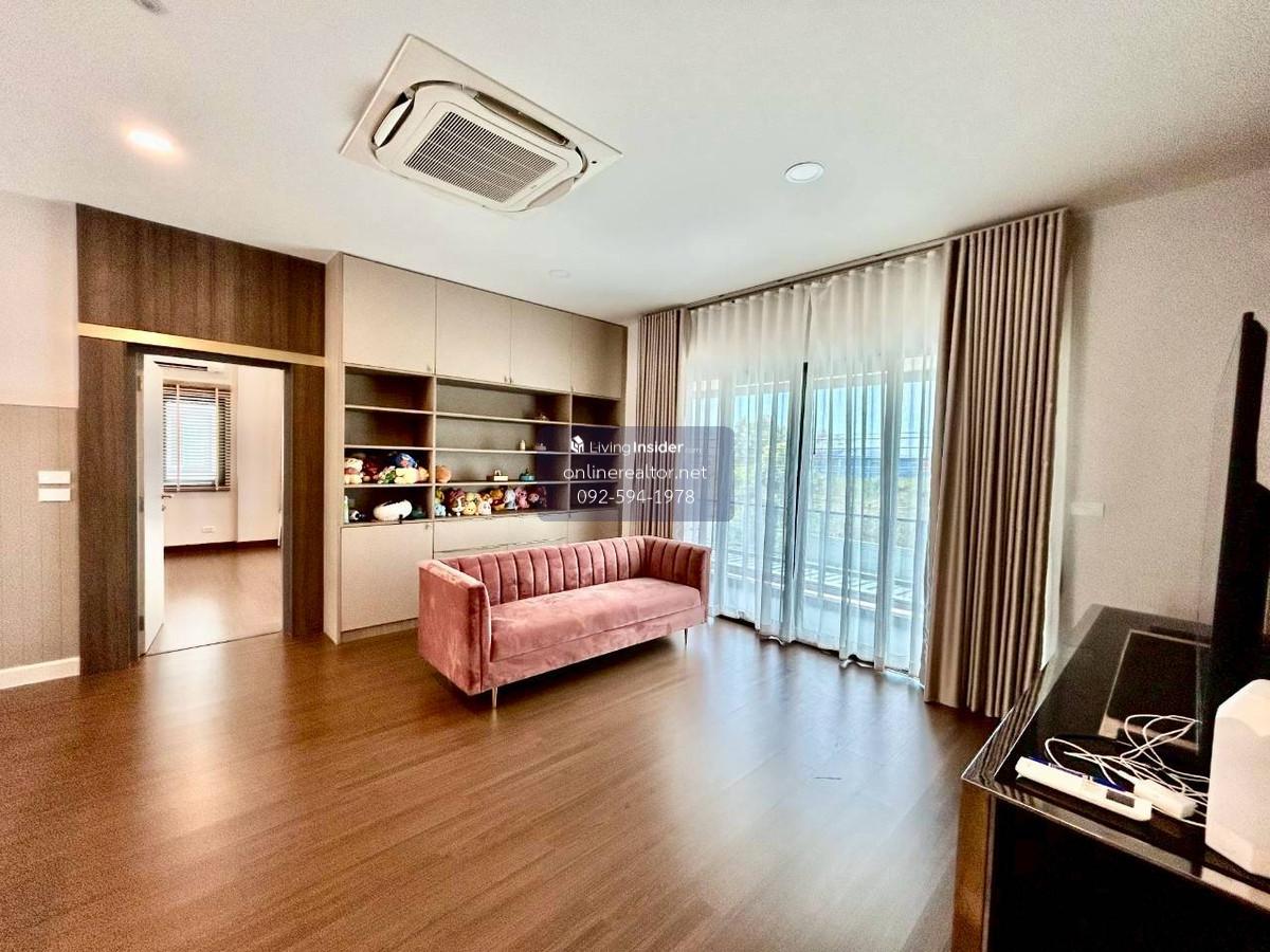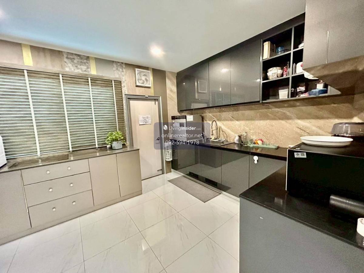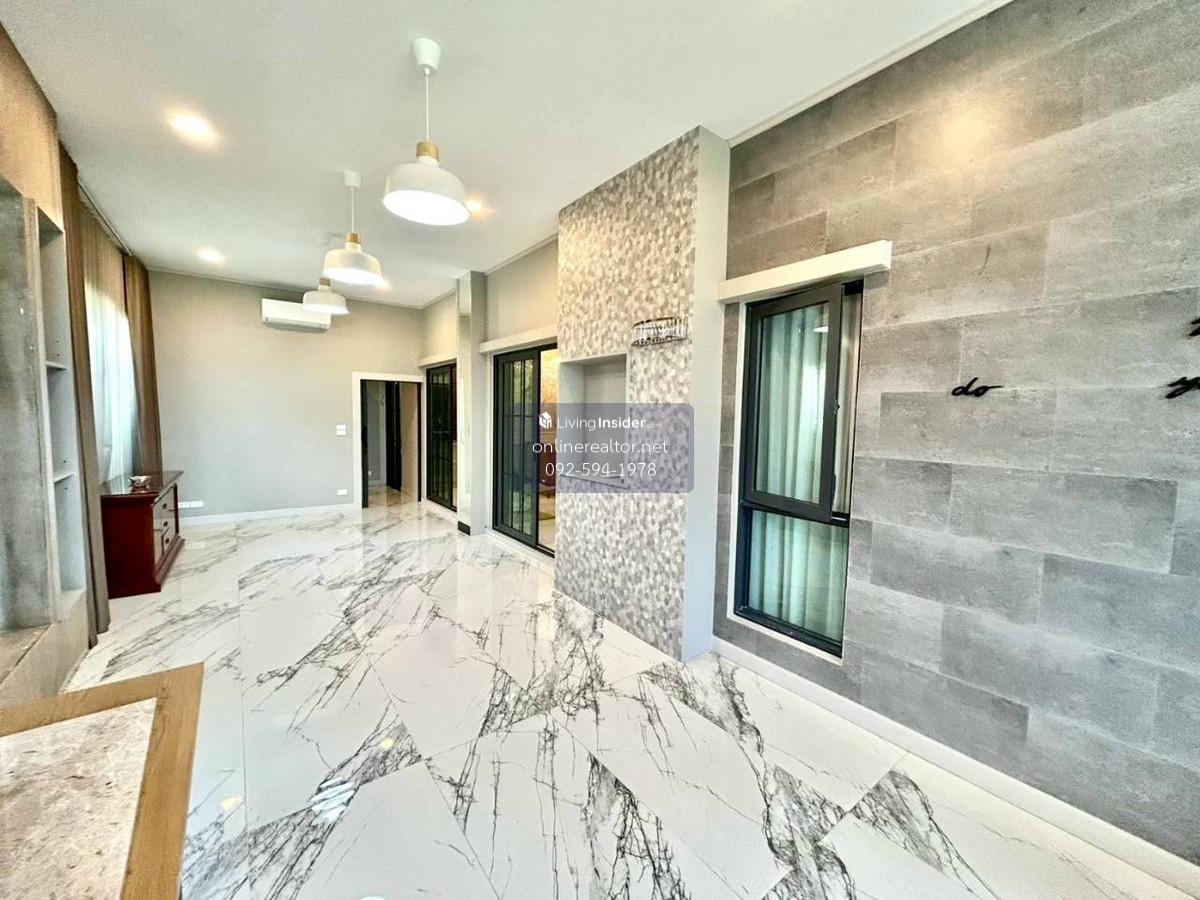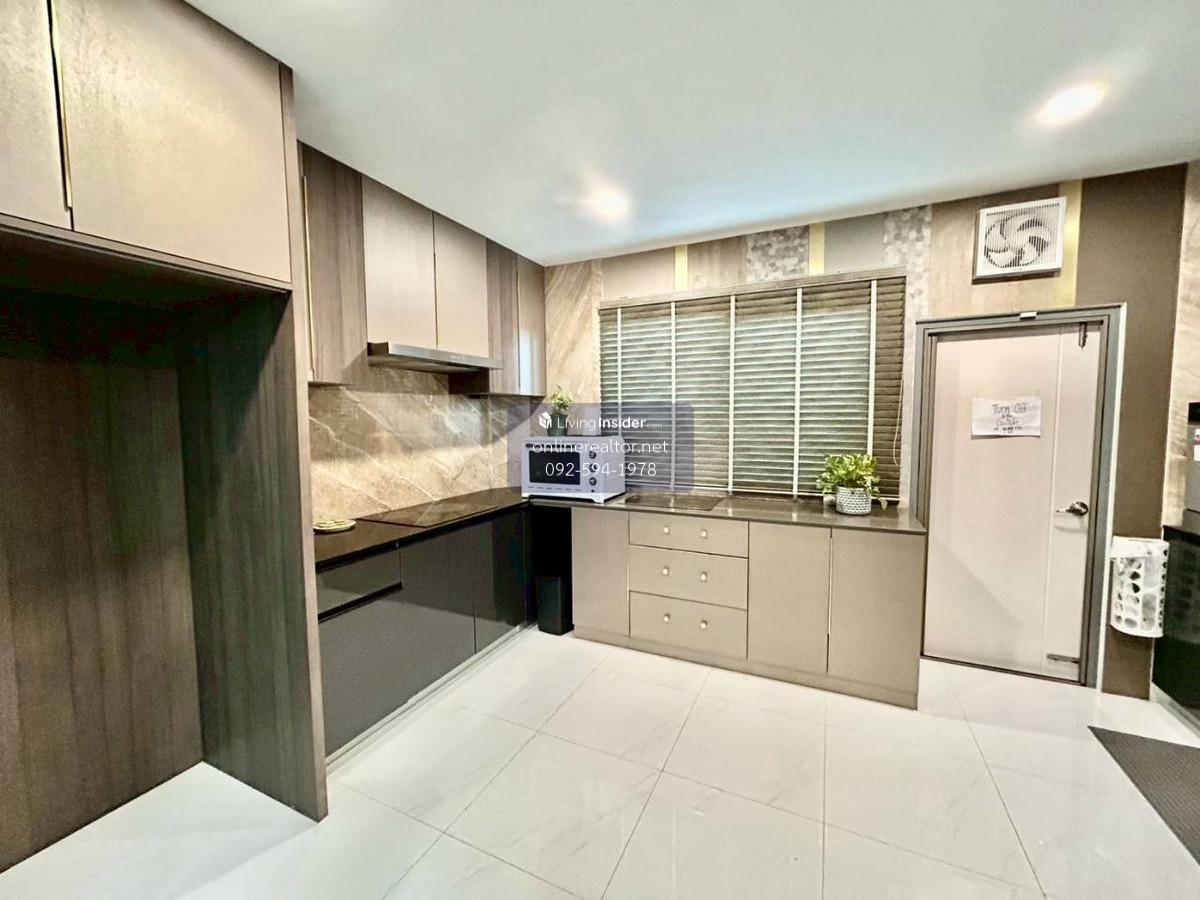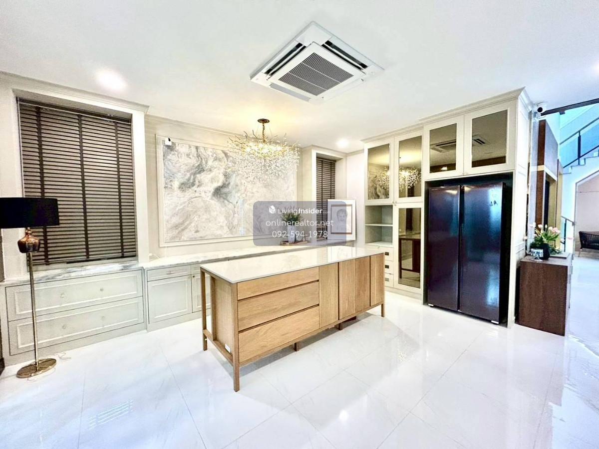 House for sale @The City Bangna - Corner unit 95 sq.wah , 487 sqm indoor space. This is a stunning property that blends modern luxury with functional elegance. The design features high-end materials like marble wall accents, sleek built-in cabinetry, and a unique laser-cut facade that offers both privacy and a beautiful play of light. This home stands out with its premium material palette and "Modern Contemporary" aesthetic. Every corner has been thoughtfully curated to provide a luxurious yet cozy atmosphere, perfect for both relaxation and entertaining. Highlight Features: Designer Interiors: Features stunning floor-to-ceiling marble accent walls and sleek built-in storage solutions throughout. Gourmet Kitchen & Bar: A high-end kitchen with dark cabinetry, integrated appliances, and a beautiful marble-backed breakfast bar with designer pendant lighting. Unique Exterior Facade: Custom laser-cut privacy screens create a striking architectural statement while allowing for natural ventilation and dappled sunlight on the spacious terrace. Lush Living Spaces: A bright, airy living room with plush velvet seating, premium curtains, and a glass-railed mezzanine overlooking the lower floor. Indoor-Outdoor Flow: Large sliding glass doors lead to a protected balcony walkway, perfect for morning coffee or evening lounging. Whatsapp/ line Contact number for viewing arrangement.