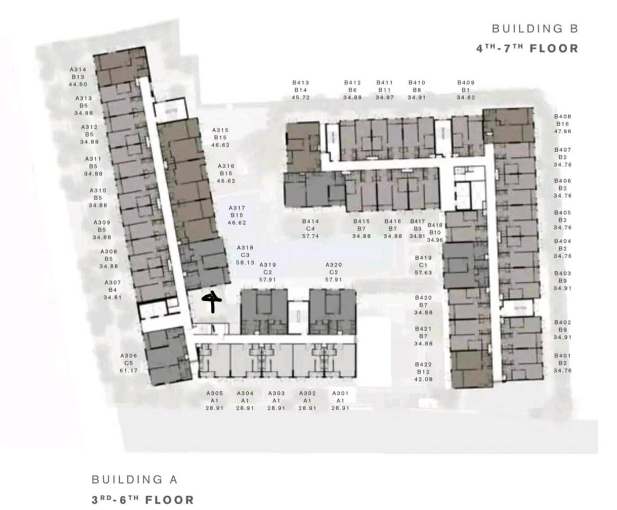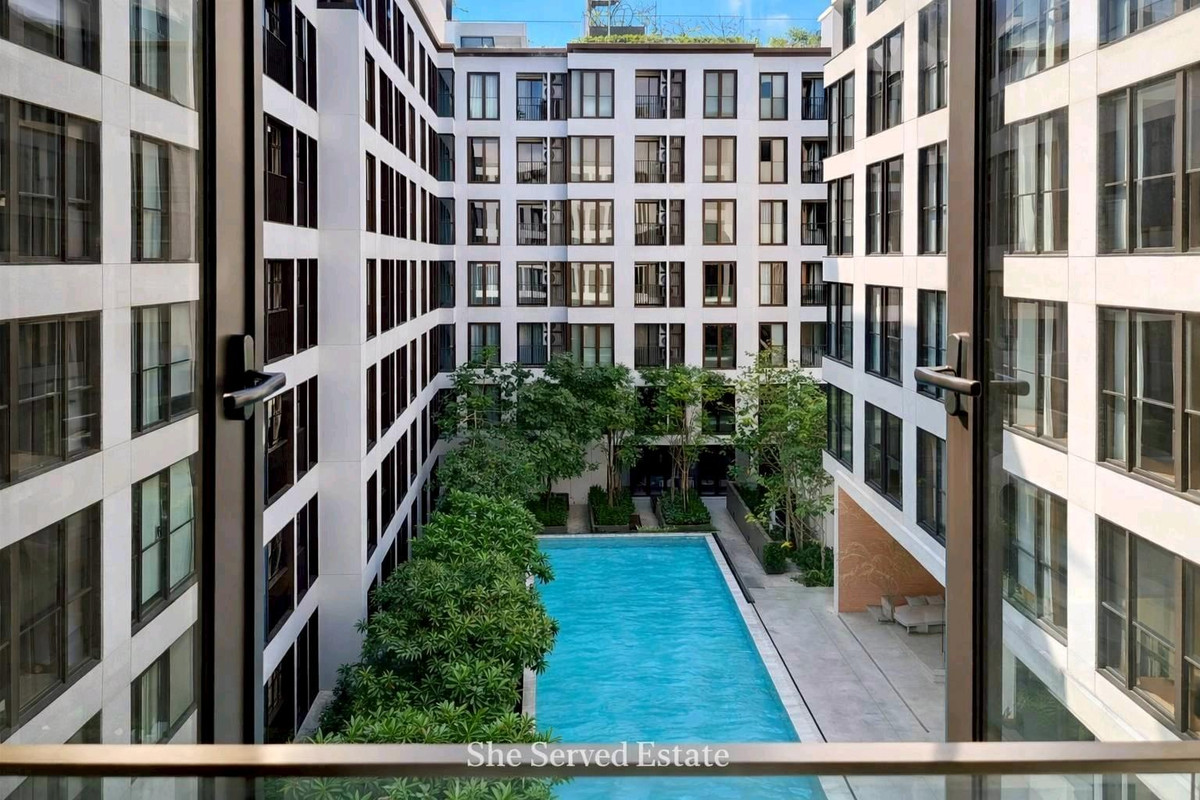 For Rent ◈ Chapter Thonglor 25 ◈ Rental price: 43,000 THB/month • Size: 57.2 sq.m. • Floor: 4 of 7 • Building: A • 2 Bedrooms • 2 Bathrooms (bathtub in master bedroom) • Corner unit with swimming pool