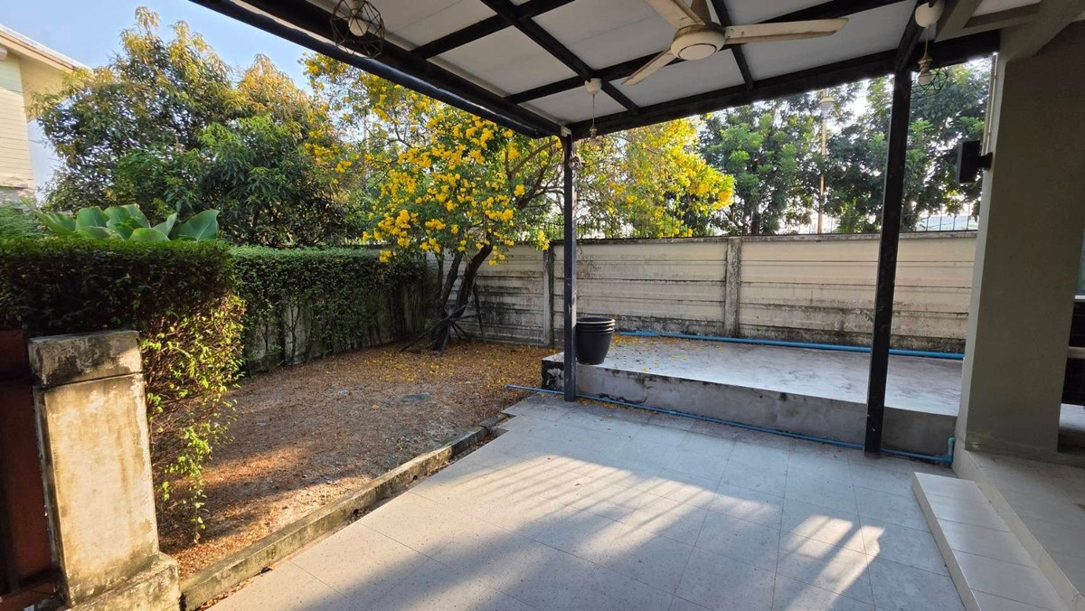 2-story detached house for rent, ready to move in, good location, Pruksa Phuri Village, Soi King Kaew 37, corner house, private Details 2-story detached house, garden view Area 58 sq m, 3 bedrooms, 2