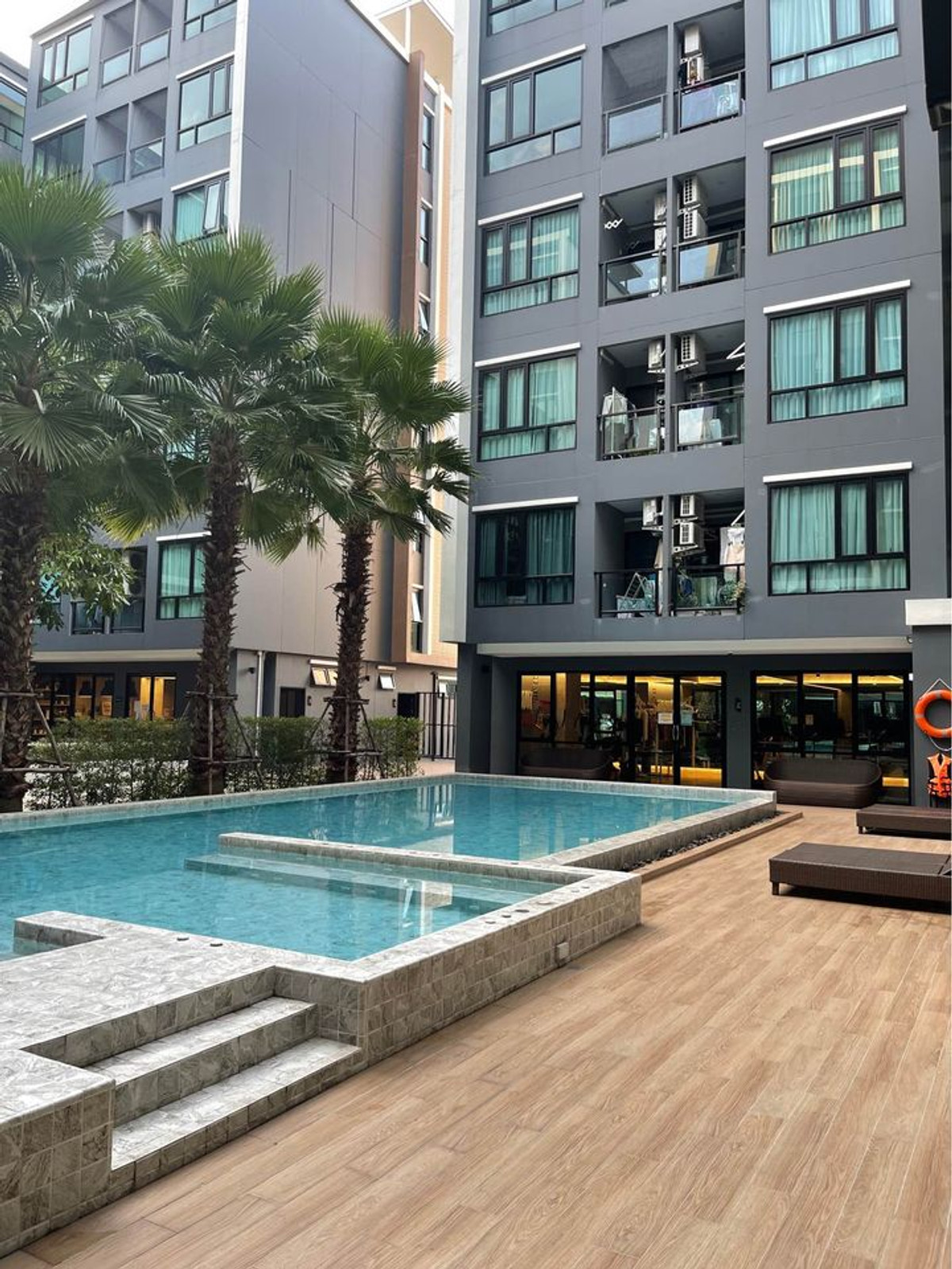 Condo for rent, The Cube Plus Phahonyothin 56 , Building A, 7th floor, 1 bedroom, 1 bathroom, garden view and swimming pool, ready to move in Furniture in the room: bed with mattress and bedding, built in wardrobe, sofa with cushions, coffee table, bedside table with lamp, built in kitchen, dining table with 2 chairs Electrical appliances in the room: 2 air conditioners, TV, 2 door refrigerator, microwave, front loading washing machine, fan, water heater Price 8,000 baht /month Tel. Contact number ศูนย์ เก้า เก้า เก้า เก้า แปด สาม แปด เก้า เจ็ด Zero nine nine nine nine eight three eight nine seven Line: @KatAgent Location: The Cube Plus Phahonyothin 56100 Soi Phahonyothin 56, Sai Mai Subdistrict, Sai Mai District, Bangkok 10220 Common areas: 24-hour security, CCTV, swimming pool, fitness room, sauna room, Co working space Nearby places: Green Line MRT Station KM 25, B Care Hospital, Memorial, Tupataymi Stadium, Zeer Rangsit