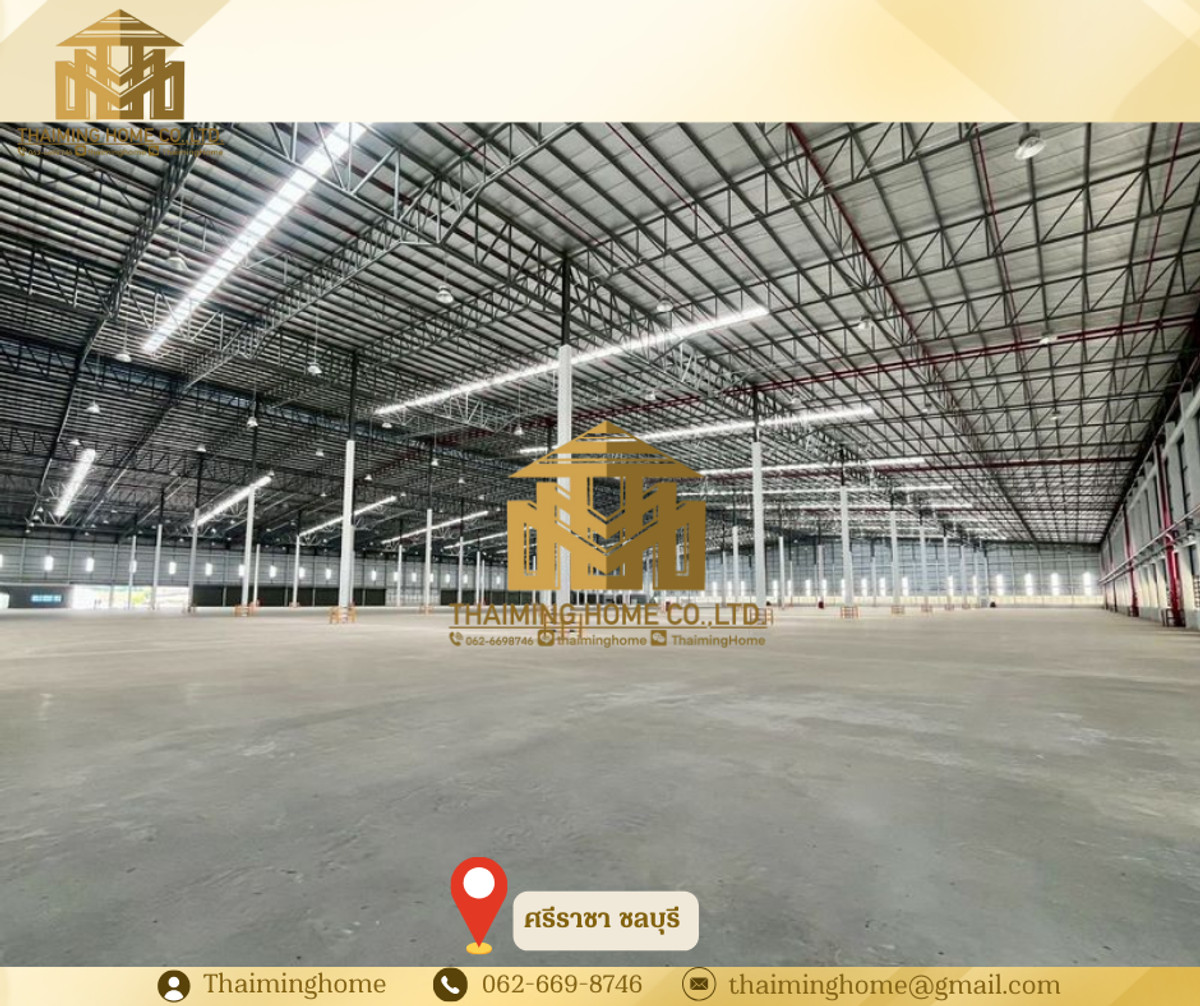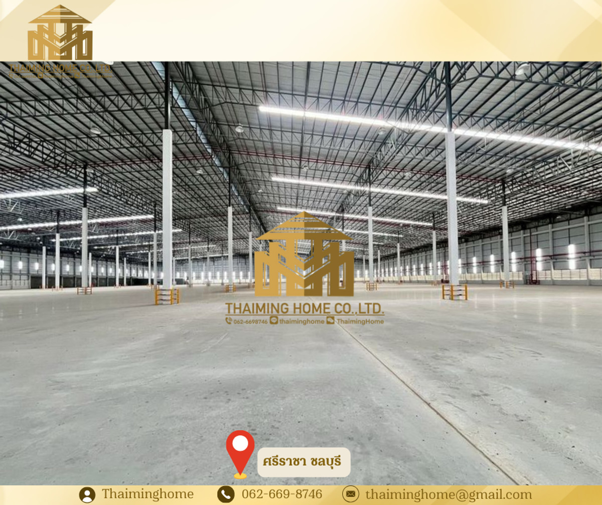 Factory for Rent, 22,400 sq.m., Purple Zone (Industrial Estate), Sriracha, Chonburi (TW8-07326) Details: - Standard factory location in purple zone. - Equipped with complete safety systems, suitable for production and warehousing. - Usable area: 22,400 sq.m. - Building height: 12 meters. - Crystal Floor with a weight capacity of 3 tons/sq.m. - 250 KVA transformer. - Includes on-site office space. Amenities / Safety Features - Sprinkler system - Dock Leveler for loading and unloading goods - Smoke Detectors - Fire Alarm system Nearby Locations - 30 minutes (25 km) from Laem Chabang Port - 10 minutes (6 km) from Robinson Bowin - 1 hour 20 minutes (103 km) from Suvarnabhumi Airport Terms and Conditions - Rent: 160 THB/sq.m./month - Security Deposit: 3 months' rent - Advance Rent: 1 month's rent - Contract: 3 years ________________________ บริษัท ไทยหมิง โฮม จำกัด Thaiming Home Co.,Ltd. 泰明房园 房产公司 _________________________ Contact ติดต่อ : Contact number Contact : Contact number คุณหมิง Line ID: thaiminghome Line ID: @thaiminghome https://lin.ee/PkkHwYv Wechat : ThaimingHome E-mail : Contact email _________________________