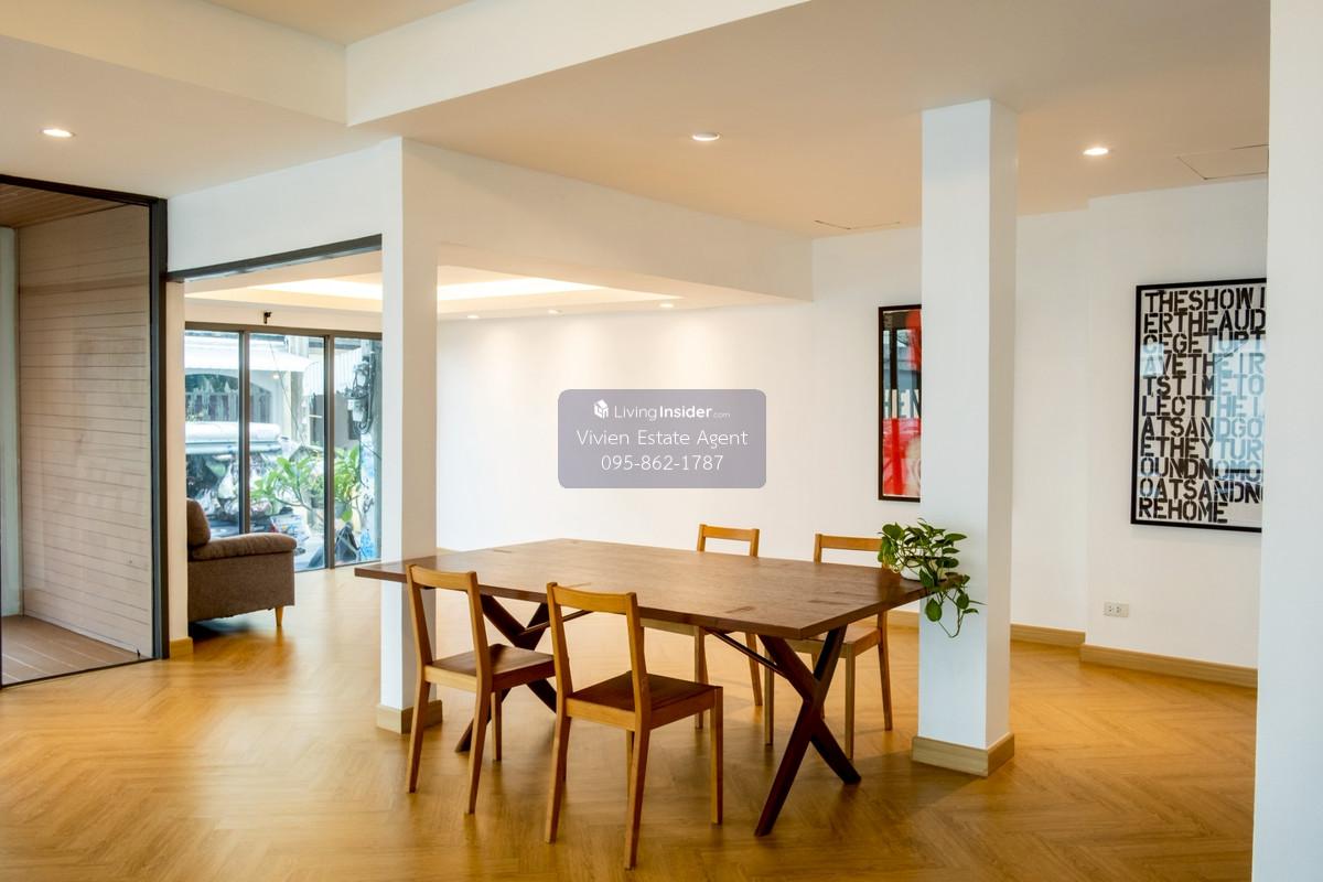 For sell - Townhome Rama 9 Soi 11 – Corner Unit, three storey, 36 Sq.Wah (144 sqm land), 320 sqm usable area. Prime location only 200 meters from Rama 9 Road. Corner unit with wide project road access. Plenty of parking for cars and motorbikes. Perfect for office, central kitchen, dine-in restaurant, or delivery business. Spacious balconies wrap around the building. Fully equipped kitchen with hood, ready to move in and operate. Special Price! From 15 MB Now only 12.5 MB Type: Townhome / Home Office Land Size: 36 sq.wah (144 sqm) Usable Area: 320 sqm Price per sqm: 39,062 THB/sqm Ownership: Freehold land title deed Parking: Plenty of parking space inside the village Accessibility: Excellent location, near 3 MRT lines (including the Orange Line) Property Details • 1 large multipurpose room on 1st floor – ideal for restaurant, café, or central kitchen • 1 Kitchen • 4 Bedrooms • 6 Bathrooms • No common area fee Selling Price: Special discount from 15,000,000 12,500,000 THB (Open for serious offers) (Transfer fee shared 50/50. Come and visit—you’ll fall in love with this home Tel: Contact number Line ID: @vivienestate