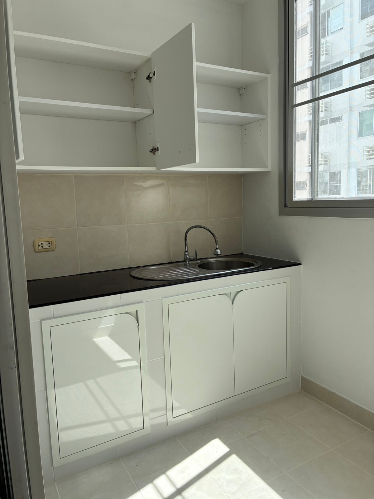 Next to BTS Umsuk Station Area 30 sq m. Recently renovated, all new floors, windows, counters Air conditioner. water heater Completely changed Rent 8500 baht/month Furniture, wardrobe, storage cabinet