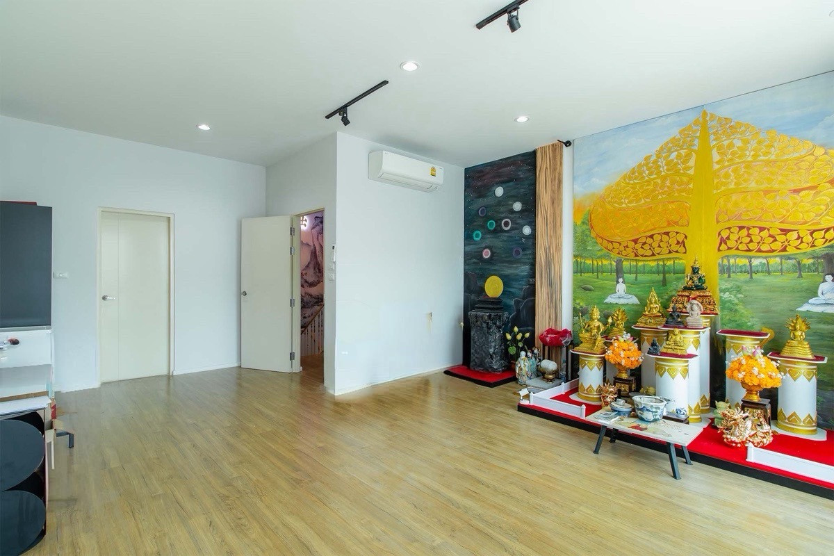 3-story townhome Baan Klang Muang Sathorn-Suksawat Popular quality project from AP Size 18.1 square wah * 3-story townhome, width 5 m., usable area 152 sq m., 3 bedrooms, 3 bathrooms, 2 parking spaces * Front of the house faces south. Its not hot in the afternoon * 3rd floor is a Master room with a balcony overlooking Bhumibol Bridge * Added kitchen at the back with built-in and gas stove set * 3 air conditioners * Built-in TV shelf. and a bed set, dressing table * The highlight is near Chalerm Mahanakorn Expressway. Kanchanaphisek Ring Expressway and Bhumibol Bridge Make traveling using a car convenient. which is the main advantage This project, although not located next to the main road, is only 270 meters from Suksawat Road *Importantly, this house is selling for hundreds of thousands below cost* Nearby places * Industrial Ring Road 3 km./about 8 minutes * Chalerm Maha Nakhon Expressway 3.8 km./about 11 minutes * Bhumibol Bridge 2.5 km./about 7 minutes (no service charge) * Big C Suksawat 1.5 km. * Tesco Lotus Bang Prakok 5.8 km. * Max Value Pracha Uthit 3.9 km. * Central Rama 3 8.7 km. * Central Rama 2 12.7 km. * Saint Marys School 1.2 km. * Wisutthikasattri School 1.5 km. * King Mongkuts University of Technology Thonburi 4.3 km. * Sarasas Witaed Suksa School 8.1 km. * Rung Arun School : 9 km. * Suankularb Wittayalai Thonburi School : 9.9 km. Summary of facilities * 1 swimming pool, salt system, size 20 x 7.5 meters, depth 1.2 meters * Childrens pool * The swimming pool has a Jet spa system and Bubble Jet * Exercise room * Public park 0-3 -52.6 rai (park area and gardens throughout the project) * CCTV system at the Main Gate and within the project * Fence around the project height of 3 m. and a 7 m. high sound barrier * Key Card Access * 24-hour security guards * Project gate Downed wooden fence * Burglar alarm system, Magnetic & Shock Sensor * Main road width 12 m. and internal road width 8 – 10 m. This house, in this location, price only 4,000,000 Google map https://maps.app.goo.gl/Y9YwUw7Nyf2b7Cjg7?g_st=ic