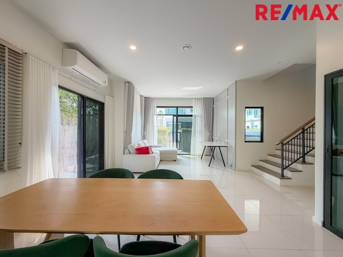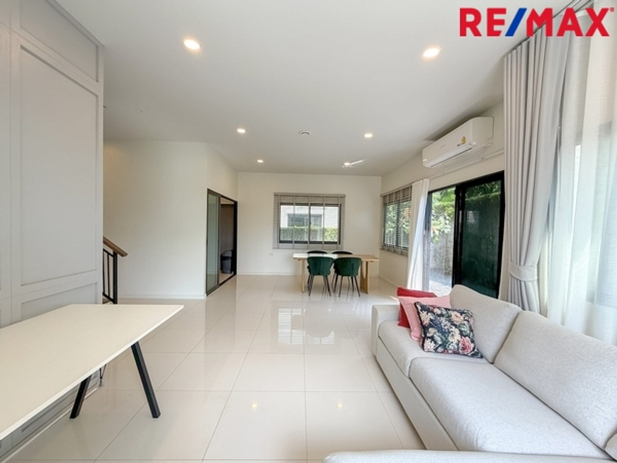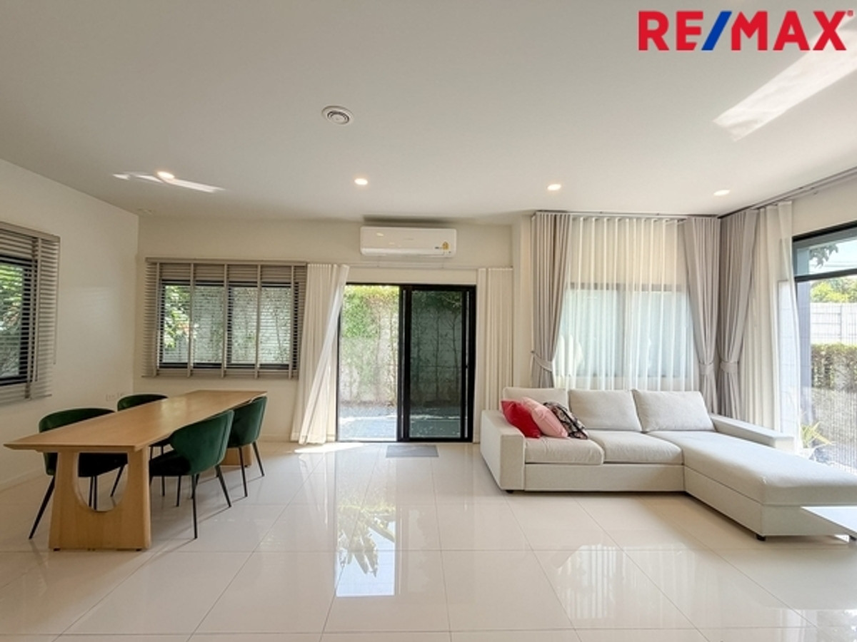 - Modern British style in a location next to the main road parallel to Kanchanaphisek - close to 2 expressways, Chalong Rat Expressway and Kanchanaphisek Ring Expressway - only 30 minutes to Don Mueang Airport - parallel road Kanchanaphisek Sam Wa Tawan Tok Subdistrict, Khlong Sam Wa District, Bangkok Property details - Land area: 52.2 sq m., usable area 185 sq m - 4 bedrooms, 3 bathrooms - 1 kitchen - 2 car parking spaces Furniture provided for the house - Dining table set - Sofa - Television - Bed set - Wardrobe - Work desk Electrical appliances - Digital door lock - 5 air conditioners - Gas stove with exhaust hood - 1 refrigerator - Washing machine - Oven or microwave - Rice cooker - Electric boiler Common areas: - Swimming pool, fitness, park, basketball court, childrens room, meeting room, Key Card Access Notable nearby places - 7 – Eleven ~ 2.4 kilometers - Max Value Hathairat ~ 2.9 kilometers - Wongsakorn Market ~ 4 kilometers - Big C Market Sai Mai ~ 6 kilometers - Tops Sai Mai ~ 7.1 kilometers - AC Market Sai Mai ~ 8.9 kilometers - Fashion Island ~ 11.8 kilometers - Central Plaza Ramindra ~ 14.5 kilometers - The Walk Kaset – Nawamin ~ 15.3 kilometers - Central Eastville ~ 17.5 kilometers - Western University ~ 2.6 kilometers - Nawaminthrachinuthit Benjamarachalai School ~ 3 kilometers - Sarasas Witaed Saimai School ~ 4.5 kilometers - Sathit Pattana School ~ 5.7 kilometers - Kawalee International School ~ 5.9 kilometers - Saimai Hospital ~ 3.5 kilometers - Synphaet Lam Luk Ka Hospital ~ 6 kilometers - Inthrarat Hospital ~ 9.7 kilometers - Phyathai Nawamin Hospital ~ 10.9 kilometers - CGH Lam Luk Ka Hospital ~ 11.3 kilometers Transportation - connecting routes - Ramintra Expressway - At Narong, Chatuchot Dan ~ 2.3 kilometers Travel - Starting from Chalong Rat Expressway. (Ram Inthra-At Narong Expressway) ⇒ Exit 26, Chatuchot Road ⇒ Kanchanaphisek Road to the Grand Britannia Wongwaen-Ramindra project (Britannia Wongwaen-Ramindra) *near Chatuchot Expressway