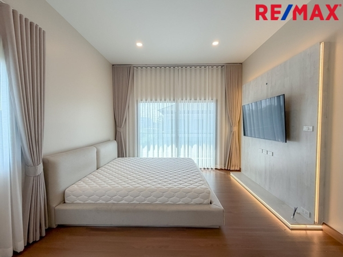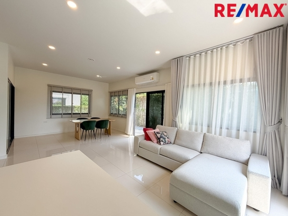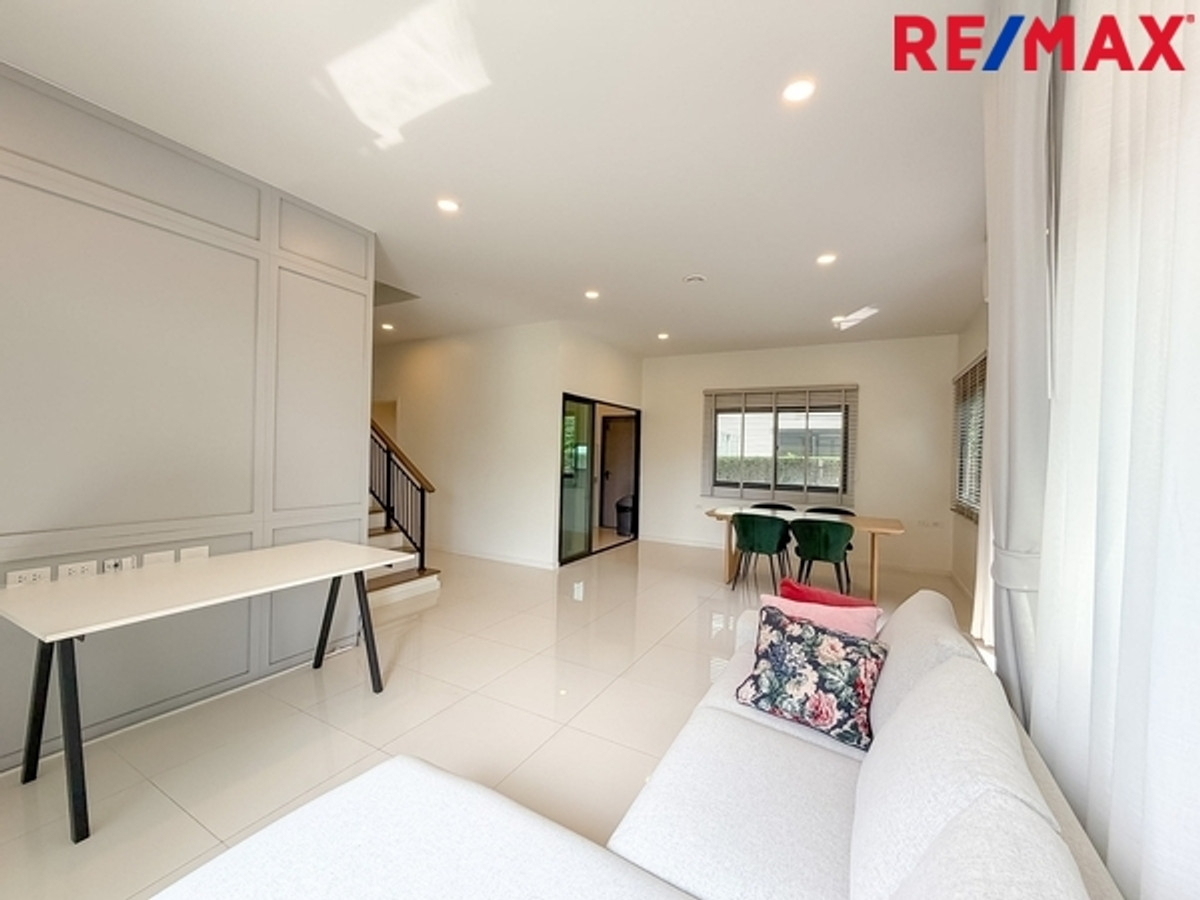 - Modern British style in a location next to the main road parallel to Kanchanaphisek - close to 2 expressways, Chalong Rat Expressway and Kanchanaphisek Ring Expressway - only 30 minutes to Don Mueang Airport - parallel road Kanchanaphisek Sam Wa Tawan Tok Subdistrict, Khlong Sam Wa District, Bangkok Property details - Land area: 52.2 sq m., usable area 185 sq m - 4 bedrooms, 3 bathrooms - 1 kitchen - 2 car parking spaces Furniture provided for the house - Dining table set - Sofa - Television - Bed set - Wardrobe - Work desk Electrical appliances - Digital door lock - 5 air conditioners - Gas stove with exhaust hood - 1 refrigerator - Washing machine - Oven or microwave - Rice cooker - Electric boiler Common areas: - Swimming pool, fitness, park, basketball court, childrens room, meeting room, Key Card Access Notable nearby places - 7 – Eleven ~ 2.4 kilometers - Max Value Hathairat ~ 2.9 kilometers - Wongsakorn Market ~ 4 kilometers - Big C Market Sai Mai ~ 6 kilometers - Tops Sai Mai ~ 7.1 kilometers - AC Market Sai Mai ~ 8.9 kilometers - Fashion Island ~ 11.8 kilometers - Central Plaza Ramindra ~ 14.5 kilometers - The Walk Kaset – Nawamin ~ 15.3 kilometers - Central Eastville ~ 17.5 kilometers - Western University ~ 2.6 kilometers - Nawaminthrachinuthit Benjamarachalai School ~ 3 kilometers - Sarasas Witaed Saimai School ~ 4.5 kilometers - Sathit Pattana School ~ 5.7 kilometers - Kawalee International School ~ 5.9 kilometers - Saimai Hospital ~ 3.5 kilometers - Synphaet Lam Luk Ka Hospital ~ 6 kilometers - Inthrarat Hospital ~ 9.7 kilometers - Phyathai Nawamin Hospital ~ 10.9 kilometers - CGH Lam Luk Ka Hospital ~ 11.3 kilometers Transportation - connecting routes - Ramintra Expressway - At Narong, Chatuchot Dan ~ 2.3 kilometers Travel - Starting from Chalong Rat Expressway. (Ram Inthra-At Narong Expressway) ⇒ Exit 26, Chatuchot Road ⇒ Kanchanaphisek Road to the Grand Britannia Wongwaen-Ramindra project (Britannia Wongwaen-Ramindra) *near Chatuchot Expressway