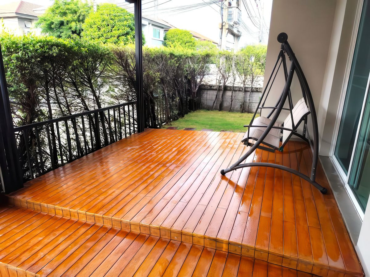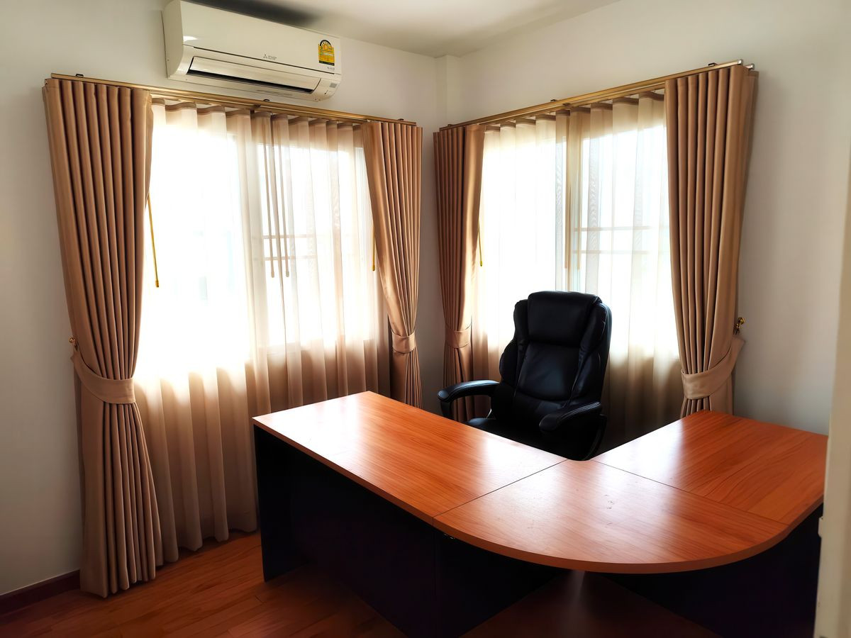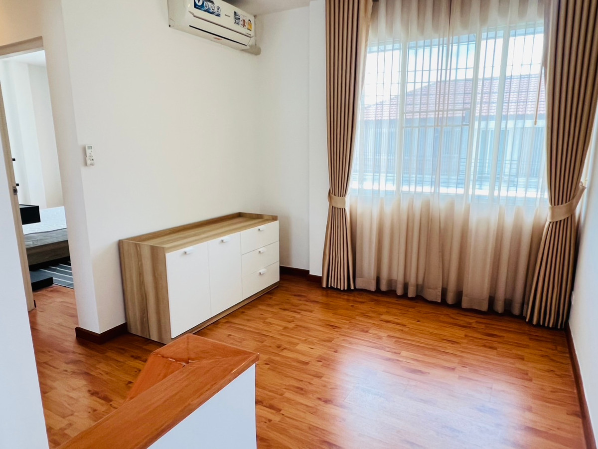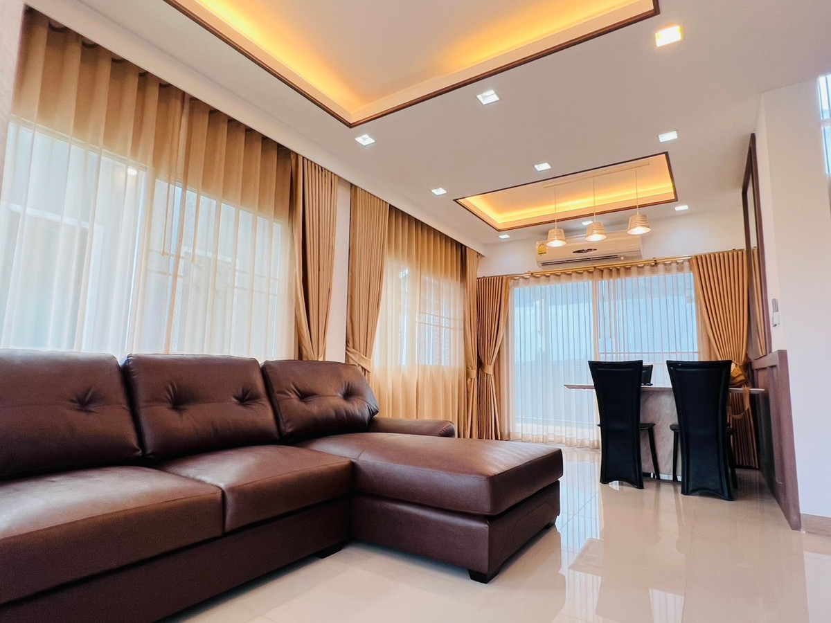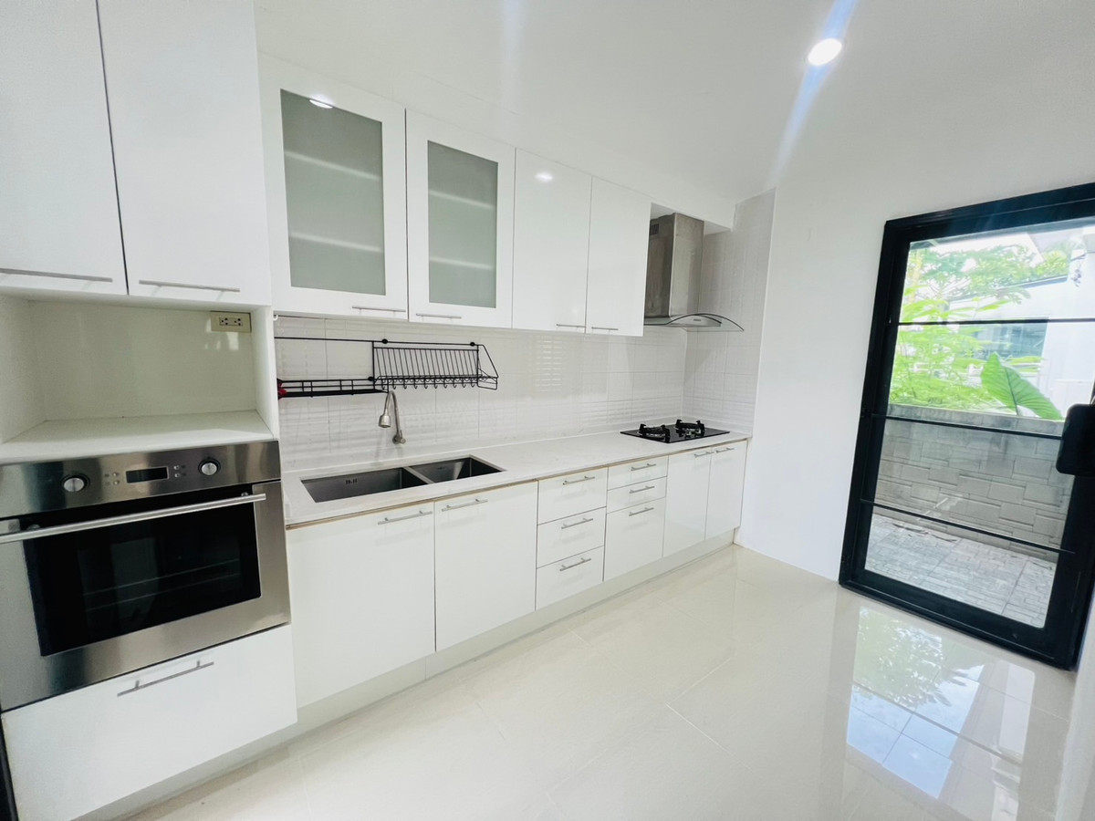 บ้านรีโนเวทใหม่ พร้อมเฟอร์นิเจอร์SB ใหม่ + ผ้าม่านใหม่ทั้งหลัง! พร้อมเข้าอยู่ 📍 เนื้อที่ 55 ตร.วา 📐 พื้นที่ใช้สอย 212 ตร.ม. 🛏️ 4 ห้องนอน | 🚿 4 ห้องน้ำ | 🧹 ห้องแม่บ้านพร้อมห้องน้ำในตัว 🚗 จอดรถได้ในบ้าน 2 คัน + หน้าบ้าน 2 คัน พร้อม ประตูรีโมทไฟฟ้า - บ้านหันหน้าทางทิศเหนือ เย็นสบาย ไม่ร้อนแดด - สวนสวย + ลานเฉลียงปูพื้นไม้คุณภาพ เป็นมุมพักผ่อน หรือมุมมุมกาแฟ - SB Furniture บิวท์อินใหม่ทั้งหลัง - ผ้าม่านเกรดดี ติดตั้งใหม่ทั้งหลัง - มีห้องทำงานทั้งชั้นล่างและชั้นบน - ครัวไทย + ครัวฝรั่ง บิวท์อินใหม่จัดเต็ม พร้อมเตาอบ เตาไฟฟ้า เครื่องดูดควันแบบยุโรป เกรดพรีเมี่ยม - แอร์ 5 เครื่อง - เครื่องใช้ไฟฟ้าครบ: ตู้เย็น, TV, เครื่องทำน้ำอุ่น 💡 จุดเด่นบ้านนี้ ✔️ Renovate ใหม่หมดทั้งหลังใช้วัสดุคุณภาพ โครงสร้างแข็งแรง ลงเข็มลึกรอบบ้าน พื้นไม่ทรุด ✔️ ใช้วัสดุคุณภาพ ทั้งเฟอร์นิเจอร์และเครื่องใช้ไฟฟ้า สภาพใหม่กริ๊บ ✔️ พื้นที่จอดรถ พื้นที่หลังบ้านปูหินอย่างดี ปูทางเดินรอบบ้าน ใช้งานได้ทุกมุม ✔️ บ้านหลังมุม เป็นส่วนตัว ด้านข้างบ้านเป็นสนามหญ้าของหมู่บ้าน 🏘️ สิ่งอำนวยความสะดวกในหมู่บ้าน – คลับเฮาส์ + Co-working space – ห้องเด็กเล็ก, สระว่ายน้ำ, ฟิตเนส – พื้นที่ส่วนกลางร่มรื่น สนามเด็กเล่น – กล้องวงจรปิด + รปภ. 24 ชม. – ระบบเข้าออกด้วยการสแกนทะเบียนรถ – เพื่อนบ้านน่ารัก สิ่งแวดล้อมดี เงียบสงบ สนใจนัดชมบ้าน : Contact number ทัก Line ID : Natty4289