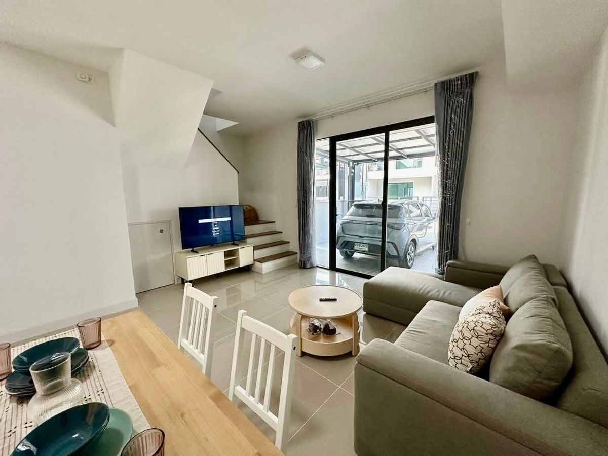 Pleno Sukhumvit–Bangna 2 (FOR RENT) Ref.no : M738 ✨ Townhome ready to move in, Bangna location, near Mega Bangna, convenient travel ✨ Fully decorated house. Perfect function Complete with electrical appliances You can move in immediately. Suitable for families or people working in the Bangna-Sukhumvit zone House details Land 18 sq m Usable area 106 sq m 3 bedrooms | 2 bathrooms Parking for 2 cars Install Digital Door Lock Add roof to the front and back of the house Ready to move in Furniture & electrical appliances Built-in kitchen With induction cooker and range hood 4 air conditioners Refrigerator, microwave, washing machine TV 2 water heaters Project facilities Swimming pool | Fitness | Common garden | 24 hour security system Location & Transportation Near Mega Bangna / IKEA Bangna Connected to Bangna-Trad Road and Kanchanaphisek Ring Road Convenient travel to Suvarnabhumi Airport 💰 Rent 33,000 baht/month (2 months deposit + 1 month in advance) 📞 Interested in making an appointment to see / request additional information Ref.no : M738 Tel : Contact number (Mild) Line@ : @mfirst Add Line : https://lin.ee/SaaVHhA