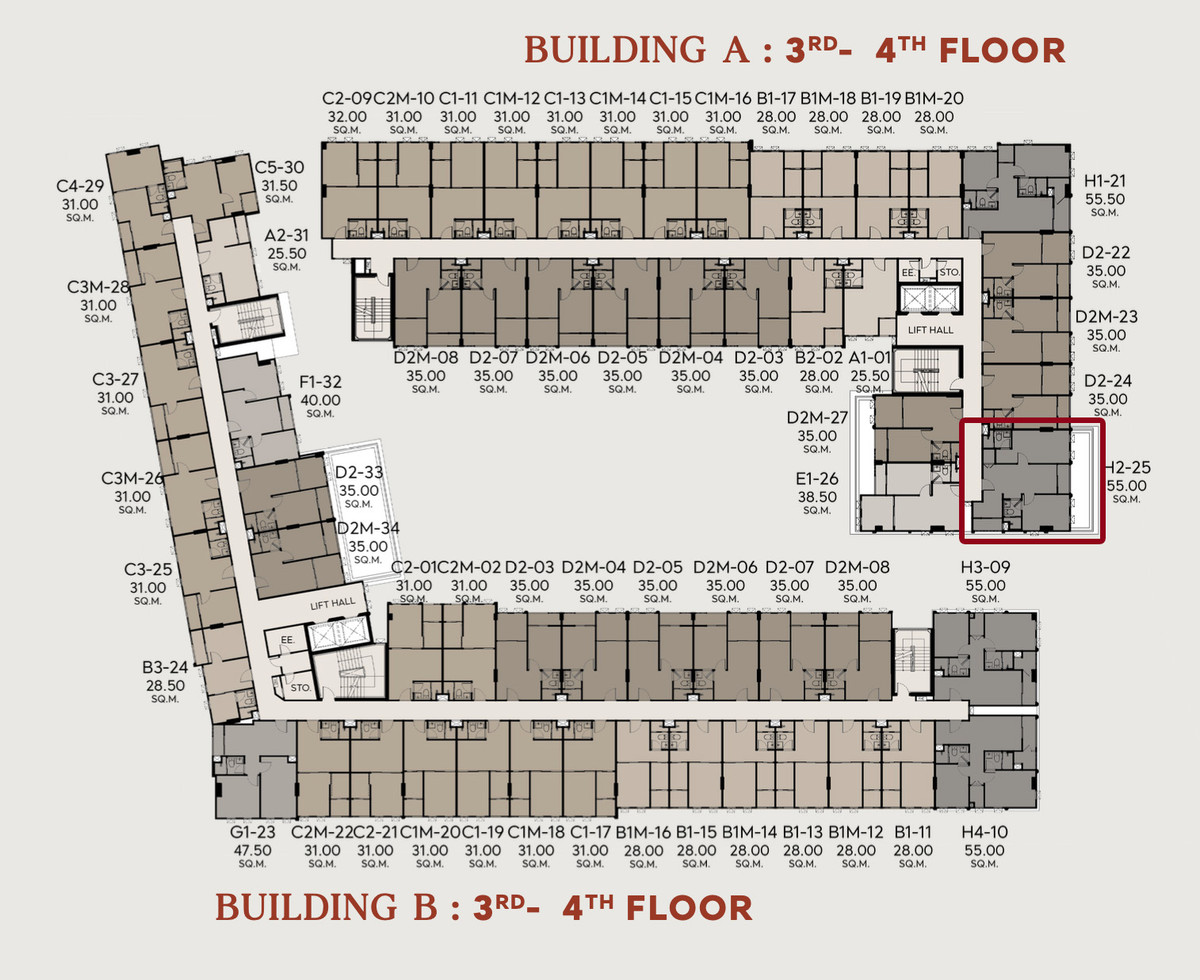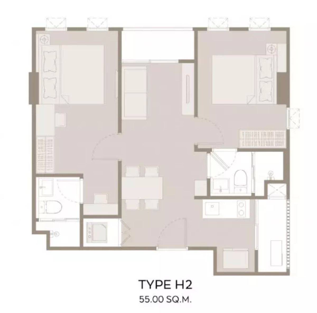 AP Aspire Itsaraphap Station วิววัดอรุณ ห้องใหญ่ห้องมุม | 55 ตรม. | 2 ห้องนอน, 2 ห้องน้ำ, 2 ระเบียง เลขสวย