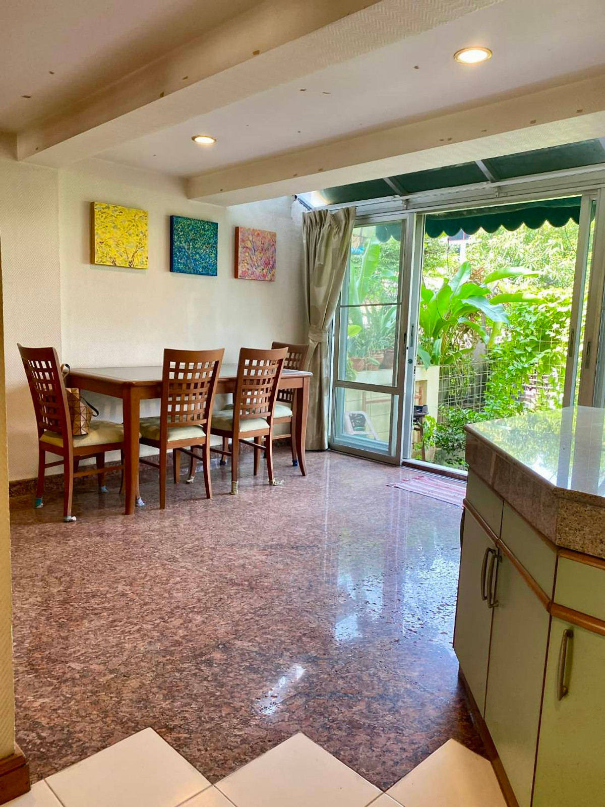 For sale/rent, very cheap!! 4-story townhome, Ban Suan Rim Khlong Bang Mot Village. Built-in teak wood throughout the house, canal view, close to the mall, expressway , convenient travel, many routes in and out, easy to find things to eat, close to the market, 7-Eleven, shops, many restaurants. 4-story townhome Baan Suan Rim Khlong Bang Mot Project - 3 bedrooms, 4 bathrooms - Area 23.91 square wah - Usable area approximately 260 sq m - Parking for 2 cars inside the house and 1 car outside Buy today and get one free!! Free!! 5 air conditioners free!! Built-in kitchen + teak dining table, 6 seats Free!! Teak bed size 6 feet free!! Built-in wood throughout the house: wardrobe, storage cabinets ***Project highlights - Environment*** + Project road width 6 meters + There is a security system. Guards patrolling 24 hrs. + Atmosphere of the garden house In front of the house is a garden and fish pond + swimming pool. The project is only a 2 minute walk to . Location: Phutthabucha Road, Bang Mot Subdistrict, Chom Thong District, Bangkok 10150 . Coordinates: https://maps.app.goo.gl/C5ZubCRWQ6m4puwu8 Nearby important places • Central Plaza, HomePro, Big C, Lotus within 15 minutes • School: Rung Arun, Suankularb Thonburi Royce Royal • University: King Mongkuts University of Technology Thonburi • Hospital: Bang Pakok 9 Hospital, Bangmod Hospital, Nakhon Thon Hospital Travel • The house is 100 meters from the front of the project • Entry-exit can be via Rama 2 Road, Pracha Uthit Expressway or Kanchanaphisek Ring Road • Future Road "Chor 1" and Road "Ng 21" which connects Phetkasem to Suksawat. and the southern outer ring road of Bangkok Selling very cheap, only 4.50 million baht Rent only 20,000 baht per month Ask for more information/make an appointment to see the house Contact number (Khun Tuk) Add Line from your phone number.