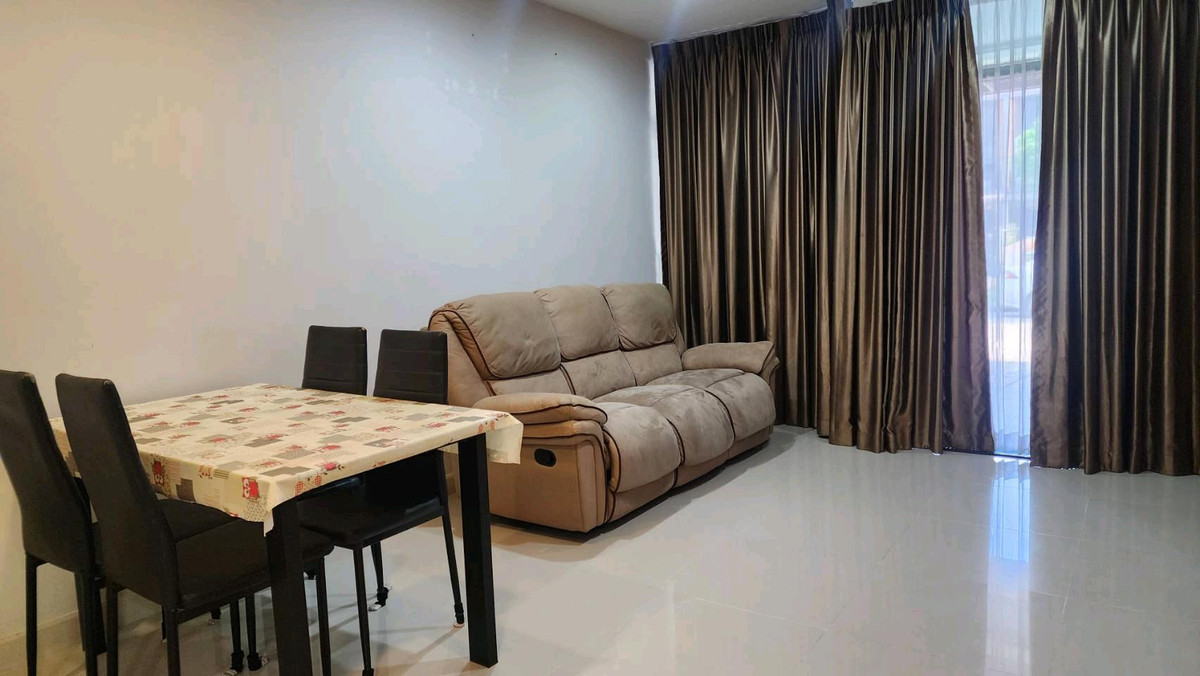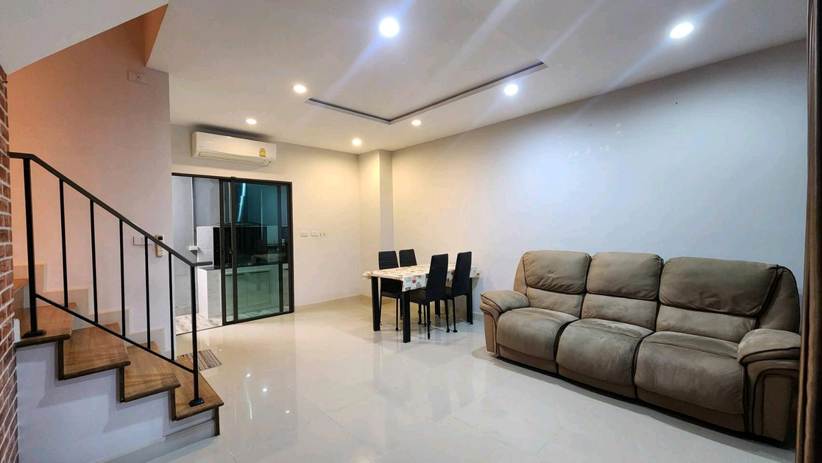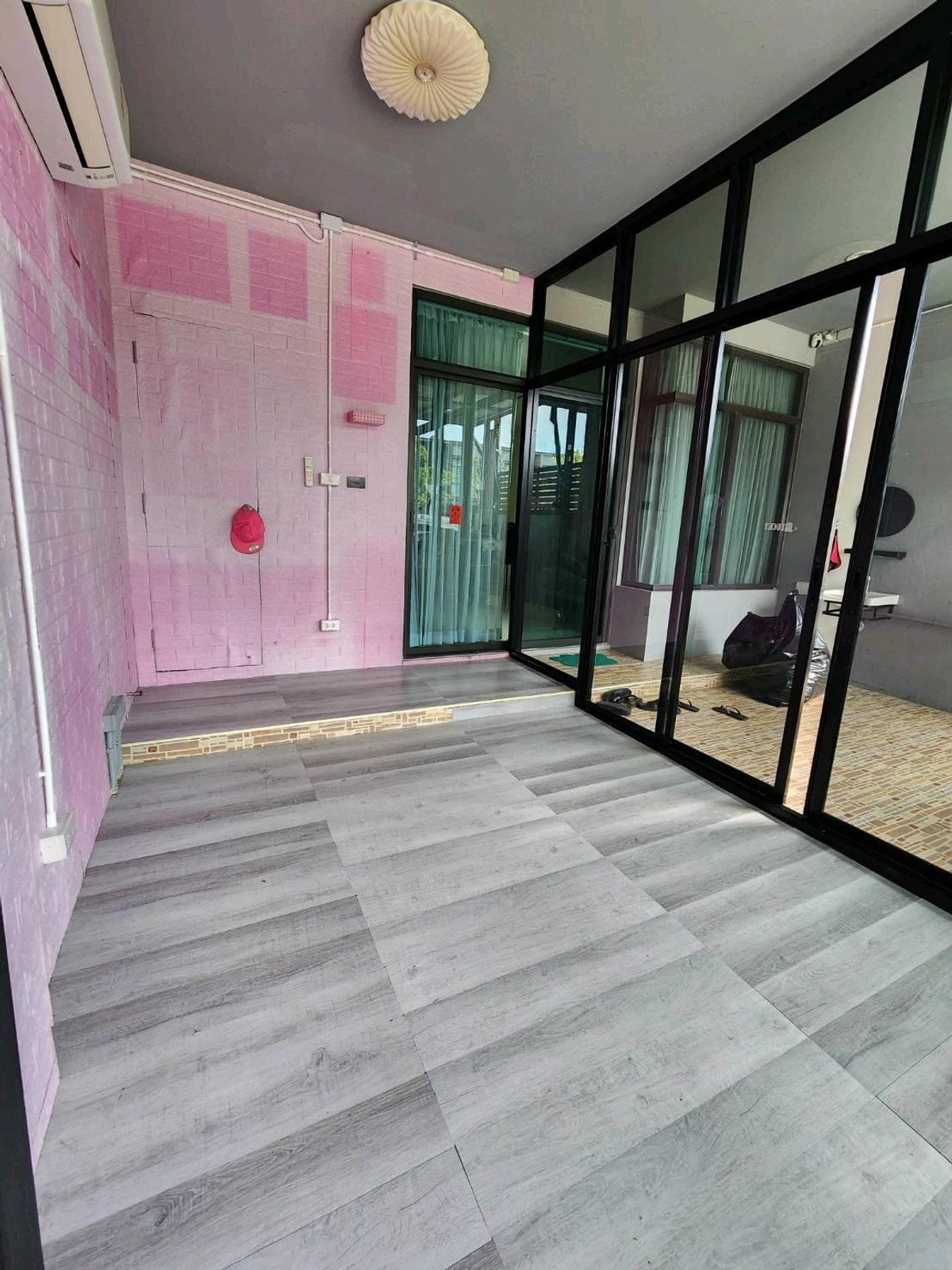 Urgent sale‼️Townhome Verve Rama 9 VERVE RAMA 9, addition, ready to move in. Near the expressway, convenient travel. New Krungthep Kreetha Road Very good security • 2-story townhome, area 18.60 sq m, area 117 sq m • Size: 2 bedrooms, 2 bathrooms, 1 office room, 1 storage room, parking for 1 car • With a large storage room in front of the house • Front of the house faces north, adding a parking roof Furniture • 4 air conditioners • Water pump, spare water tank, curtains 'Common area and security • With complete amenities, 24-hour security • CCTV, fitness, garden, parking, swimming pool. • Common fee 1,900/month Expenses on transfer day, half each Selling price 4.2 million baht (price negotiable) ***The house is in front of the garden