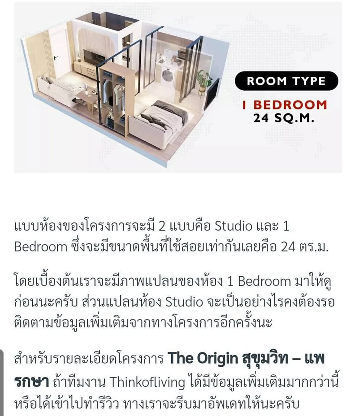 ✨ Condo down payment for sale: The Origin Sukhumvit - Phraeksa, 29th floor, special price 1.25 million baht, ready to transfer Dec. 25 Sale down payment: 222,800 baht Free gift: Reserve money for decorated furniture worth 5,000 baht (Wyde interior) Total transfer with project: 1,067,200 baht ➡️ Total just 1,290,000 baht Currently the project sells starting at 1.49 million baht (floors 10–20) and all floor positions above 20 and above are sold out 🏙 Room information 29th floor, very good view , North direction, not hot weather, comfortable living Private room location, not next to the elevator, not next to the garbage room. And not next to the fire escape 🌟 Highlights of the project and location Monthly installments are more economical than renting Near BTS Phraeksa, Robinson, and Makro (about 600 meters) Convenient transportation, there is a shuttle bus to pick up and drop off Near Bang Pu - Phraeksa Industrial Estate. and large factories such as DELTA suitable for own residence. Or rent it out to employees in the industrial zone 📞 If interested, contact Mr. Wat Tel: Contact number Line: wat4253