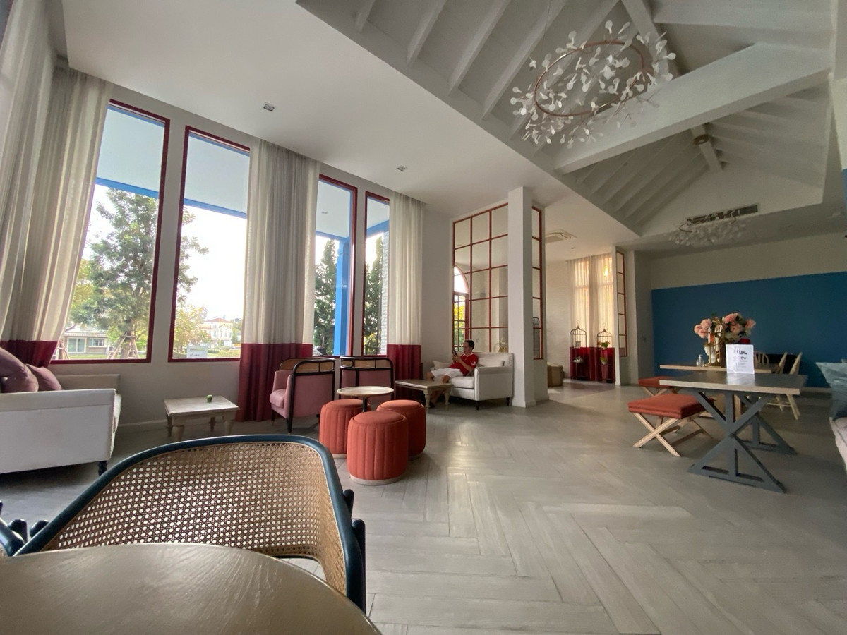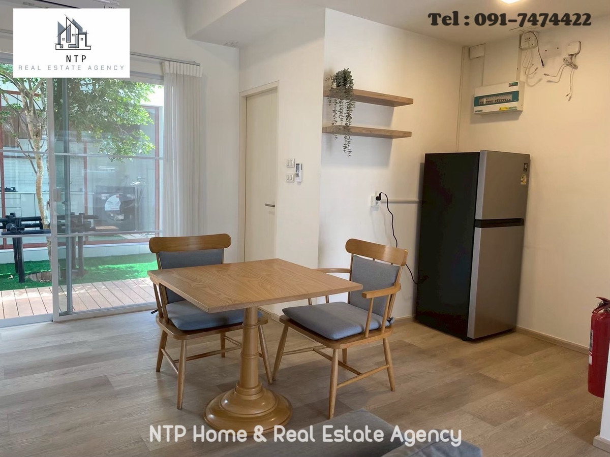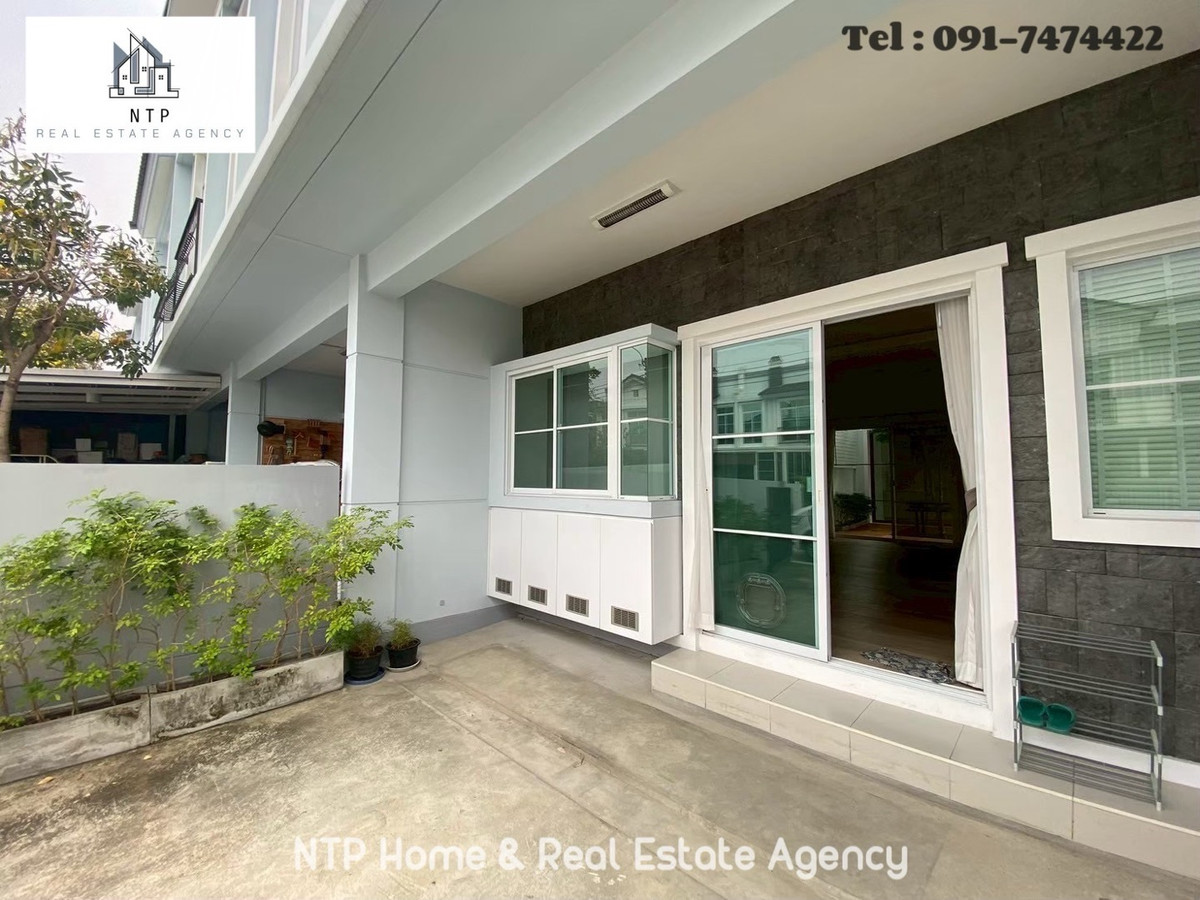For rent: 2-story townhome #Indy Bangna Ram2. The back of the house is wide and comes with a seating area to admire nature. And a modern glass kitchen, best location, opposite Mega Bangna 🐶🐱pet friendly