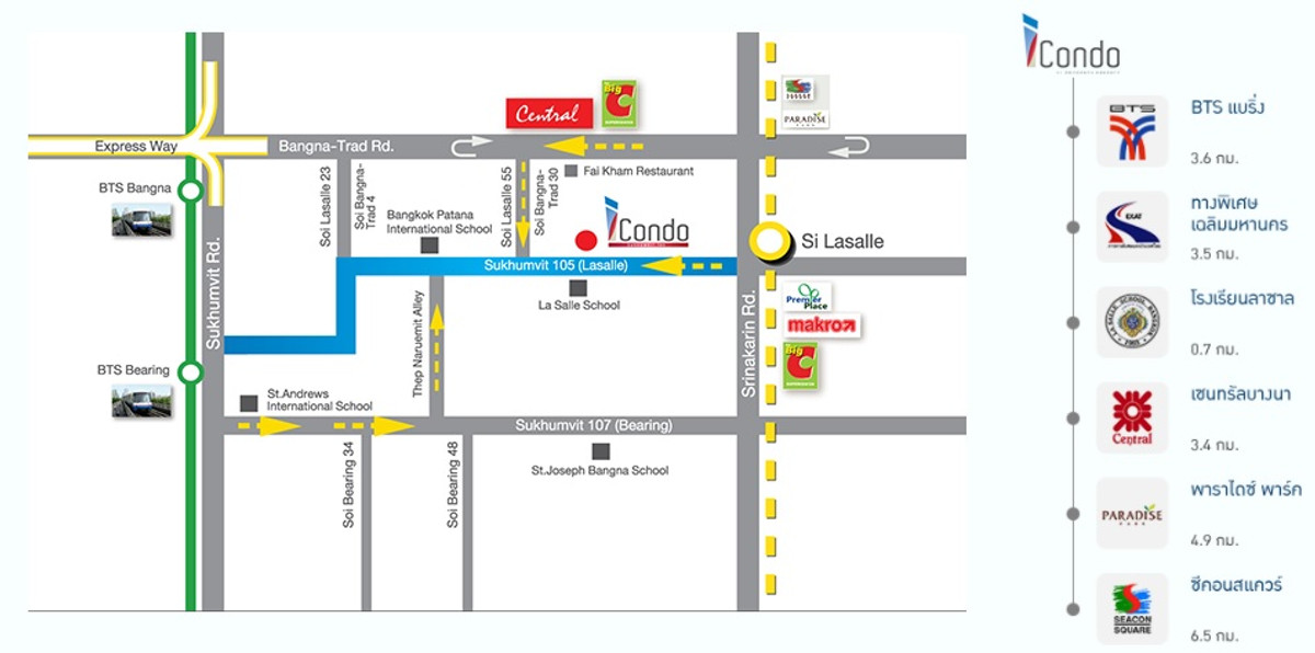 Rare Item! Condo for rent, 2 bedrooms, Sukhumvit 105 📍 I Condo Sukhumvit 105 Lifestyle center near the popular Community Mall, Lasalle's Avenue and Dadfa (rooftop), which has restaurants, cafes and supermarkets. You don't have to travel far, it's great! ---------------------------------- Rental price 14,000 baht / month Selling price 2,950,000 baht ---------------------------------- 🌟 Details • 2 bedrooms (big + small room) • 2 bathrooms • 1 living room • 2 parking spaces • Size 47 sq m. • Building A, 1st floor • Furniture: 5-foot bed in the main bedroom and 3.5-foot bed in the small bedroom + kitchen set with sink, sofa, wardrobe, dressing table + stool, cabinet + shelves, dining table + chairs • Electrical appliances: 3 air conditioners, water heaters, 2 bathrooms, 9.5 cubic feet refrigerator, large 42 inch flat screen TV, washing machine (front loading) and electric stove. • 🔥 Welcome to Agent 🔥 ---------------------------------- 🌼 Facilities • Swimming pool • Fitness • Playground and leisure park. • Passenger elevator • CCTV and Access Card system • Right to park private cars indoors. • Public vans • 24-hour security guards. • Various shops such as convenience stores, laundromats, restaurants. ---------------------------------- 🏢Nearby places • BTS Bearing • Samitivej Lasalle Hospital 800 m. • BITEC Bangna 2.5 km. • Central Bangna 1 km. • Paradise Srinakarin 3.7 km. • Mega Bangna 4.1 km. • Lasalle School 600 m. • Bangkok Patana International School 800 m. • Duang Ploy Market 900 m. • Lasalle Fresh Market 1 km. ---------------------------------- 🎁 Rental conditions • 2 months deposit • 1 month advance rent ---------------------------------- If interested in making an appointment to visit, contact 📞Tel: Contact number (Khun Tee, condo owner) Line: teecee4g