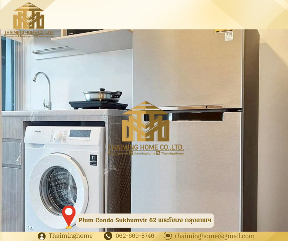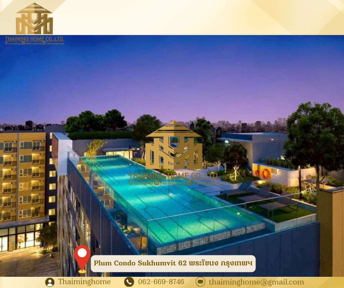 Condo for rent: Plum Condo Sukhumvit 62, 24.35 sq.m., Phra Khanong, Bangkok (Property Code TC06-1126) Details: - Size: 24.35 sq.m. - Floor: 8 - 1 Bedroom, 1 Bathroom - Fully furnished with amenities including fitness center, swimming pool, sauna, 24-hour security, and CCTV. - Furniture: Full Furnished Nearby Places: - BTS Bang Chak - Ruamjai Rak Hospital - Kluaynamthai Hospital - Sukhumvit Hospital - Anglo Singapore International School Rental Conditions: - 1-year contract - 2-month security deposit - 1-month advance payment - Rent: 15,000 THB/month ✅ Foreign tenants: - 1-year contract - 3-month security deposit - 1-month advance payment - Rent: 18,000 THB/month (monthly cleaning service included) ------------------------ บริษัท ไทยหมิง โฮม จำกัด Thaiming Home Co.,Ltd. 泰明房园 房产公司 ----------------------- Contact ติดต่อ : Contact number Contact : Contact number คุณหมิง(中文) Line ID: thaiminghome Line ID: @thaiminghome https://lin.ee/PkkHwYv Wechat : ThaimingHome E-mail : Contact email -----------------------