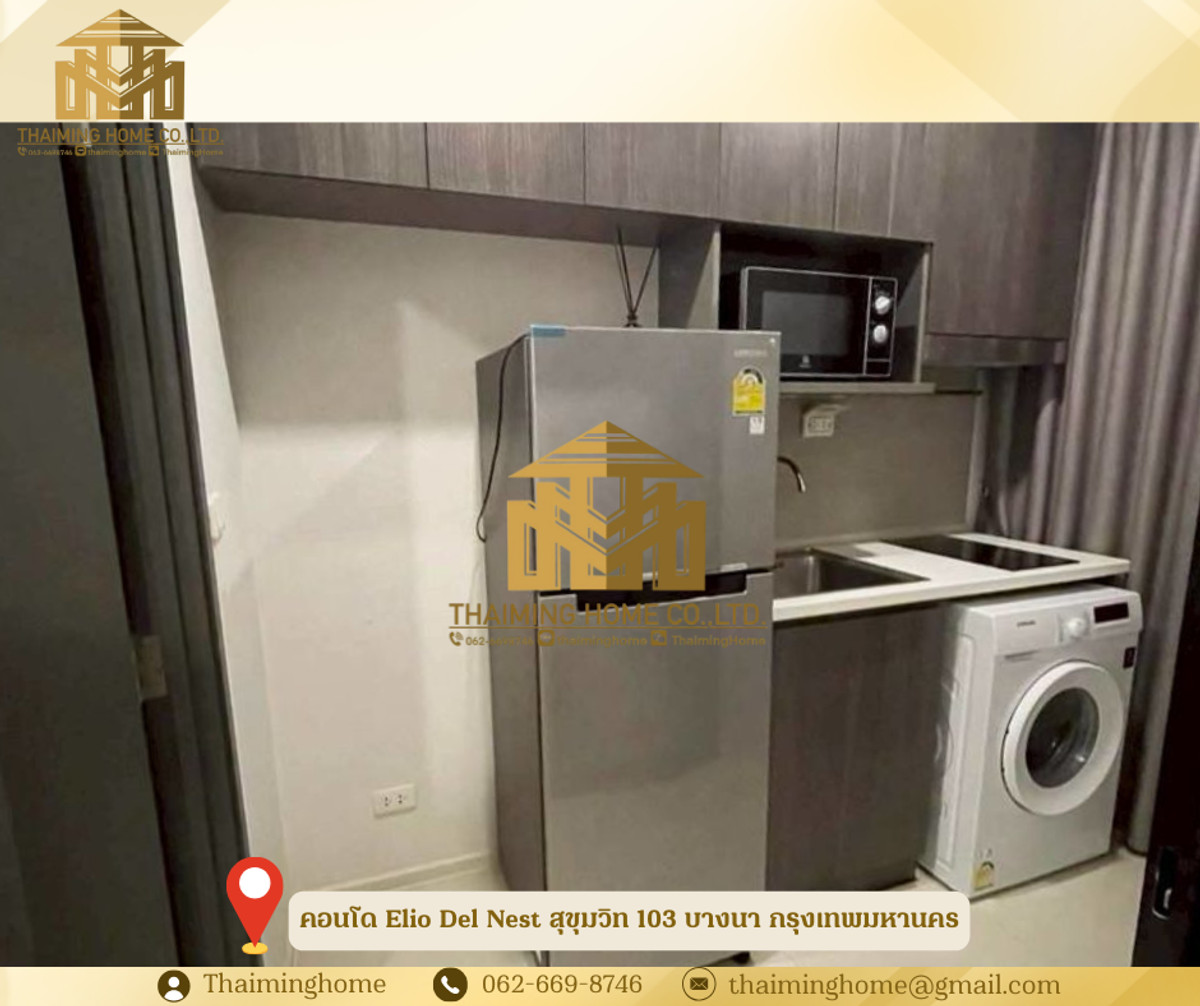 Condo for rent, Elio Del Nest Sukhumvit 103, 27 sq.m., Bangna, Bangkok (Property Code TC06-1426) Details - Size: 27 sq.m. - Floor 10, Building E - 1 Bedroom, 1 Bathroom - Furniture: Fully Furnished - Amenities: Swimming Pool, Fitness Center, Sauna, Co-Working Space, Key Card Access Nearby Places - BTS Udom Suk Station - Central Bangna - Mega Bangna - Seacon Square Srinakarin - Kluaynamthai Hospital - BITEC Bangna Rental Conditions - Minimum 1-year contract - 2 months security deposit - 1 month advance rent - 14,000 THB/month -------------------- บริษัท ไทยหมิง โฮม จำกัด Thaiming Home Co.,Ltd. 泰明房园 房产公司 ----------------------- Contact ติดต่อ : Contact number Contact : Contact number คุณหมิง(中文) Line ID: thaiminghome Line ID: @thaiminghome https://lin.ee/PkkHwYv Wechat : ThaimingHome E-mail : Contact email -----------------------