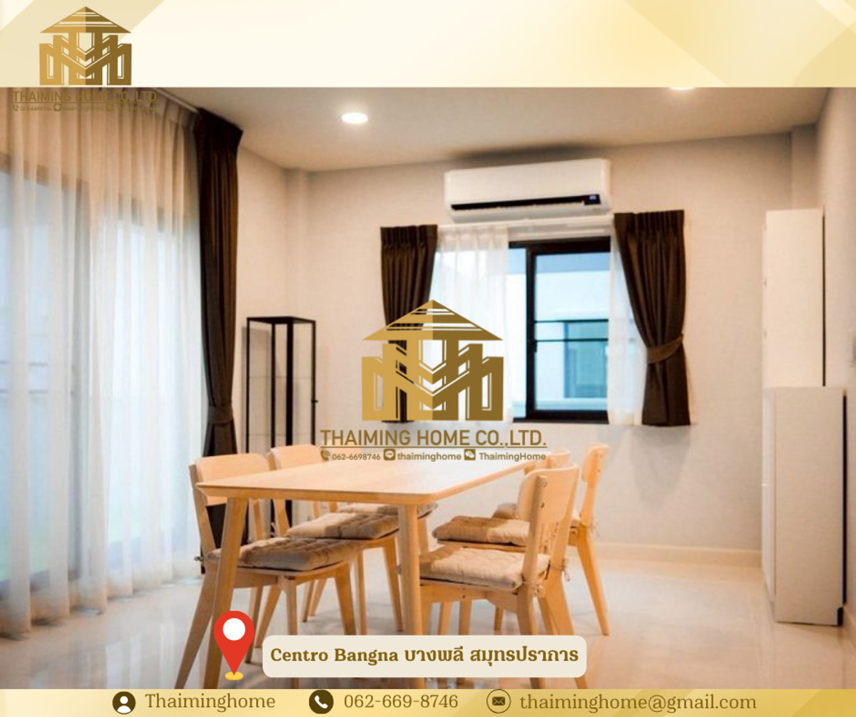 House for rent, Centro Bangna, 164 sq.m., Bang Phli, Samut Prakan (Property Code TH06-1026) Details - Area: 164 sq.m. - 3 Bedrooms, 3 Bathrooms - 2 Parking Spaces - Amenities: Swimming Pool, Fitness Center, 24-Hour Security - Furniture: Fully Furnished Nearby Places - Mega Bangna - Central Bangna - Suvarnabhumi Airport - Thai Nakarin Hospital - Prince Suvarnabhumi Hospital - Thai-Singapore International School Rental Conditions - 1-Year Contract - 2 Months Security Deposit - 1 Month Advance Payment - Rental Price: 75,000 THB/month *** In the case of having a pet, the security deposit is 3 months' rent. --------------------- บริษัท ไทยหมิง โฮม จำกัด Thaiming Home Co.,Ltd. 泰明房园 房产公司 ----------------------- Contact ติดต่อ : Contact number Contact : Contact number คุณหมิง(中文) Line ID: thaiminghome Line ID: @thaiminghome https://lin.ee/PkkHwYv Wechat : ThaimingHome E-mail : Contact email -----------------------