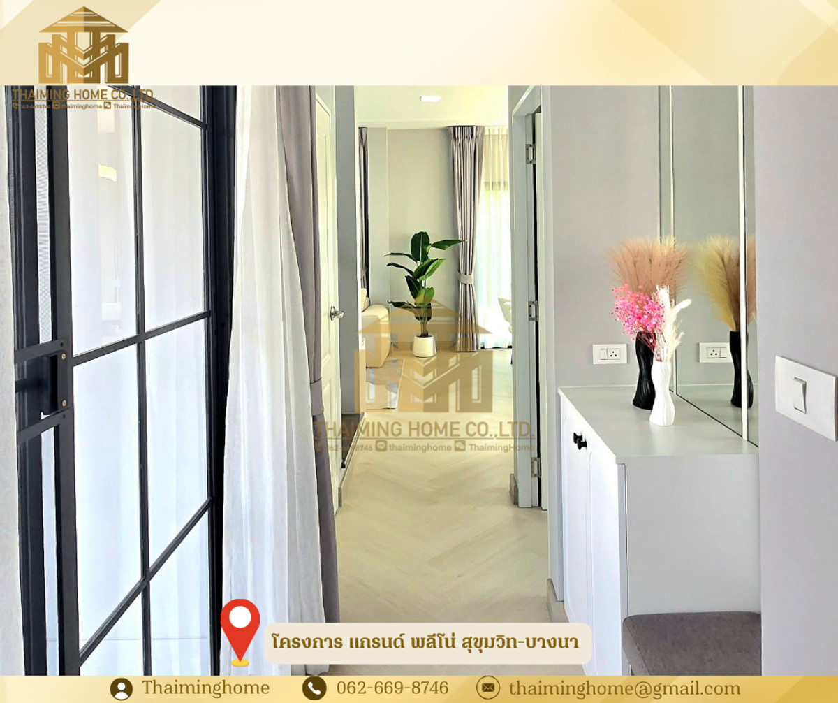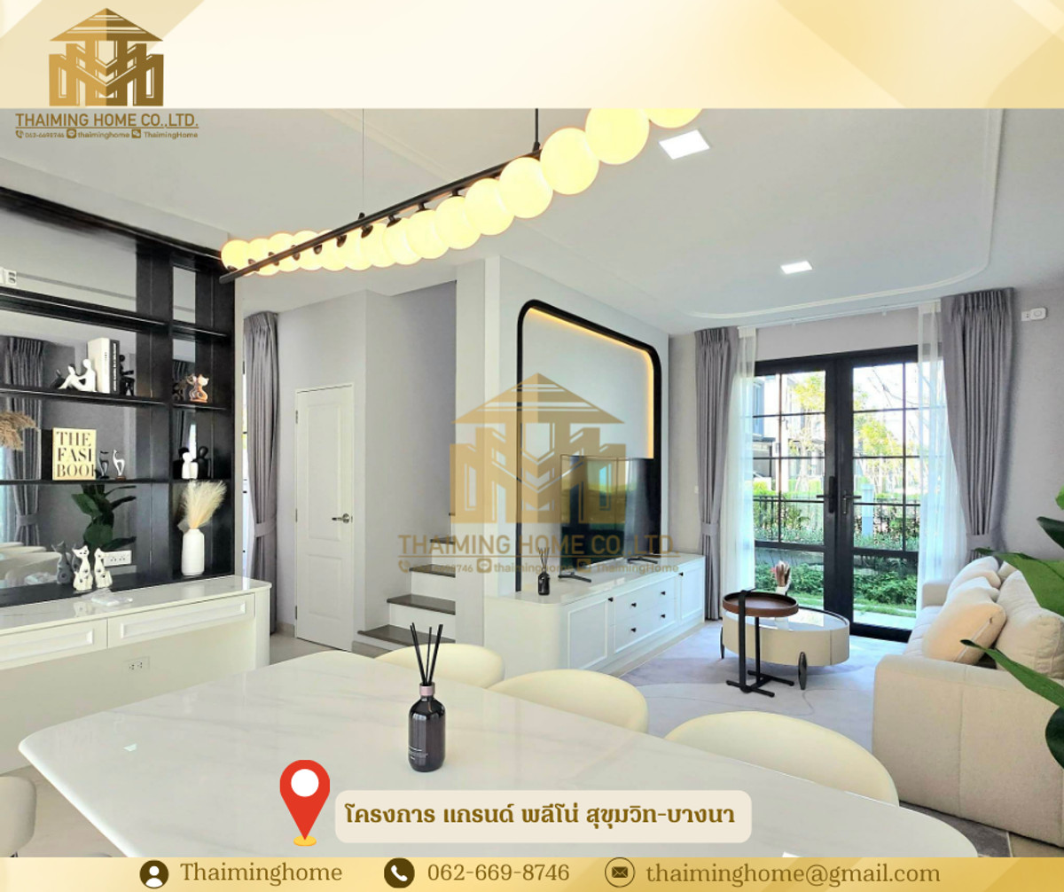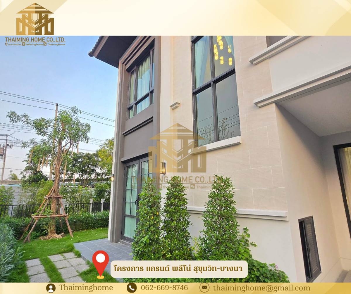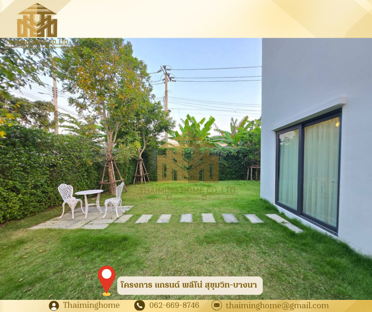 For Rent/Sale: Detached House Grande Pleno Sukhumvit-Bangna, 72.20 sq.wah, Bang Phli, Samut Prakan (Property Code TH06-1126) Details: - Land size 72.20 sq.wah, usable area 161 sq.m. - 4 Bedrooms, 4 Bathrooms - 1 Living Room - 1 Dining Room - 2 Parking Spaces - Furniture: Full Furnished - Amenities: Clubhouse, Public Park, Swimming Pool, Fitness Center, Meeting Room, 24-Hour Security Nearby Places: - Mega Bangna - Market Village Suvarnabhumi - Suvarnabhumi Airport - Concordian International School - Prince Suvarnabhumi Hospital Rental Conditions: - Minimum 1-year contract - 2-month security deposit - 1-month advance rent - Rent: 85,000 THB/month ✅ Sale Price: 12,200,000 THB ------------------- บริษัท ไทยหมิง โฮม จำกัด Thaiming Home Co.,Ltd. 泰明房园 房产公司 ----------------------- Contact ติดต่อ : Contact number Contact : Contact number คุณหมิง(中文) Line ID: thaiminghome Line ID: @thaiminghome https://lin.ee/PkkHwYv Wechat : ThaimingHome E-mail : Contact email -----------------------