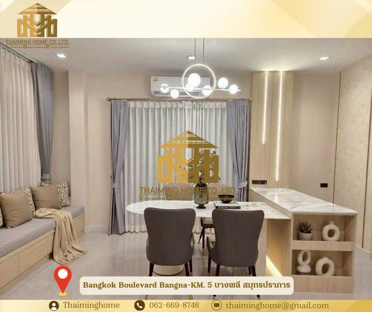For Rent/Sale: Detached house in Bangna, Bangkok Boulevard Bangna-KM. 5, 53.2 sq.wah, Bang Phli, Samut Prakan (Property Code TH06-1226) Details: - Land area 53.2 sq.wah, usable area 237 sq.m - 4 bedrooms, 4 bathrooms - 2 parking spaces - Furniture: Full Furnished - Amenities: Clubhouse, public park, swimming pool, fitness center, 24-hour security Nearby Places: - Prachakom International School (International Community School Bangkok) - Raffles International School - Bangkok Pattana School - Thai-Singapore International School - Chic Republic Bangna - Bangkok Mall - BITEC Bangna - Tesco Lotus Bangna - Mega Bangna Rental Conditions - 1-year contract - 2-month security deposit - 1-month advance rent - Rent: 120,000 THB/month ✅ Sale Price: 18,500,000 THB ------------------- บริษัท ไทยหมิง โฮม จำกัด Thaiming Home Co.,Ltd. 泰明房园 房产公司 ----------------------- Contact ติดต่อ : Contact number Contact : Contact number คุณหมิง(中文) Line ID: thaiminghome Line ID: @thaiminghome https://lin.ee/PkkHwYv Wechat : ThaimingHome E-mail : Contact email -----------------------