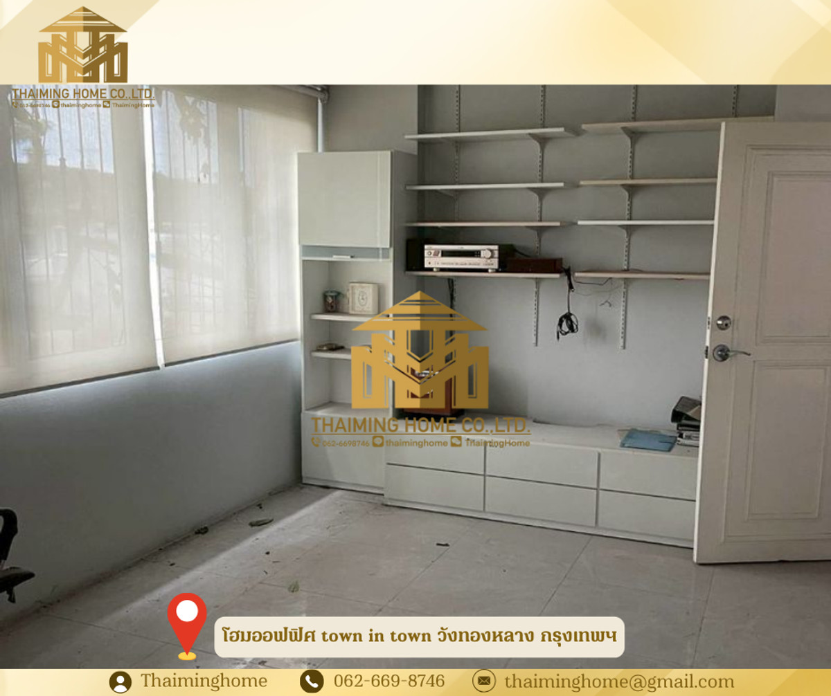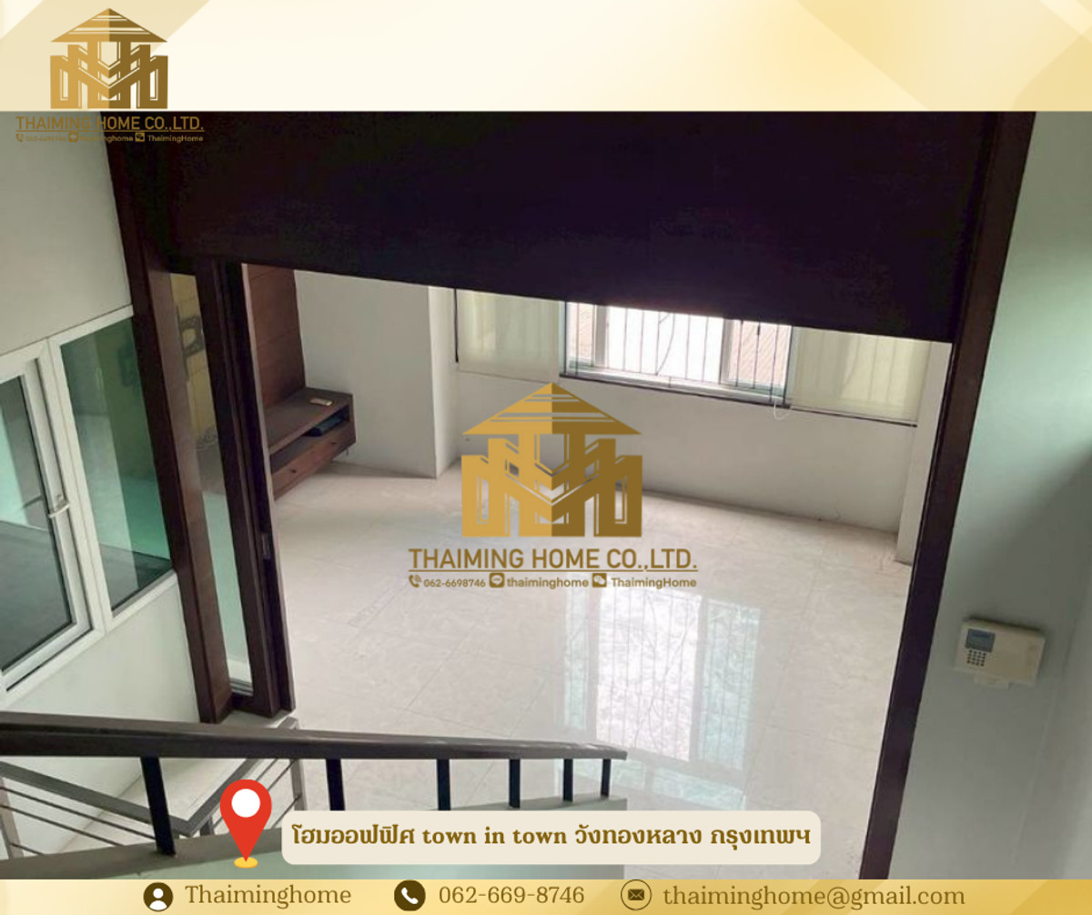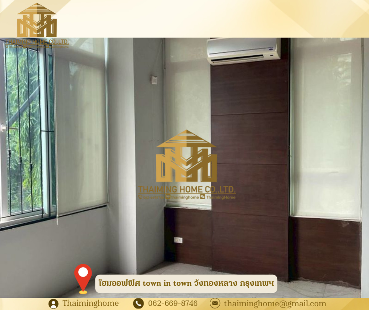 Home office for rent in Town in Town, 146 sq.wah, Wang Thonglang, Bangkok (Property Code TT06-0826) Details - Interior area 800 sq.m. - 2 bedrooms, 4 bathrooms - 1 multipurpose room - 3 offices - 1 kitchen - Parking for 20 cars - Built-in furniture in all rooms - Suitable for office and residential use Nearby locations - Big C Ladprao - The Scene Town in Town - Golden Place Rama 9 - Ladprao Hospital - Medpanya Hospital - MRT Ladprao Rental conditions - 3-year lease agreement - 3 months security deposit - 1 month advance payment - Rental price 300 baht/sq.m. ---------------------- บริษัท ไทยหมิง โฮม จำกัด Thaiming Home Co.,Ltd. 泰明房园 房产公司 ----------------------- Contact ติดต่อ : Contact number Contact : Contact number คุณหมิง(中文) Line ID: thaiminghome Line ID: @thaiminghome https://lin.ee/PkkHwYv Wechat : ThaimingHome E-mail : Contact email -----------------------
