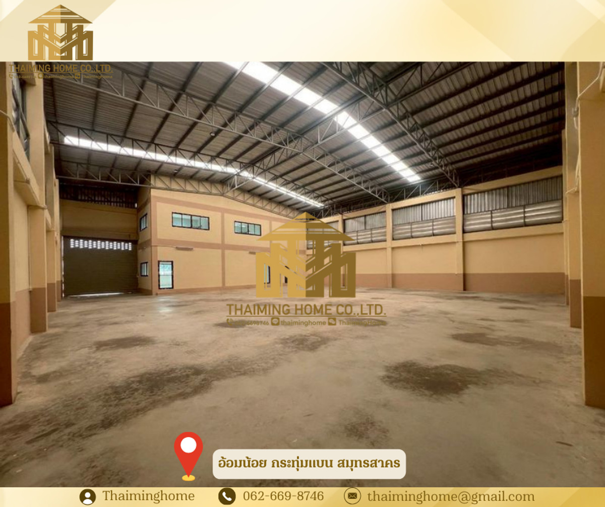 Warehouse for Rent/Sale in Om Noi, Krathum Baen, Samut Sakhon. Size: 253 sq.wa. (Property Code TW06-1226) Details: - Land area: 253 sq.wa., Usable area: 575 sq.m. - Load capacity: 2 tons/sq.m. - 2-story office building - 3-phase electrical system - Electric roller shutter door - Suitable for warehousing Nearby Locations: - Big C Place Om Yai - Vichaiyavej Hospital Om Noi - Mahachai 2 Hospital Rental Conditions: - 3-year contract - 2-month security deposit - 1-month advance payment - Rent: 65,000 THB/month ✅ Sale Price: 10,500,000 THB ------------------ บริษัท ไทยหมิง โฮม จำกัด Thaiming Home Co.,Ltd. 泰明房园 房产公司 ----------------------- Contact ติดต่อ : Contact number Contact : Contact number คุณหมิง(中文) Line ID: thaiminghome Line ID: @thaiminghome https://lin.ee/PkkHwYv Wechat : ThaimingHome E-mail : Contact email -----------------------