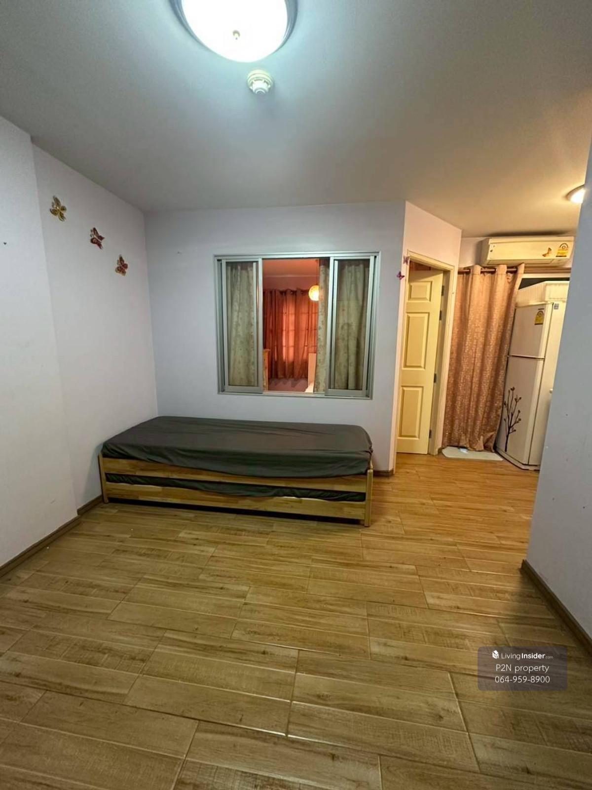LTN371 Condo for rent, Lumpini Condo Town Ramintra-Lak Si, 1st floor, Building E2, city view, 28.8 sq m, 1 bedroom, 1 bathroom, 8,000 THB. Furniture and appliances included: - Bed with mattress - Ward