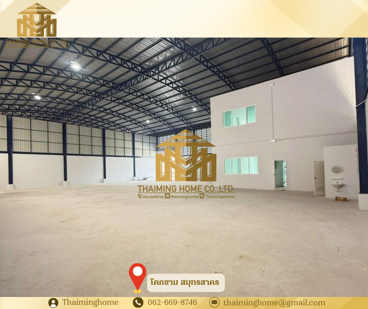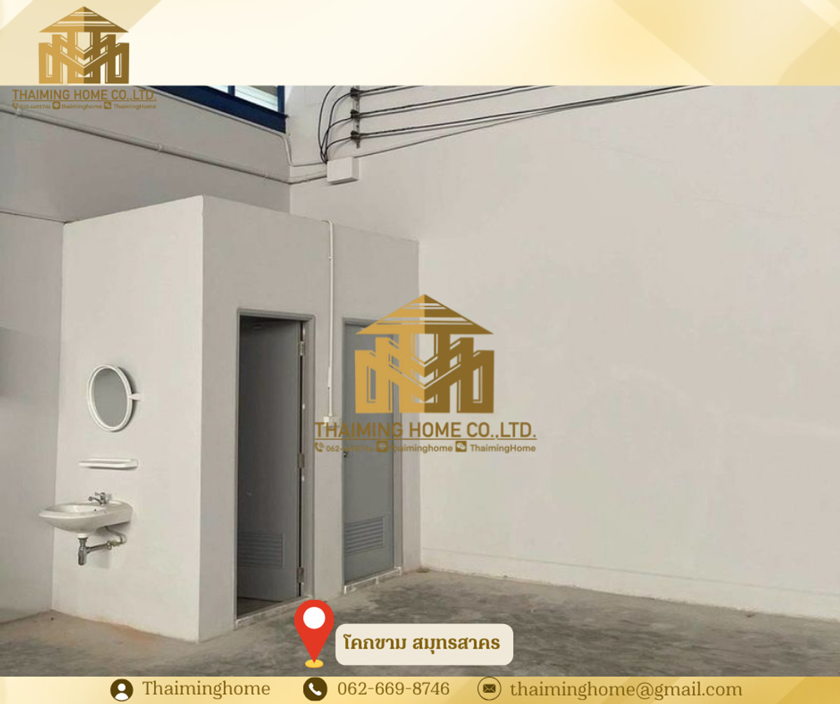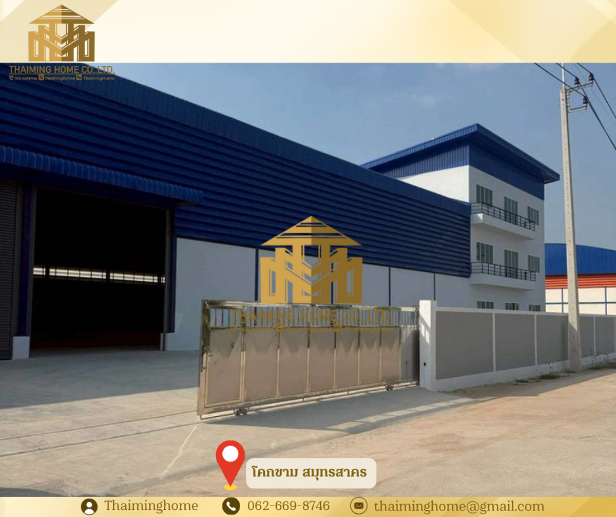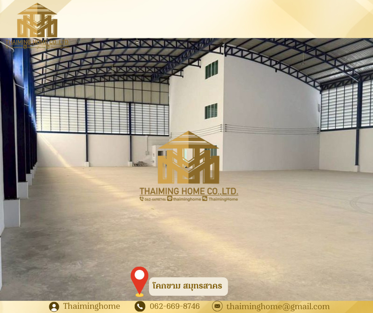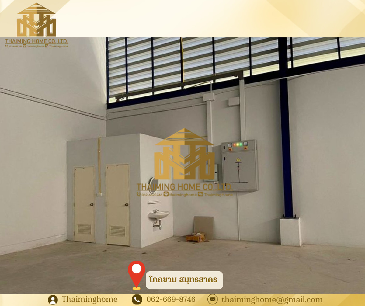 Warehouse/Factory for Rent, 2,500 sq.m., Khok Kham, Samut Sakhon (TW4-1720326) Details: - Large warehouse: 1,100 sq.m. - 3-story office: 498 sq.m. total area - Small warehouse: 710 sq.m. - 2-story office: 228 sq.m. total area - Pink zone area, eligible for factory permit (Rong. Yor.) - Floor load capacity: 3 tons per square meter - 3-phase electricity with 250KVA transformer - Easy access for trailer trucks - Electric warehouse door - 2 restrooms inside the warehouse Nearby Locations: - Ekachai Hospital - Makro Samut Sakhon - Big C Mahachai - Talay Thai Mahachai Market Rental Conditions: - Minimum 3-year contract - 3-month security deposit - 1-month advance payment - Monthly rent: 250,000 THB --------------------------------------- บริษัท ไทยหมิง โฮม จำกัด Thaiming Home Co.,Ltd. 泰明房园 房产公司 ----------------------- Contact ติดต่อ : Contact number Contact : Contact number คุณหมิง(中文) Line ID: thaiminghome Line ID: @thaiminghome https://lin.ee/PkkHwYv Wechat : ThaimingHome E-mail : Contact email -----------------------
