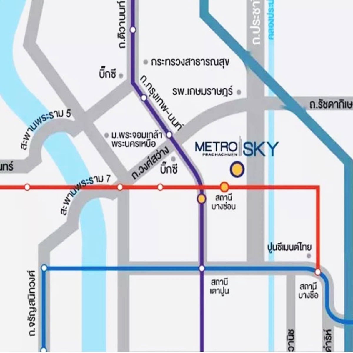 - Convenient travel to Bangkok-Nonthaburi Road, Ratchadaphisek Road, Pracharat Sai 2 Road, Wong Sawang Road, Siam Cement Road. Pracharat Road, Sai 1 and Si Rat Expressway