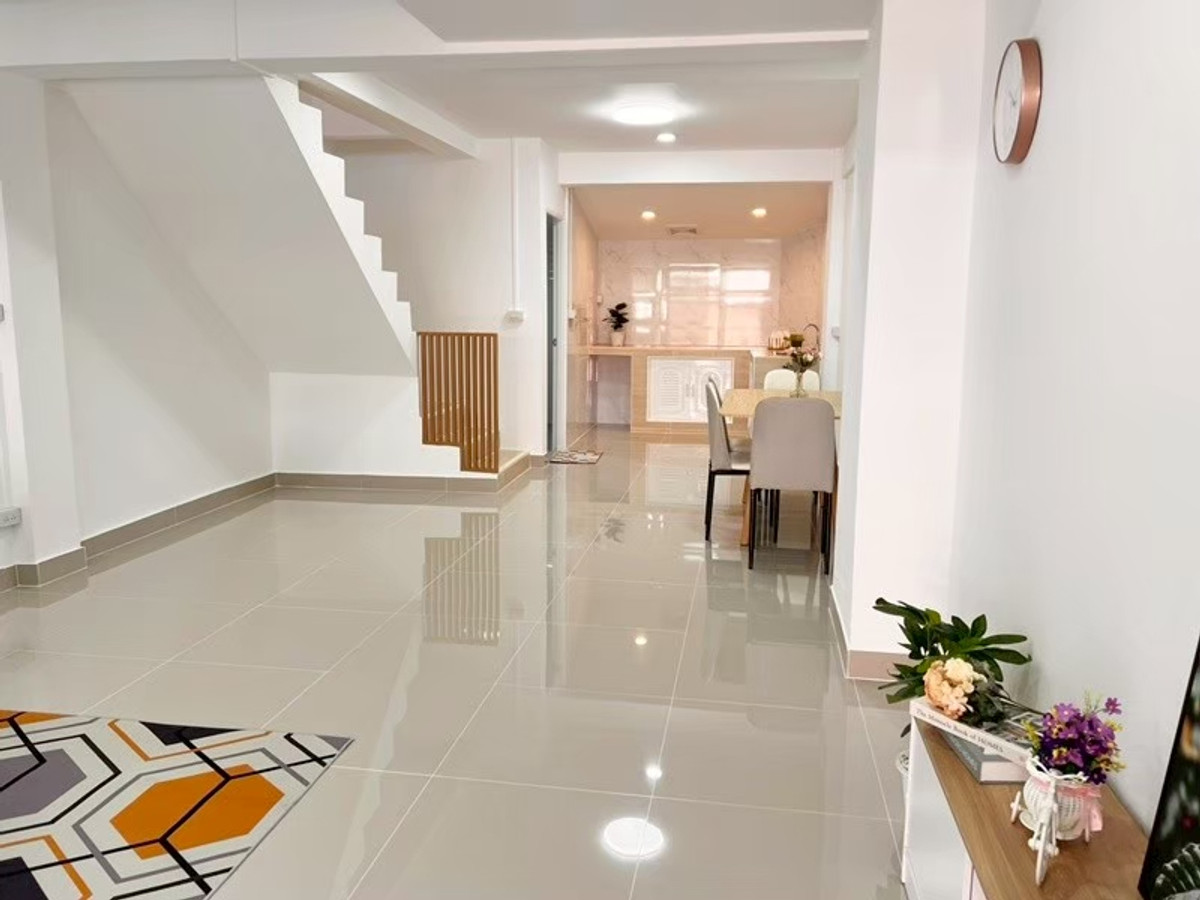 3-story townhouse for sale, Thanaporn Village, Lam Luk Ka 11, location near Nana Charoen Market, area 16 sq m, has 4 bedrooms, 3 bathrooms, newly renovated, price 1,990,000 baht, if interested contact