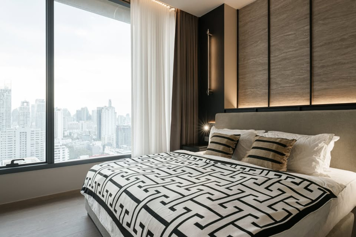 Condo for rent: The Esse Asoke, luxury condo in the heart of Asoke. It gives a feeling of elegance and privacy, complete with a swimming pool, fitness center, living room, and relaxation area.