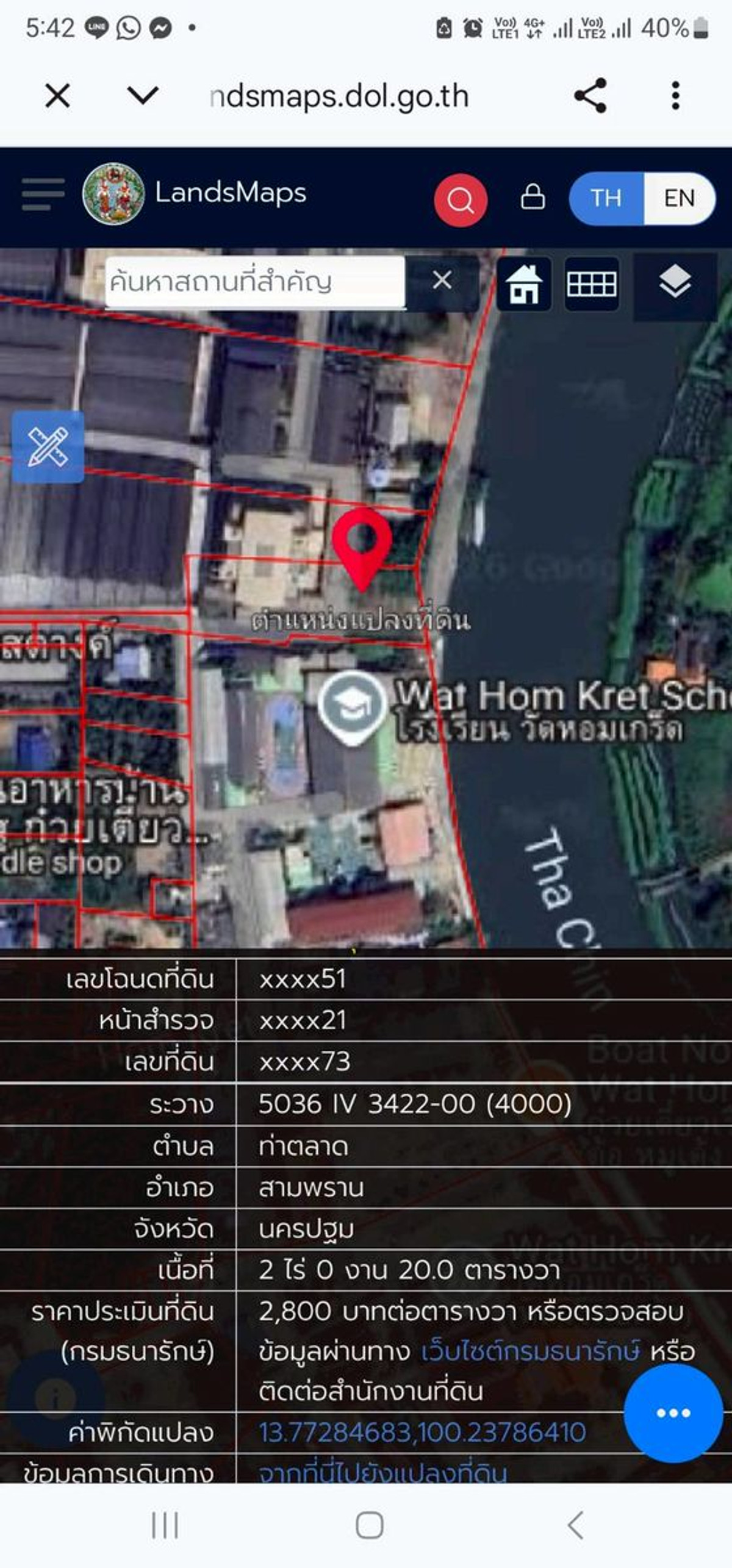 Empty land for sale Tha Chin River Tapete At the end of Krisada Nakhon Village, 27 Marina, Hom Kret, Sam Phran, Nakhon Pathom, good price, very good location. Contact Phuengrati Contact number Location: Hom Kret Subdistrict, Sam Phran District, Nakhon Pathom 73110 Location: https://www.google.com/maps?q=13.77284683,100.23786410 Area size: 2 rai Details Land next to the Tha Chin River. Width approximately 80 meters, beautiful river view, quiet atmosphere , convenient transportation. Near the main road and Phutthamonthon - Sam Phran zone , suitable for - building a vacation home. -Luxury house on the waterfront or cafe/resort Highlights of the land -Natural atmosphere, shady, open river view. There are no buildings blocking the view - the location is under development. Near many premium residential projects Nearby places -Wat Rai Khing -Don Wai Floating Market -Phutthamonthon -Mahidol University Salaya -Central Salaya -Samphran Hospital See more good deals at www.facebook.com/RatioInternationall 4 rai, total price 25 million baht 31,250 baht per square wa Contact to inquire / make an appointment to see the site Khun Phuengrati Line: Contact number Call / WhatsApp: Contact number ...................................................................... Prime Riverside Land for Sale – Tha Chin River An exceptional riverside land opportunity located at the end of Krisadanakorn 27 Marina Village, Hom Kret, Sam Phran, Nakhon Pathom. This peaceful waterfront setting offers beautiful river views and excellent potential for a private residence, boutique resort, or long-term investment. Property Details Land Size: 2 Rai 80 meters of direct river frontage along the Tha Chin River Plus approximately 2 Rai of additional accreted riverside land, bringing the total usable area to about 4 Rai Located in a quiet residential area at the end of the village, ensuring privacy and scenic surroundings This property stands out for its wide river frontage and serene atmosphere—ideal for building a luxury riverside home, weekend retreat, or hospitality project. Price: 25,000,000 THB (Approx. 31,250 THB per sq.wah) For more information or to arrange a viewing: Peung Rati Phone / WhatsApp: Contact number location https://www.google.com/maps?q=13.77284683,100.23786410