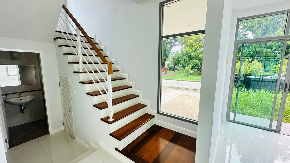Property details Perfect Place Ramkhamhaeng, 2 floors, 3 bedrooms, 3 bathrooms, area 58.1 sq m., calm atmosphere, shady, zone in front of the house is a public park and does not collide with other houses, good location, wide area house, close to the expressway, near the BTS Pink Line and Orange Line, Sammakorn Station. Near Suvarnabhumi Airport Easy travel on every route Surrounded by famous shopping centers, cafes, restaurants and educational institutions. The atmosphere of the project is shady. With a high standard security system Highlights - Corner house. The usable area is perfect and private - The house is ready to move in. Newly renovated -Good location, convenient travel, close to the expressway, BTS, and airport -Suitable for both living and investing -Convenient travel -Near the Orange Line. (Sammakorn Station) and the Pink Line - near Suvarnabhumi Airport - near the expressway Ramkhamhaeng–Bangkok and several main roads -near Lotus Sukhapiban 3, Samitivej Srinakarin Hospital, Inter School, shopping areas-cafes-restaurants Complete Project facilities -Public park, green area, peaceful, shady -Wide project road Shady atmosphere - High standard security system