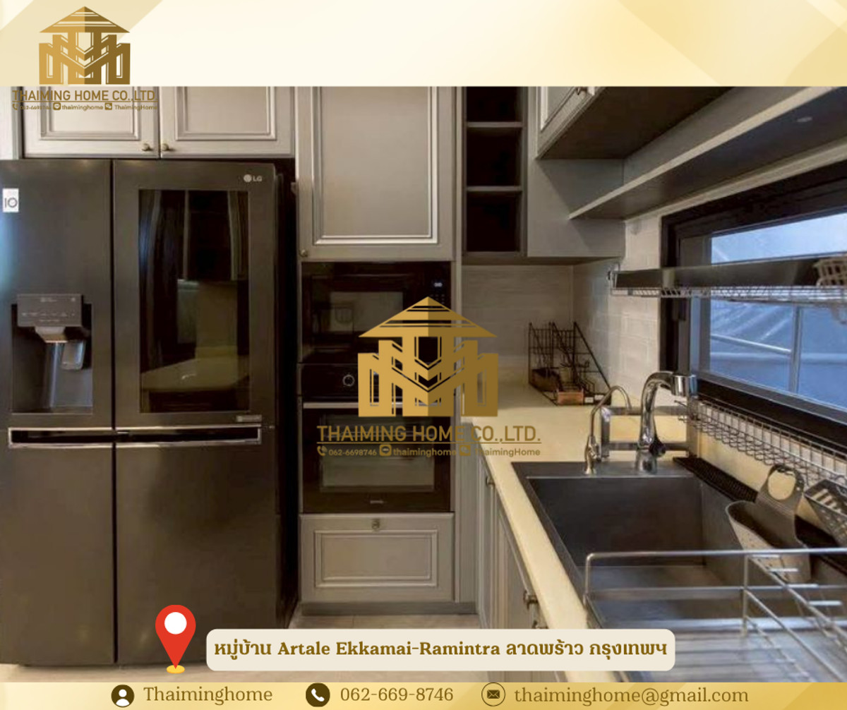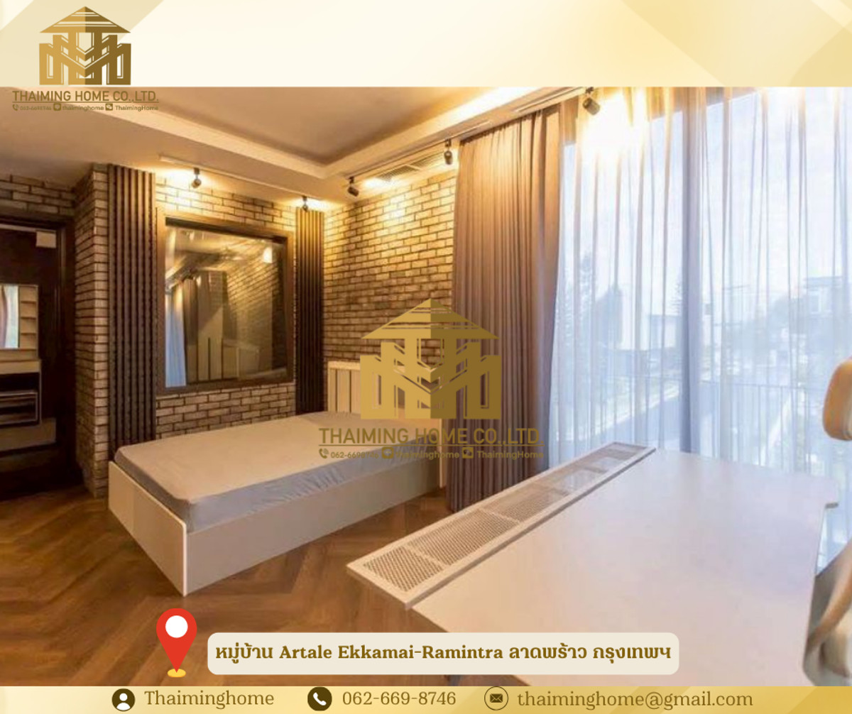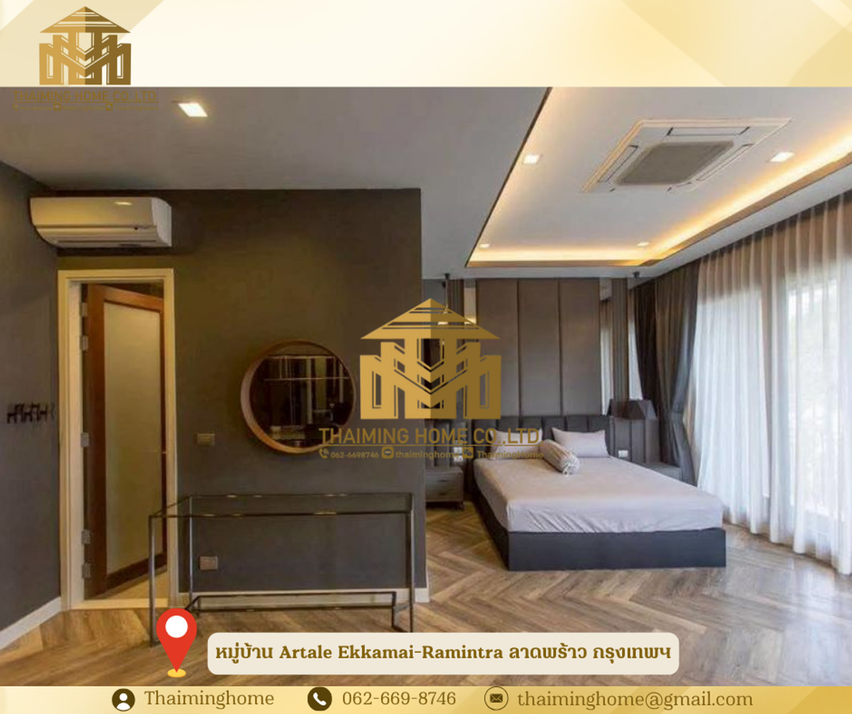 3-Story Detached House for Rent in Artale Ekkamai-Ramintra Village, Ladprao, Bangkok (Property Code TH06-1626) Details: - Land size: 55 sq.wah, Usable area: 390 sq.m. - 3-story detached house - 4 bedrooms, 6 bathrooms - 1 maid's room, 1 maid's bathroom - 1 living room - 1 kitchen - 3 parking spaces - Furniture: Full Furnished - Amenities: Clubhouse, Swimming Pool, Fitness Center, Public Park, 24-hour security - Pet Friendly Nearby Places: - Nawamin City Avenue 1.4km - Huamum Market 4.9km - Waterside Karaoke 1.9km - Ramintra Expressway Night Market 4.2km - Boonthavorn Kaset-Nawamin 2.1km - Central Eastville 4.5km Rental Conditions: - 1-year contract One year lease - 2 months security deposit - 1 month advance payment - Rent: 150,000 THB/month --------------------- บริษัท ไทยหมิง โฮม จำกัด Thaiming Home Co.,Ltd. 泰明房园 房产公司 ----------------------- Contact ติดต่อ : Contact number Contact : Contact number คุณหมิง(中文) Line ID: thaiminghome Line ID: @thaiminghome https://lin.ee/PkkHwYv Wechat : ThaimingHome E-mail : Contact email -----------------------