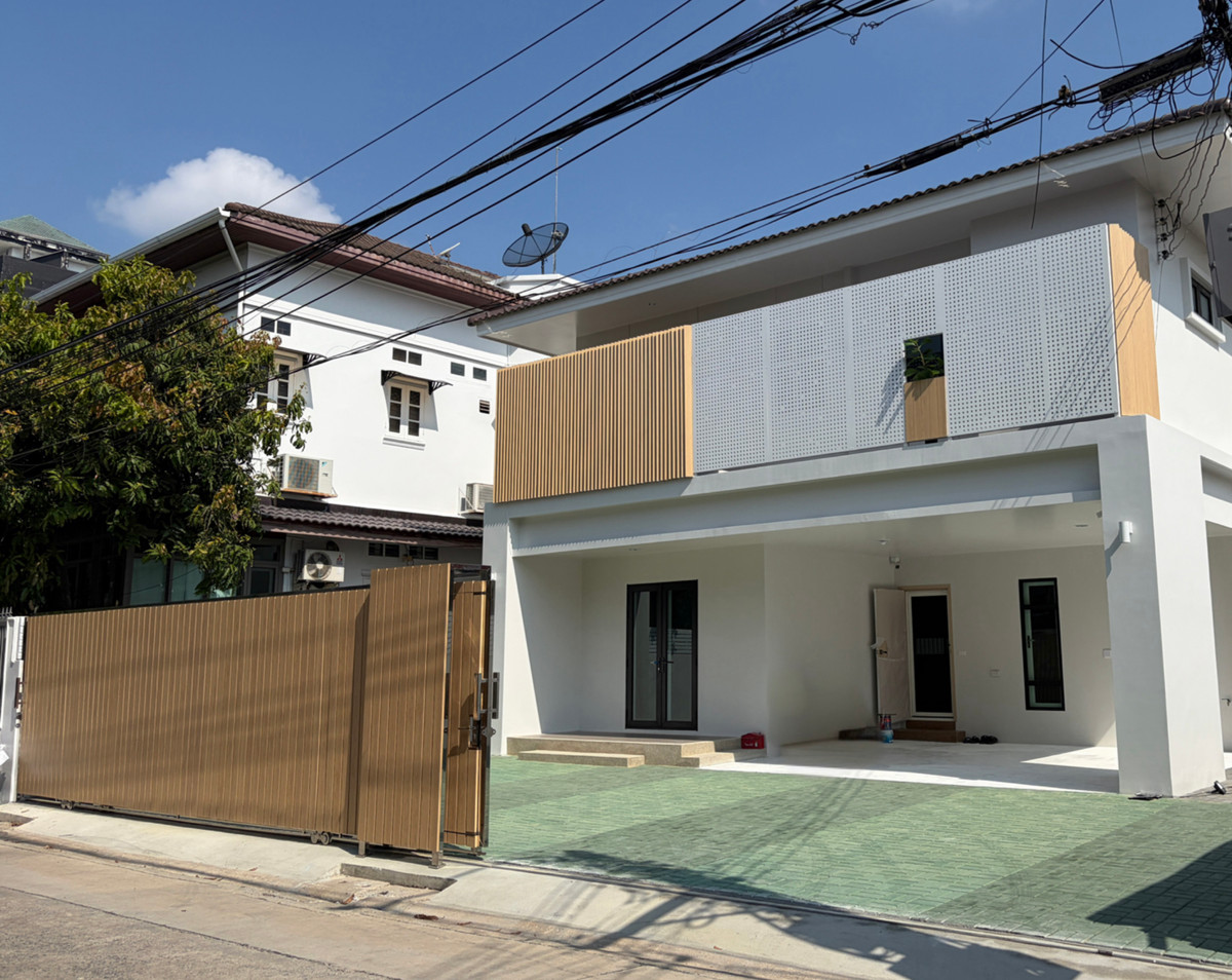 New house (just completed) All new electrical appliances 68 sq m / 250 sq m / 2 floors / 4 bedrooms, 4 bathrooms Rent negotiable. Contact Khun Nun, call Contact number CCTV With security system near 7-11, walk 2 minutes to 150 meters makro golden place big c the street central rama 9 esplanade near Bangkok Hospital, Rama 9 Hospital Phatthana Medical Center near 4 international schools