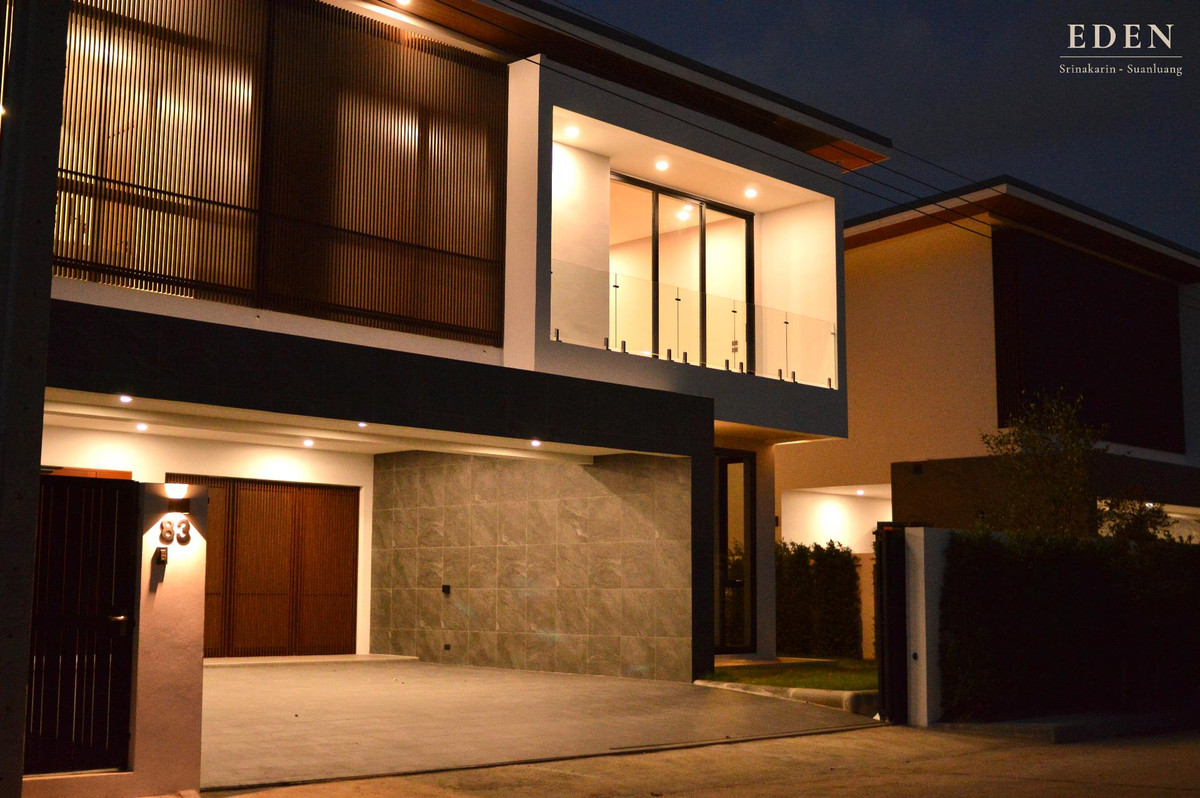 House EDEN Srinakarin - Suan Luang . ● Resort style detached house with a large courtyard garden in the center of the house. ● Location near Suan Luang Rama 9, just 5 minutes. . Experience relaxation close to nature. That comes with functions that meet the needs of modern families. ● 4 bedrooms, 5 bathrooms, 3 parking spaces with indoor and outdoor relaxation zones. ● Designed with a ceiling height of 3 m. to make the house look airy from natural light and breeze. ● Private courtyard, a relaxing corner next to nature in the heart of the house. that connects every area in the house together ● Heal your tired mind every day with green space and large trees around the house. ● All this on an area as wide as 416 sq m and a large plot of land as large as 112 sq m. . Potential location, convenient travel in and out of the city. Close to complete amenities ● Travel to the heart of the CBD, Sukhumvit area, just 15 minutes. ● Near the Kanchanaphisek Expressway, Burapha Withi Expressway, or Motorway. ● Near leading shopping centers Megabangna (10 minutes), Central Bangna (10 minutes), Paradise Park (15 minutes) ● Near famous international schools: Charter International (5 minutes), International Community School (ICS) (15 minutes) and Raffles American International (15 minutes). . Chaloem Phrakiat Rama 9, Soi 62, Dokmai Subdistrict, Prawet District, Bangkok Contact Contact number Chow Eden