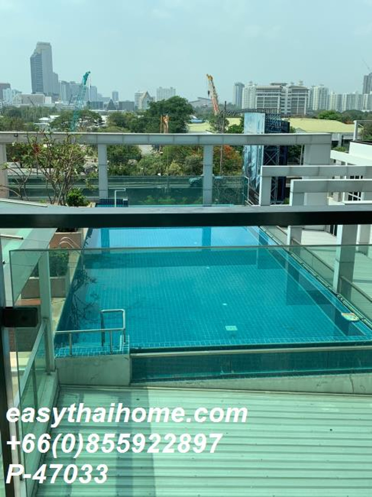 P-47033 Pool View 1 Bed @ T.C. Green! 5 mins to MRT Phra Ram 9! 14,000 THB | Line Id: @easythaihome | Contact number P-47033 1-Bedroom 1-Bathroom Condo for Rent with Pool View at T.C. Green! Ready to