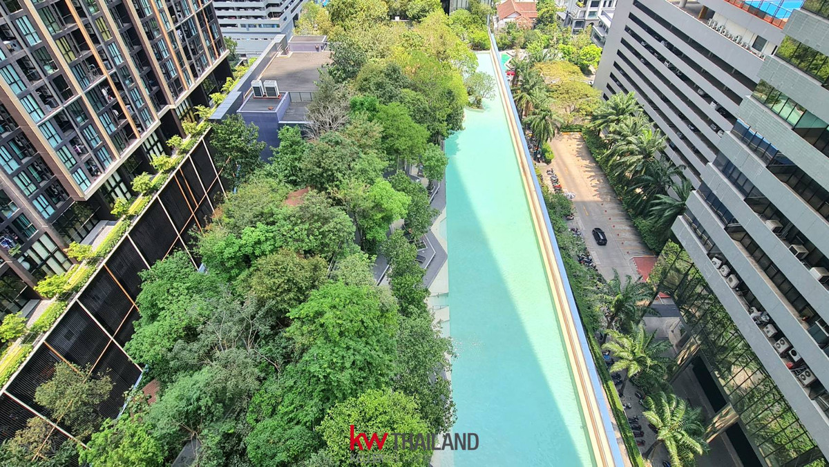 💰Rent reduced to only 30,000 baht/month only‼️ ✅ Building A, 15th floor ✅ 1 bedroom, 1 bathroom, size 43.27 sq m. ✅ North, swimming pool view. Cool and comfortable all year ✅ Furniture and electrical