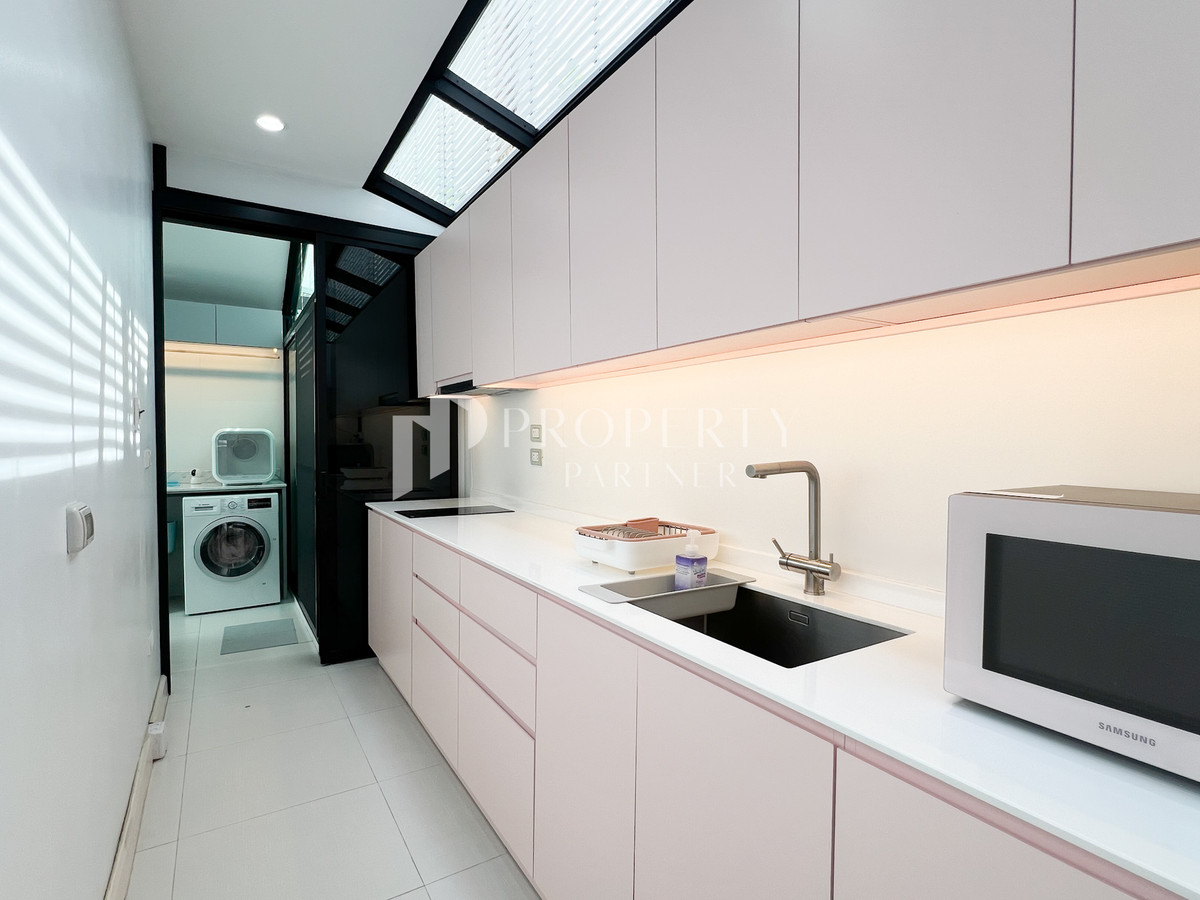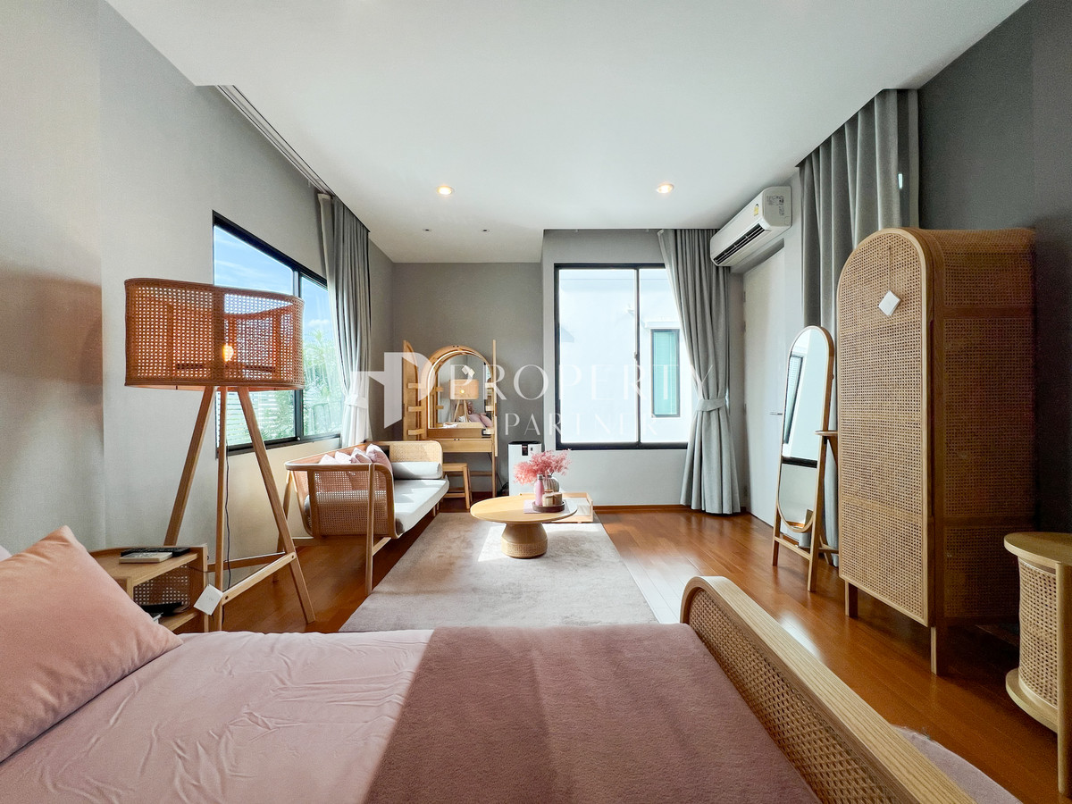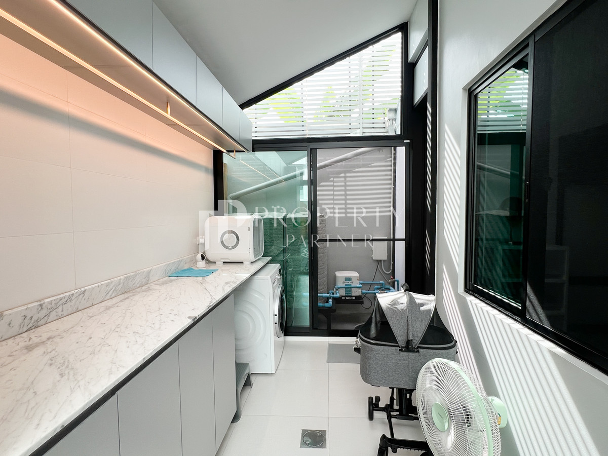 🏡 Nirvana Beyond Srinakarin (Nirvana Beyond Srinakarin) 3-story luxury detached house with built-ins throughout, worth over 8 million baht, luxurious design, complete functions, large living space. Ready to move in Details of the house 🍃 Modern style detached house, 3 floors 🍃 Land size 52.8 square wah 🍃 Usable area 440 square meters 🍃 4 bedrooms | 4 bathrooms 🍃 Maids room with bathroom 🍃 Parking for 3 cars 🍃 Built-in throughout the house, worth more than 8,000,000 Baht Home Features ✨ Premium grade furniture With oak wood imported from abroad ✨ Soft Close hinges and cabinets, Blum brand from Austria ✨ European kitchen and Thai kitchen separated ✨ Indoor washing and drying area Appliances & Systems ✨ Complete set of electrical appliances – electric stove / range hood / oven / microwave / dishwasher / Bosch washing machine with dryer / refrigerator ✨ 10 air conditioners, separate use zones ✨ Digital Door Lock throughout the house ✨ Anti-theft system ✨ CCTV cameras inside and outside the house ✨ CCTV WiFi system No Server ✨ Hafele electric door ✨ Bose speakers built into the ceiling in the living room. Master bathroom and Outdoor zone Location Highlight 📍 Srinakarin location, convenient travel, connected to many routes 📍 Near Srinakarin Road / Bangna-Trad / On Nut 📍 Conveniently connects Bangna and Sukhumvit zones Nearby Landmark 📍 Seacon Square 📍 Paradise Park 📍 Mega Bangna 📍 BTS Yellow Line (Suan Luang Rama 9 Station) 📍 Suan Luang Rama 9 🔥 Special Deal 22.9 million baht 🔥From the price of 27.5 million baht, transfer fee 50/50 Interested, inquire for information Call : Contact number Line : Contact number